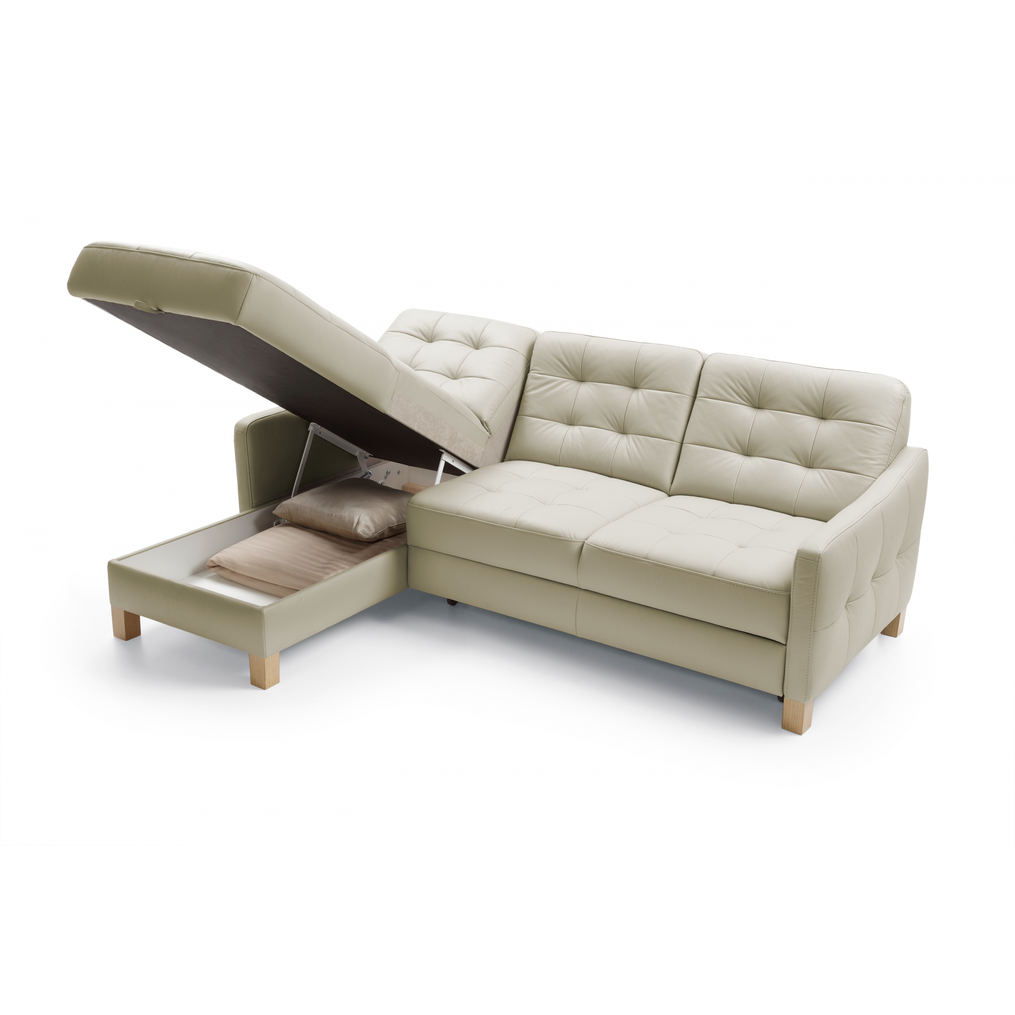 Kožená rohová sedačka G100, funkcia spania a úložný priestor roh vľavo
