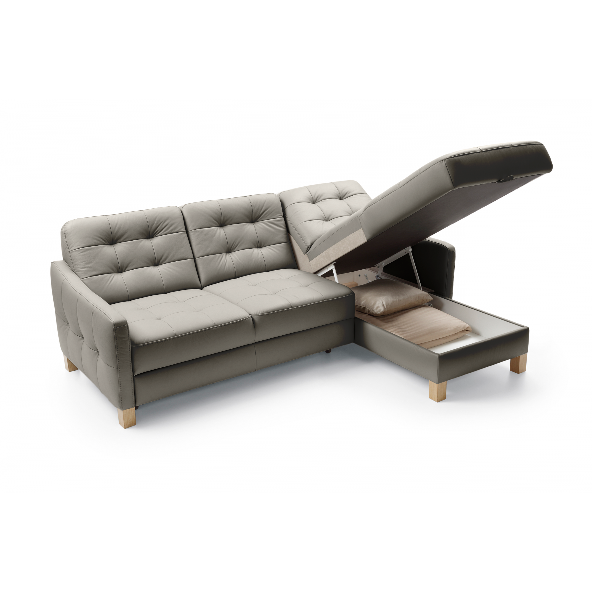 Kožená rohová sedačka G170, funkcia spania a úložný priestor roh vpravo