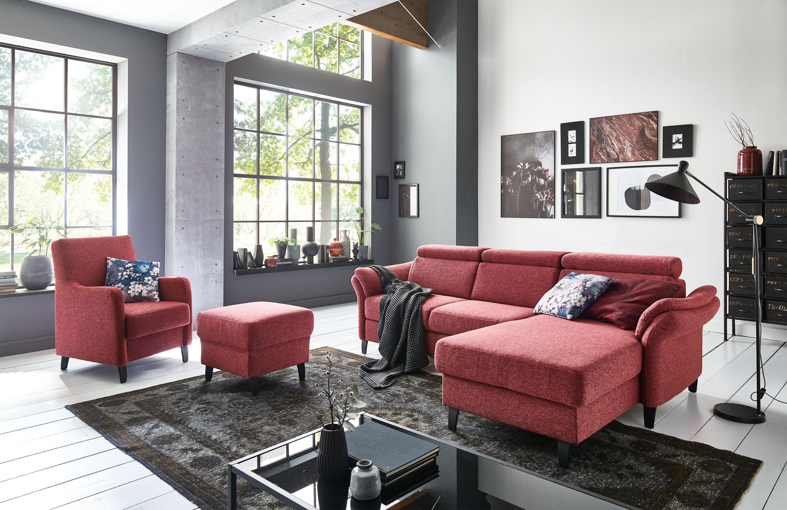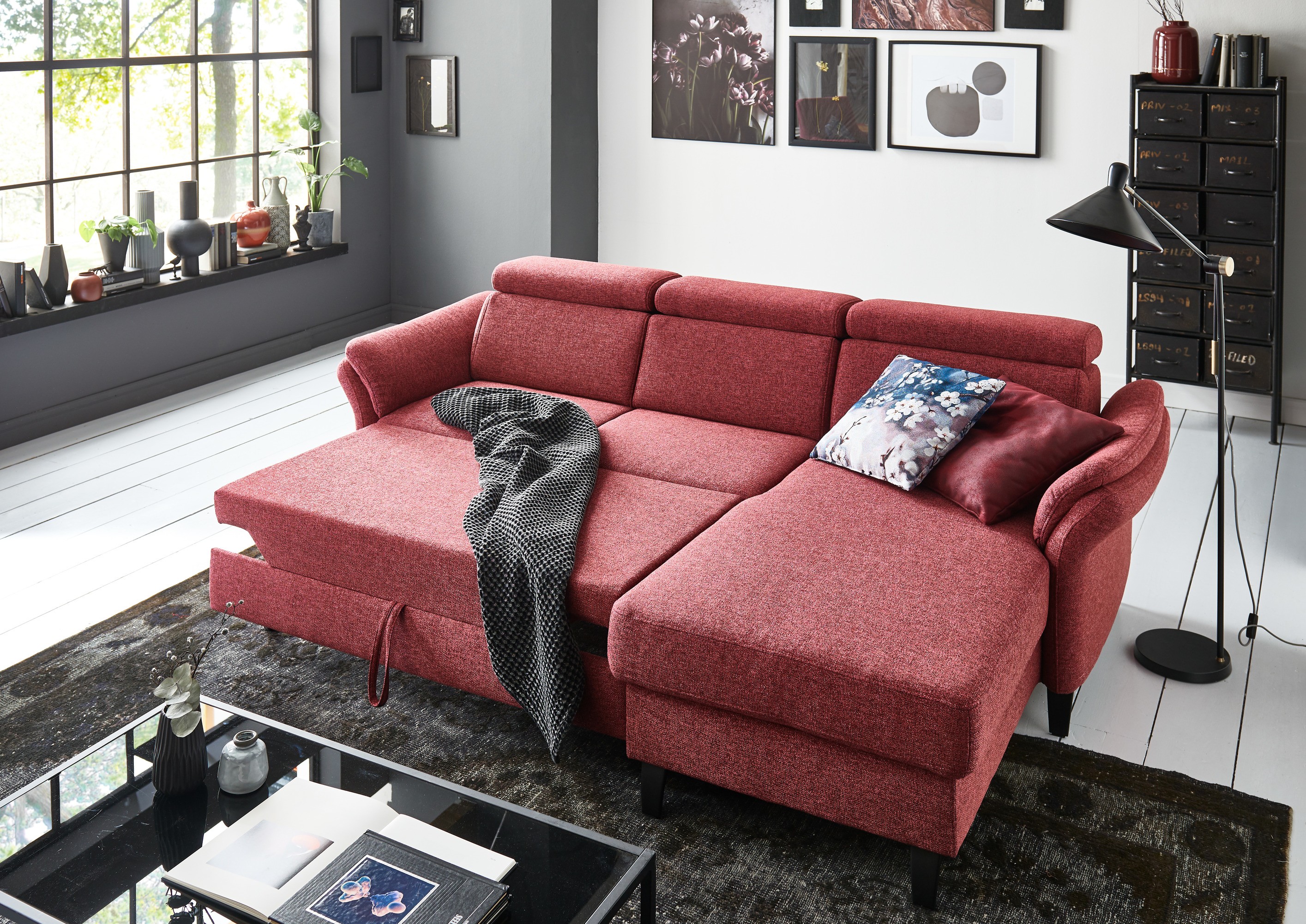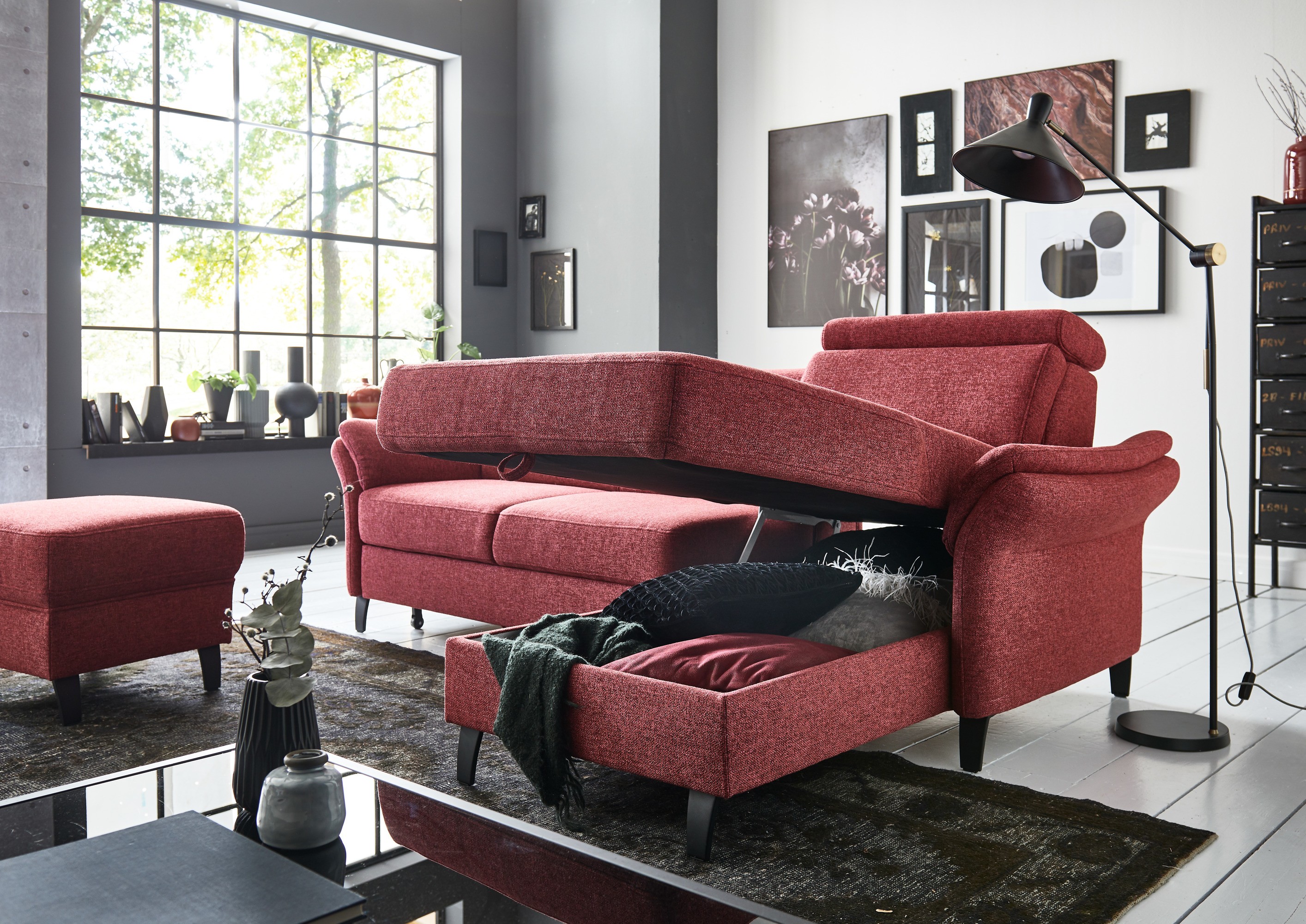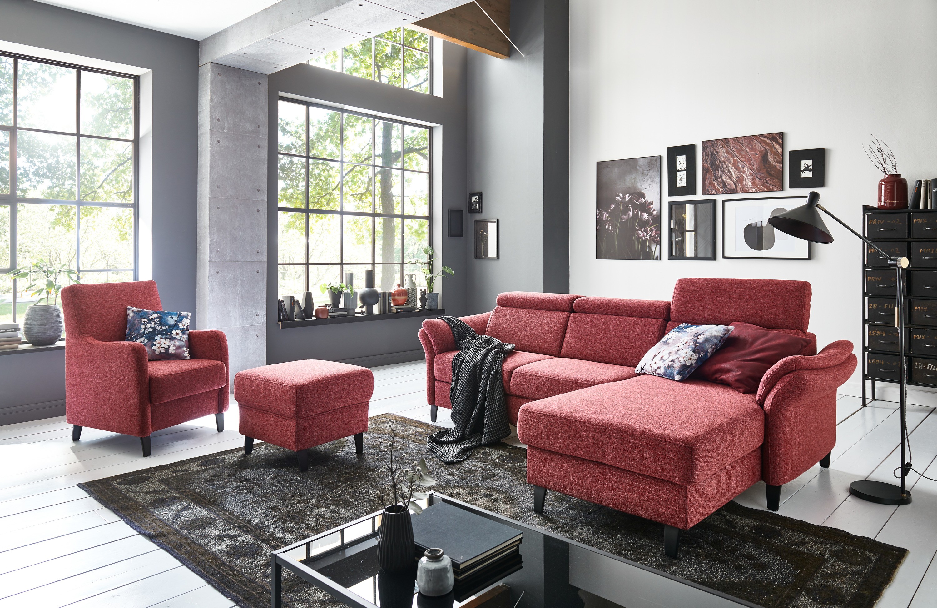 Rohová pohovka na nožičkách v červenej farbe - dokonalá kombinácia štýlu, pohodlia a funkčnosti, ktorá sa stane nielen ústredným bodom vašej obývačky, ale aj obľúbeným miestom na oddych a zábavu.