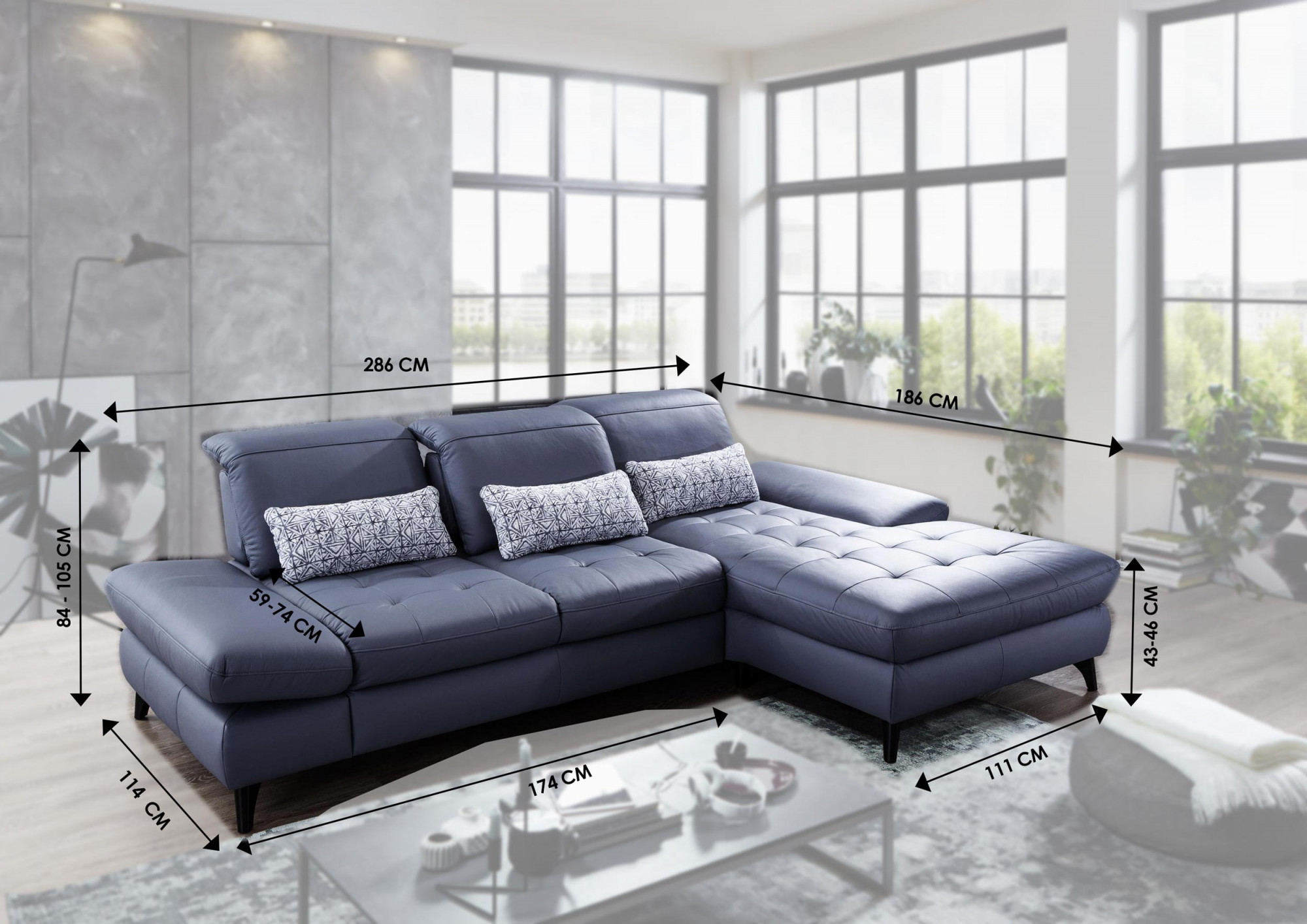 Rohová verzia sedačky je k dispozícii v šírkach 286 cm, 316 cm a 346 cm.