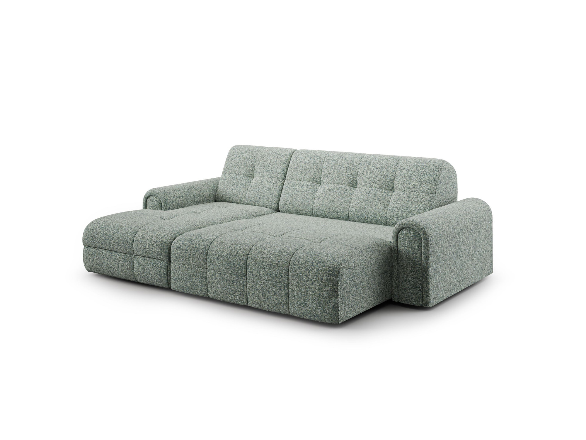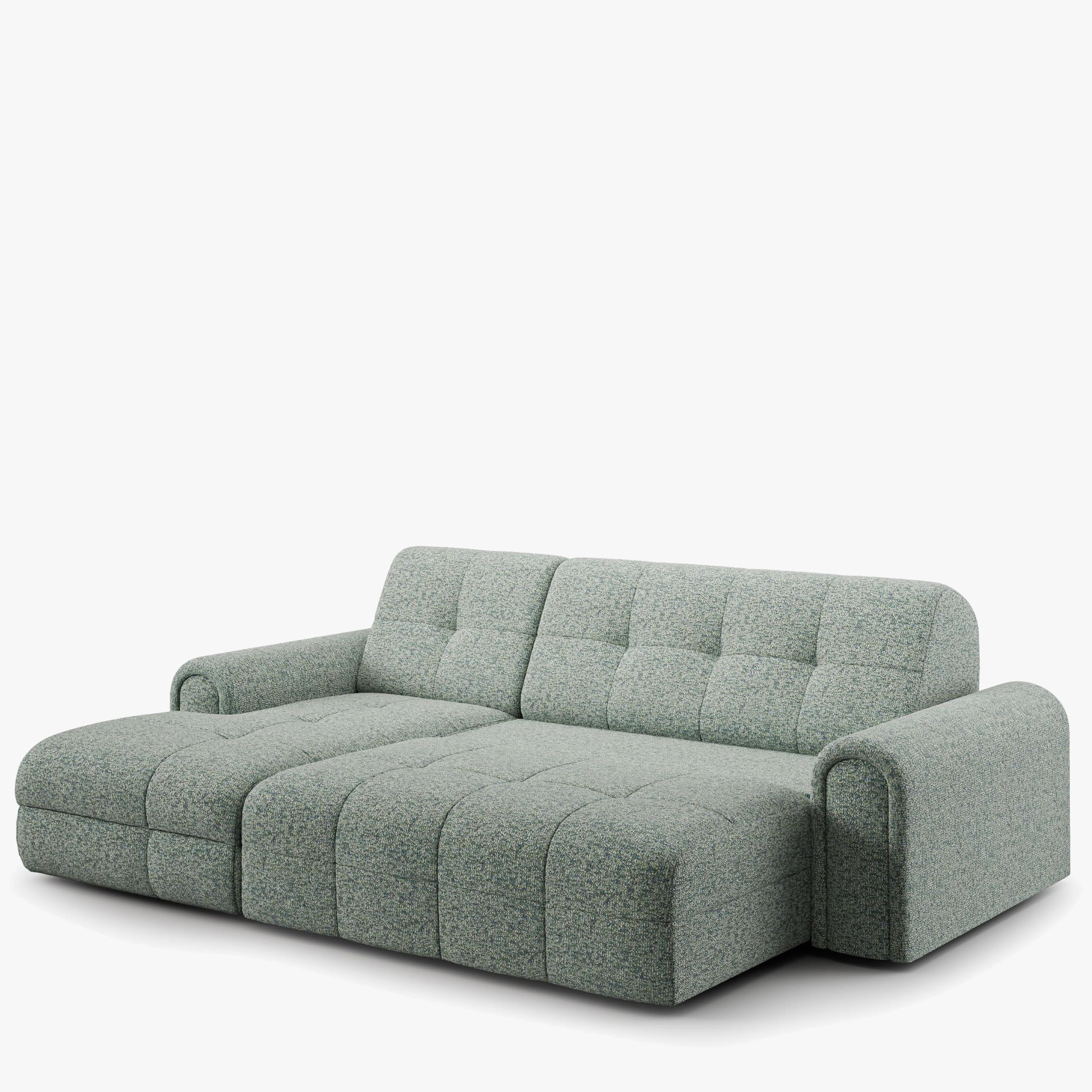 Rohová sedačka s úložným priestorom a funkciou spania je ideálnym riešením pre tých, ktorí hľadajú kombináciu pohodlia, štýlu a praktických funkcií. Tento kus nábytku v sebe spája moderný dizajn s maximálnym komfortom, vďaka čomu sa skvele hodí do rôznych typov interiérov. Sedačka je čalúnená mäkkou a na dotyk príjemnou látkou, ktorá nielen skvele vyzerá, ale tiež zaisťuje pohodlie pri každodennom používaní. Jej elegantný prešívaný dizajn dodáva obývacej izbe eleganciu, zatiaľ čo kvalitné materiály a robustná konštrukcia zaručujú dlhú životnosť a odolnosť.