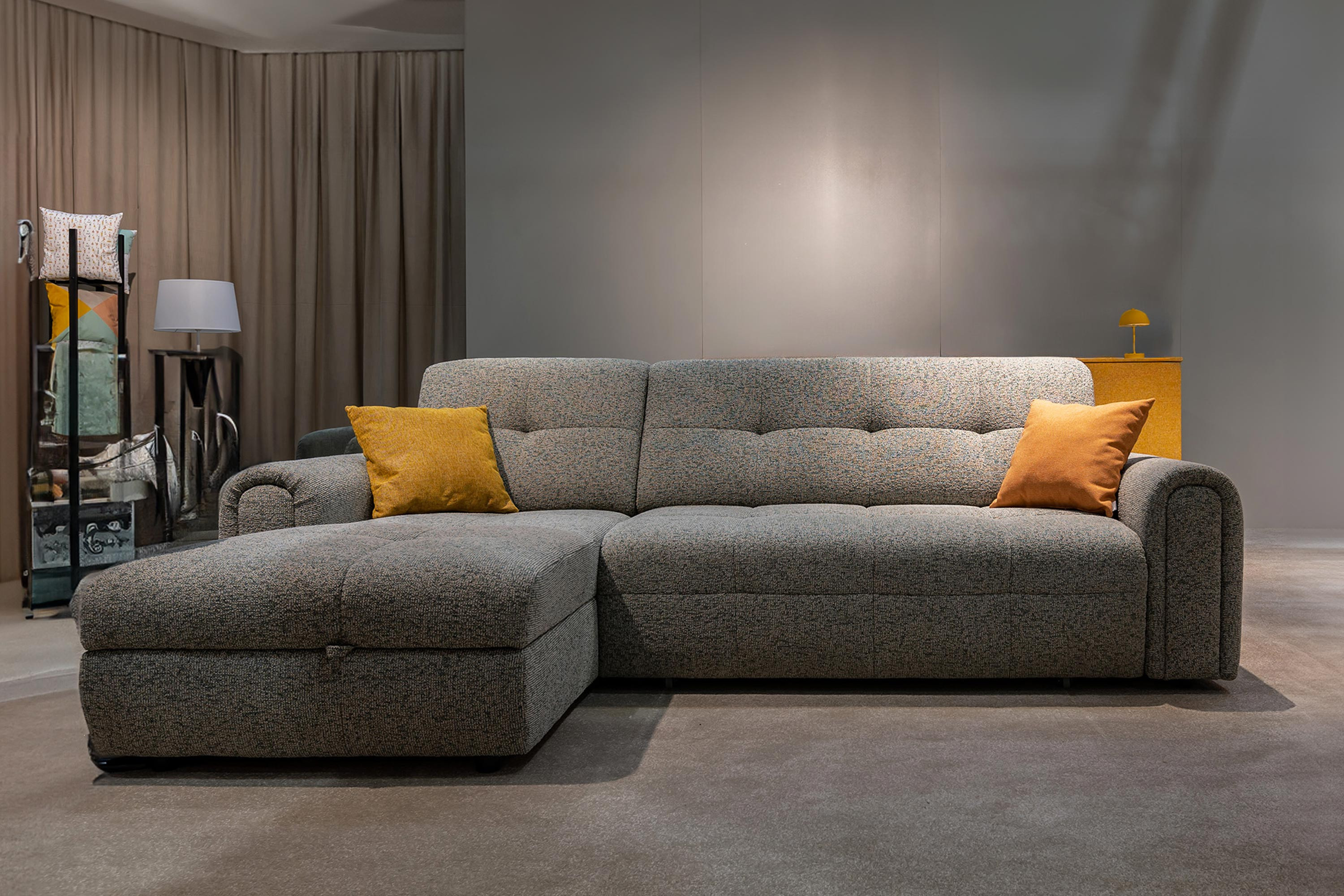 Rohová sedačka s úložným priestorom a funkciou spania, ľavá