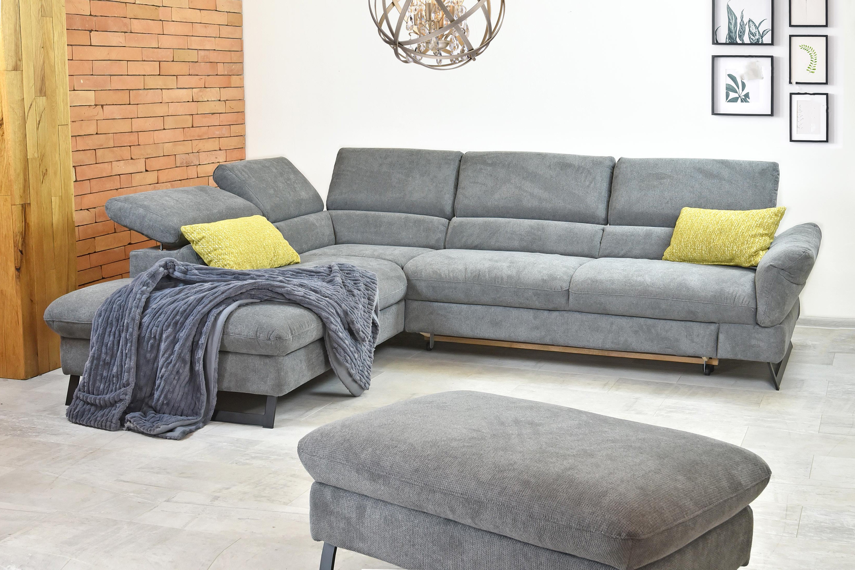 Rohová sedačka s rozkladom, látková Haiti roh vľavo šedá