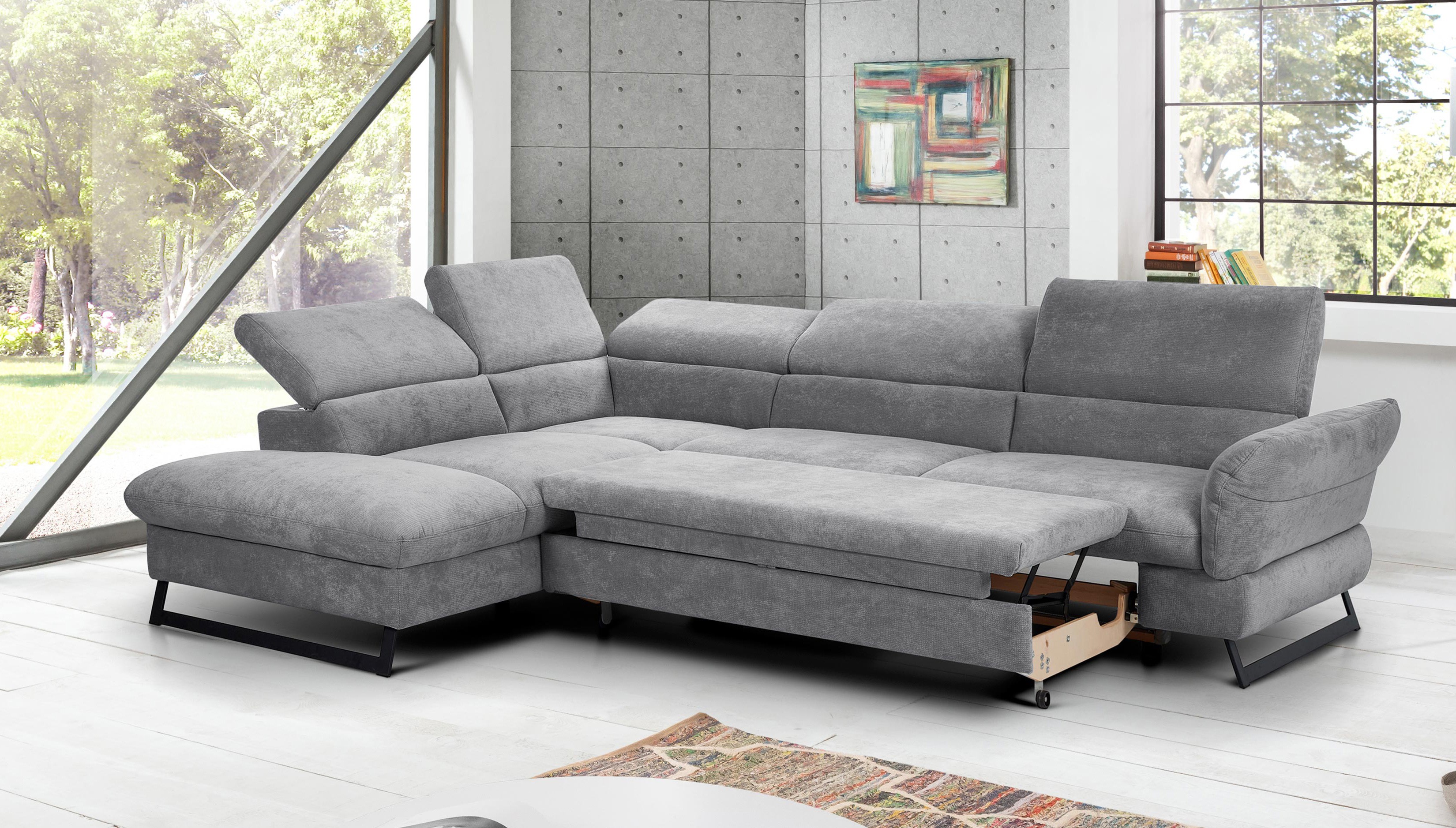 Rohová sedačka s rozkladom, sivá na nožičkách - haiti