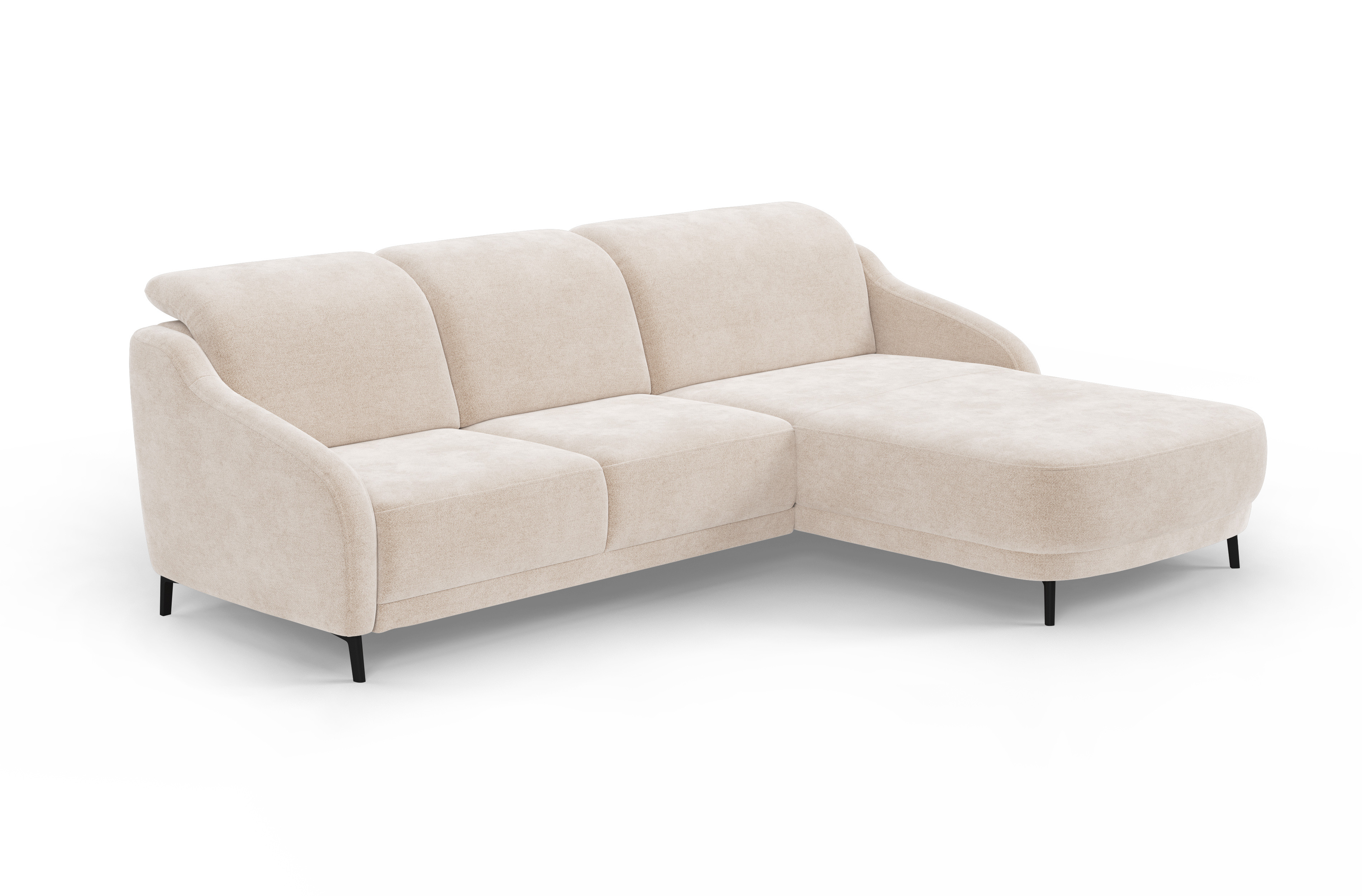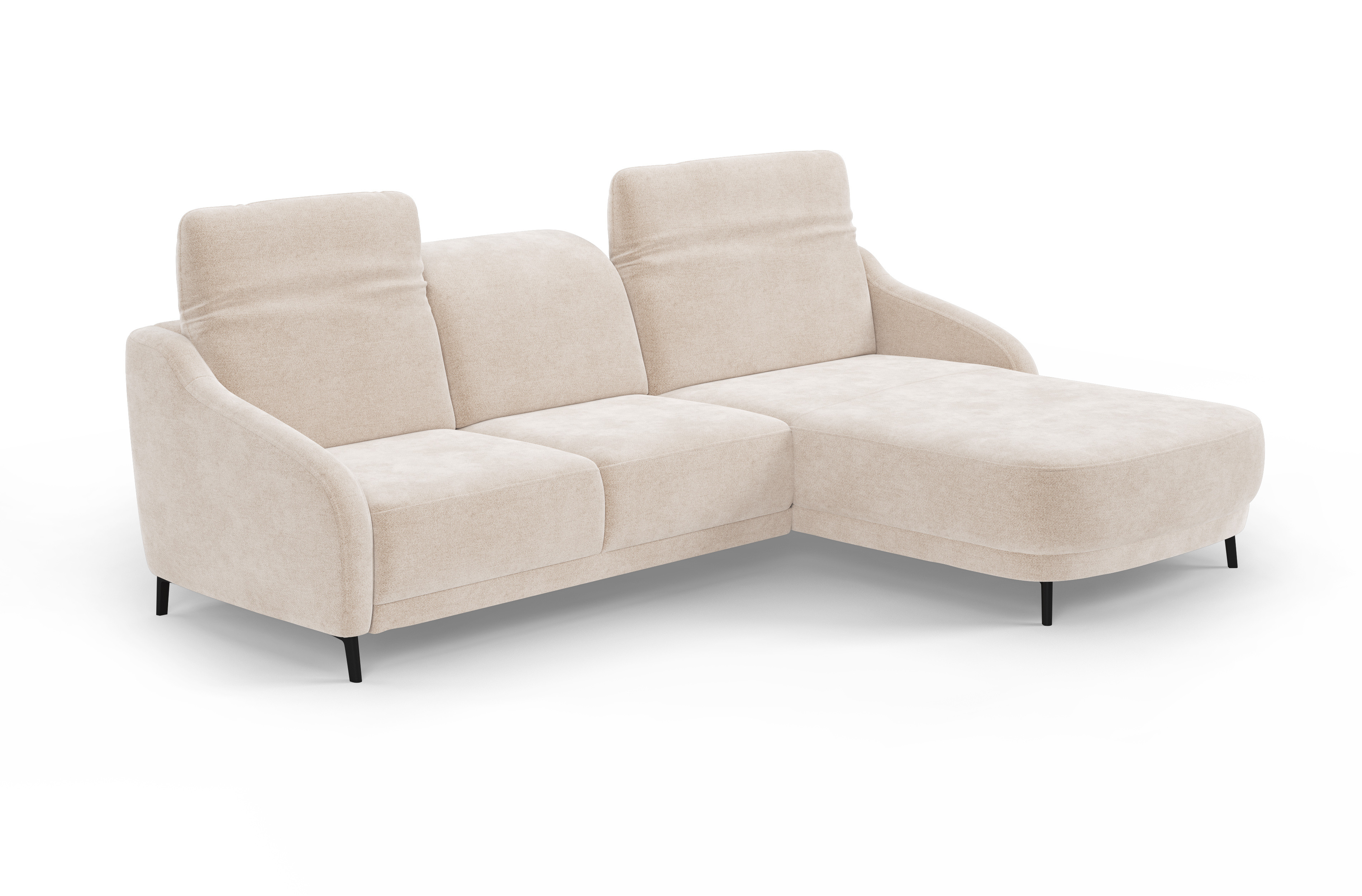 Sedacia časť kombinuje PUR pena s vlnovým odpružením, ktoré poskytuje optimálne pohodlie pri každodennom sedení aj relaxácii. Záložná opierka obsahuje gumičkové pásy, PUR pena a vatová výplň, čo zaisťuje maximálnu oporu chrbta a celkové pohodlie. Poťahový materiál je dostupný v rôznych variantoch a farbách, čo umožňuje zladiť s interiérom. Sedacia súprava je vybavená kovovými nohami v čiernej matnej farbe, ktoré sú k dispozícii v dvoch výškach – 12 cm a 15 cm, čo prispieva k modernému vzhľadu a uľahčuje údržbu podlahy.