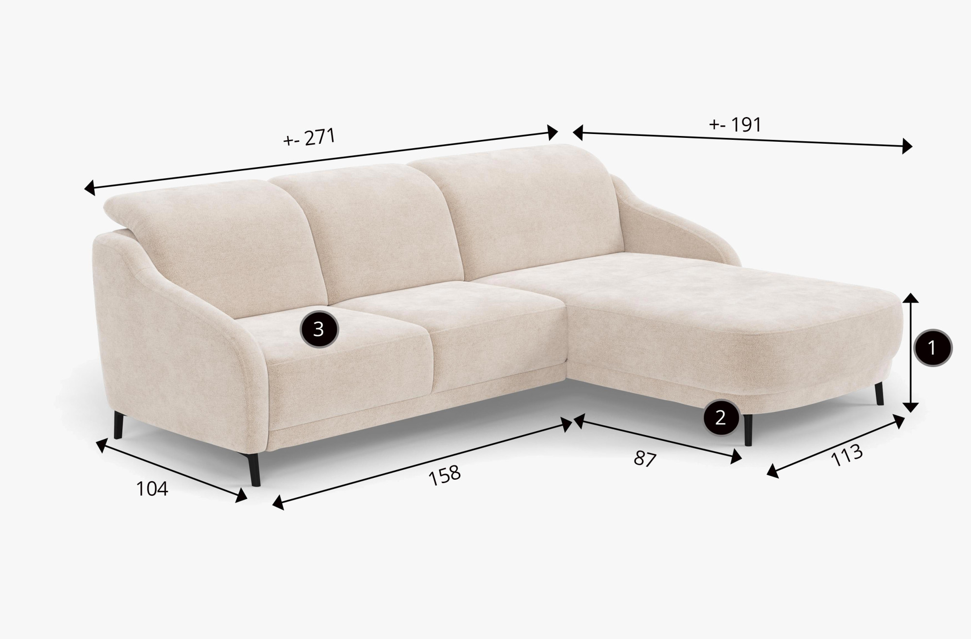3. Hĺbka sedenia je +- 59 cm.