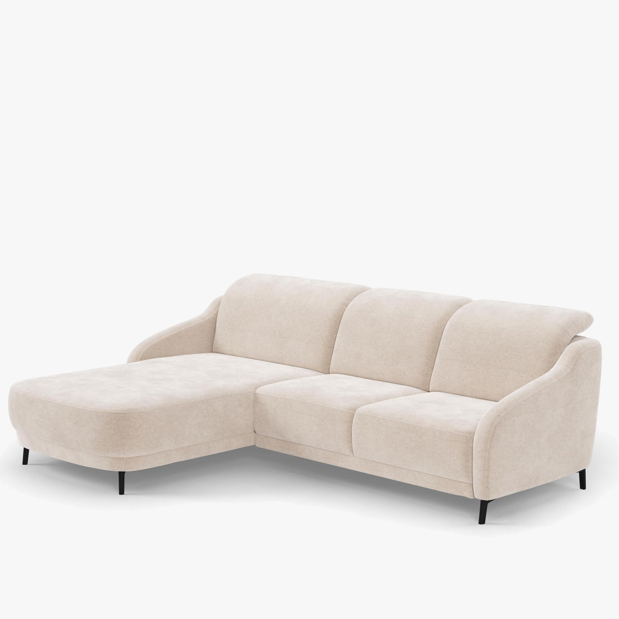 Sedacia časť kombinuje PUR pena s vlnovým odpružením, ktoré poskytuje optimálne pohodlie pri každodennom sedení aj relaxácii. Záložná opierka obsahuje gumičkové pásy, PUR pena a vatová výplň, čo zaisťuje maximálnu oporu chrbta a celkové pohodlie. Poťahový materiál je dostupný v rôznych variantoch a farbách, čo umožňuje zladiť s interiérom. Sedacia súprava je vybavená kovovými nohami v čiernej matnej farbe, ktoré sú k dispozícii v dvoch výškach – 12 cm a 15 cm, čo prispieva k modernému vzhľadu a uľahčuje údržbu podlahy.