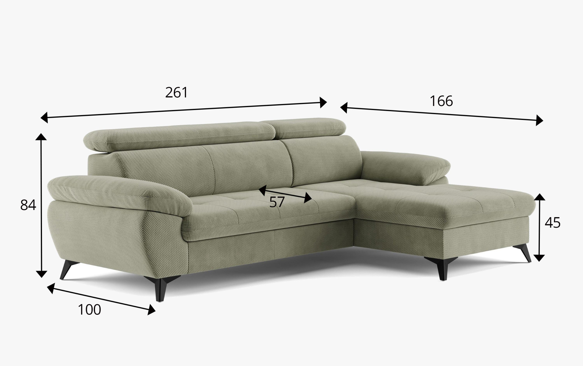 - Varianta pravý/ľavý roh – ľahké prispôsobenie dispozícii vášho obývacieho pokoja.