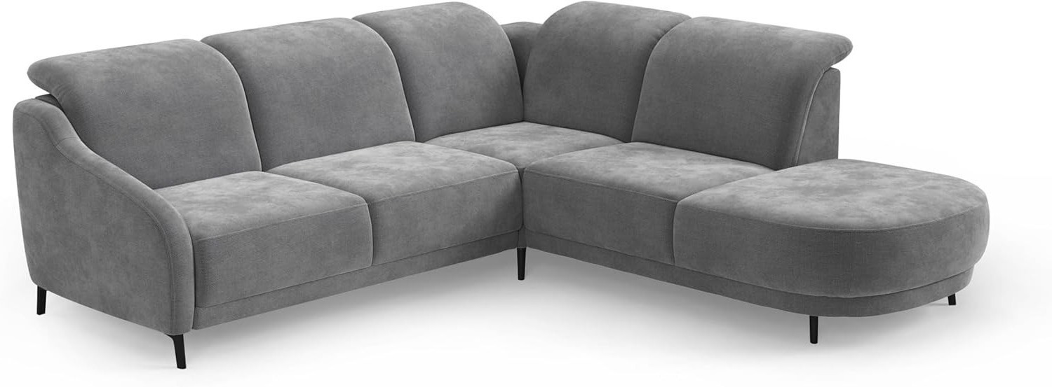 Pohovka je vybavená kvalitnou vlnitou pružinovou výplňou, ktorá zabezpečuje optimálnu oporu tela a dlhú životnosť. Výnimočný komfort sedenia dopĺňa nastaviteľná opierka hlavy, ktorá vám umožní prispôsobiť si relaxáciu presne podľa vašich potrieb. Pohodlné čalúnenie je vyrobené z vysoko kvalitné polyuretánové peny a textilného poťahu v elegantnej farbe. Tento materiál je odolný voči oderu, ľahko sa čistí a udržiava. Kvalitná konštrukcia tejto pohovky kombinuje masívne drevo, kov a polyuretán, čo zaručuje jej vysokú stabilitu a dlhú životnosť. Pohovka je rozdelená do troch častí: hlavná časť sa 2,5 miesta na sedenie, , roh s dekoratívnym vzorom a doplňkový prvok na zakončenie sedacej súpravy. . Čierne kovové nožičky s matným povrchom dodávajú pohovke moderný a nadčasový vzhľad.