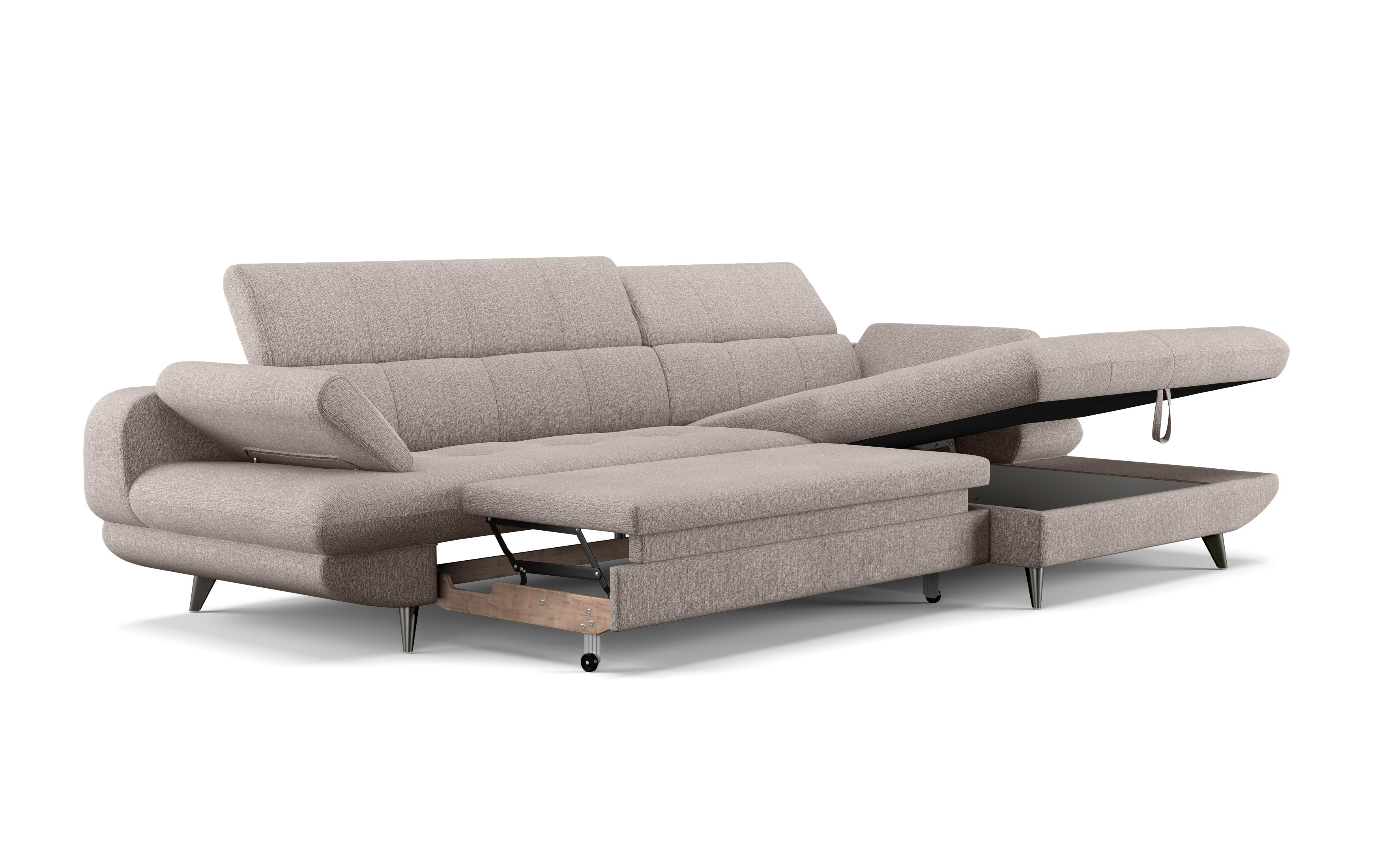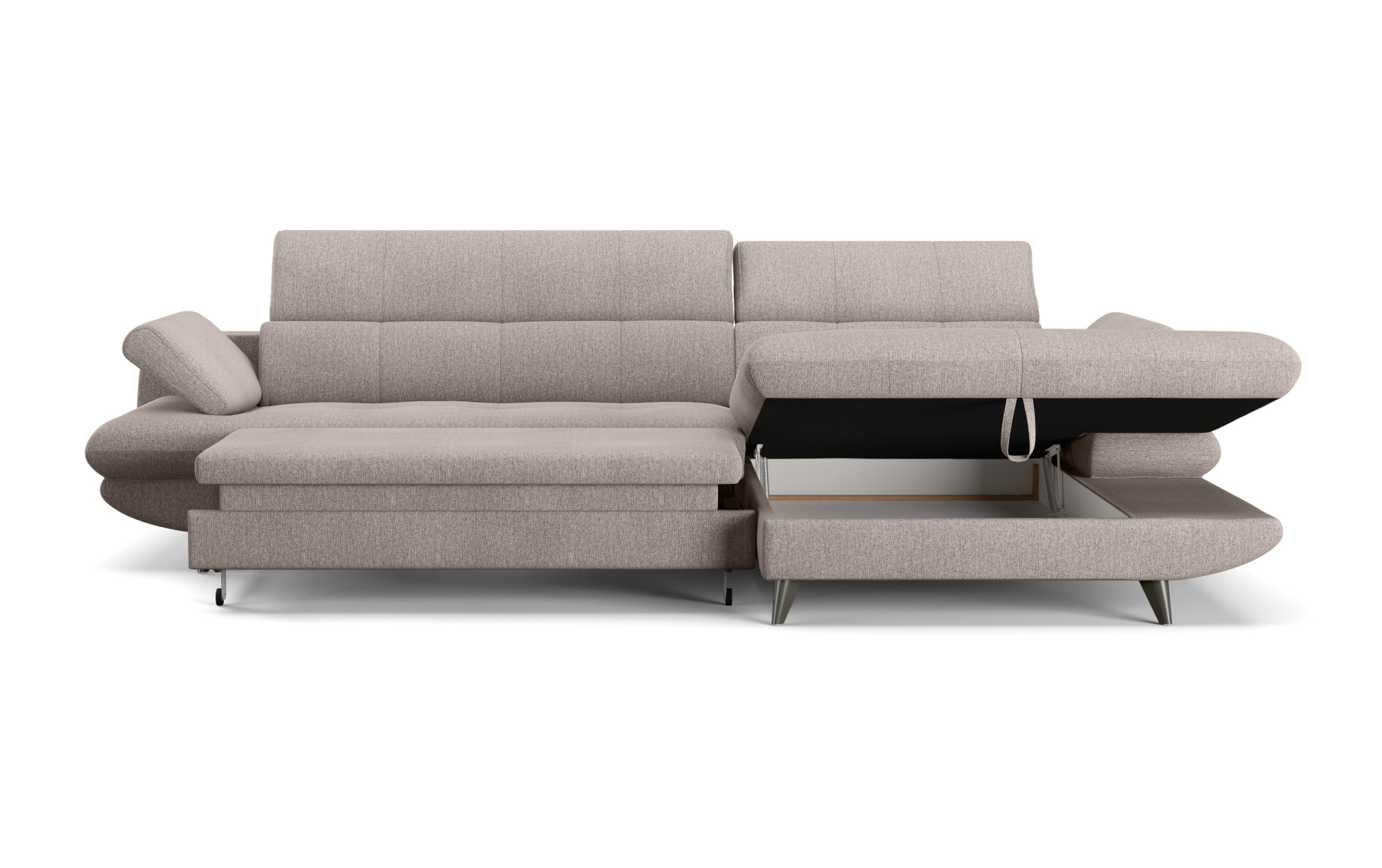 Dominantou sedačky sú nastaviteľné opierky hlavy, ktoré zabezpečujú komfortnú oporu pre krk i hlavu – či už čítate, pozeráte televíziu alebo len tak odpočívate. Významným bonusom je aj polohovateľná podrúčka, ktorá vám umožní prispôsobiť si sedenie presne podľa vašich potrieb. Vďaka použitiu vysokoelastickej peny a vinutých pružín v sedákoch je sedenie nielen pohodlné, ale aj mimoriadne odolné voči deformáciám. Čalúnenie je navyše navrhnuté tak, aby bolo príjemné na dotyk, ľahko sa udržiavalo a dlhodobo si zachovalo svoj elegantný vzhľad.