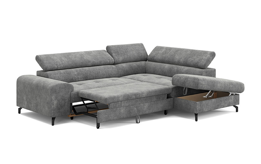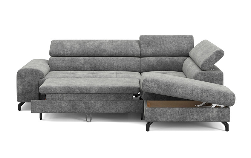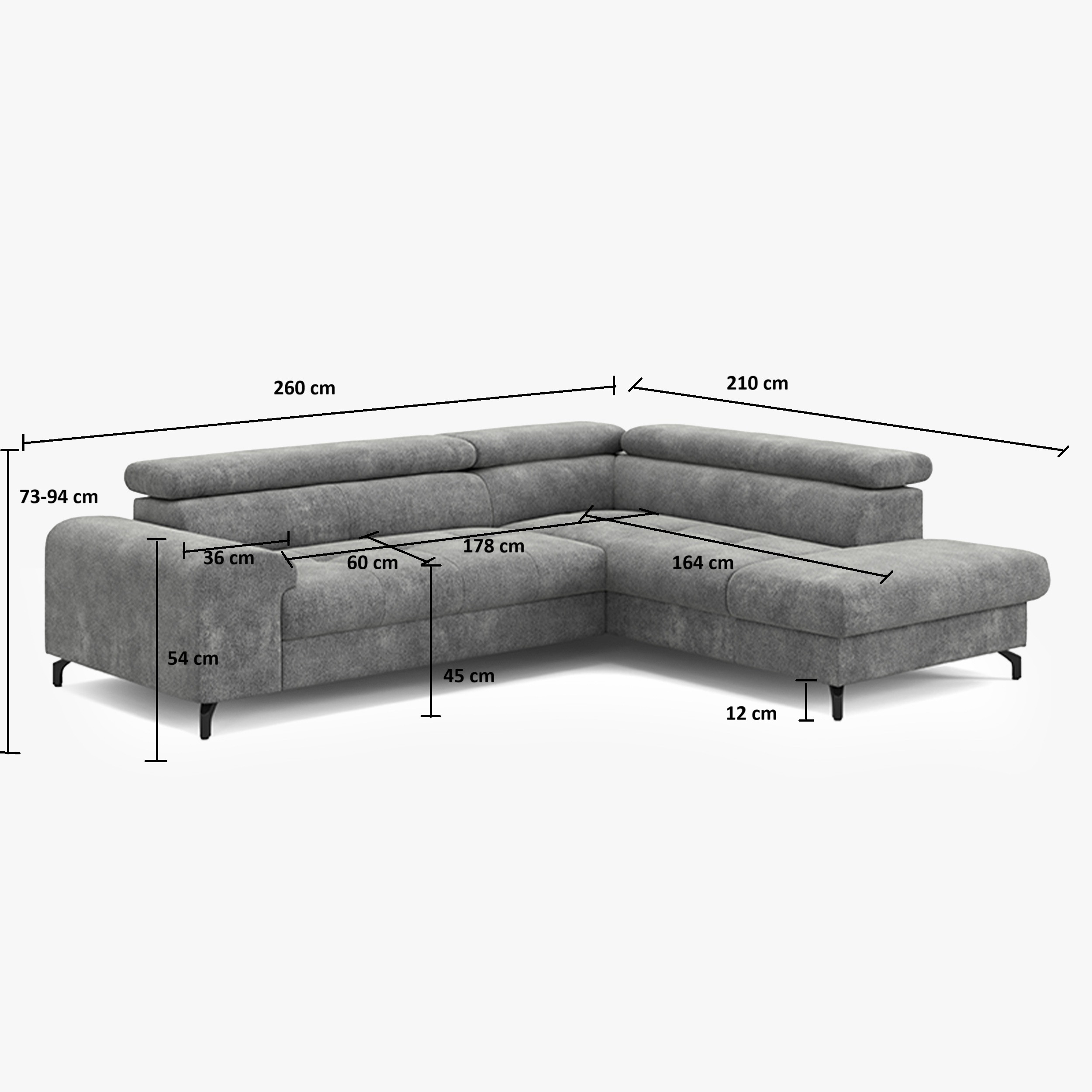 Rohová sedačka Aura přináší do vašeho domova spojení designu, pohodlí a praktičnosti, které se jen tak nevidí. Na první pohled zaujme moderním vzhledem s elegantními kovovými nohami, zatímco v praxi nadchne svou funkčností – snadno ji rozložíte na pohodlné lůžko a využijete i prostorný úložný box. Vysoce kvalitní PUR pěna a vlnité odpružení zajistí dlouhodobé pohodlí a stabilitu. Díky nastavitelným opěrkám hlavy si můžete dopřát relax přesně podle sebe. Sedačka je ideální volbou pro ty, kdo hledají luxusní vzhled, trvanlivost a maximální využití prostoru.