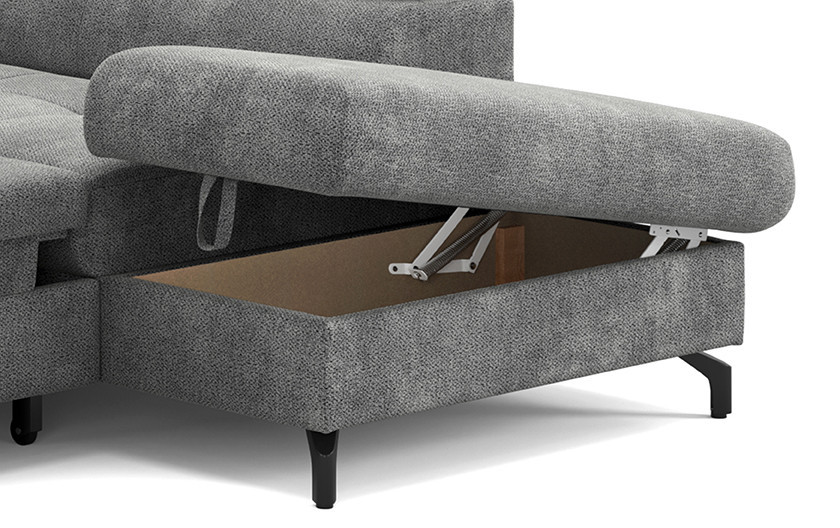 Pod sedací částí se ukrývá praktický úložný prostor, do kterého snadno schováte deky, polštáře nebo sezónní textil. Tato funkce je neocenitelná především v menších bytech, kde se počítá každý centimetr. O maximální komfort se stará vysoce kvalitní PUR pěna a vlnité odpružení, které zaručují příjemně měkké, ale stabilní sezení. Sedačka si tak zachovává svůj tvar a pohodlí i po letech každodenního používání.