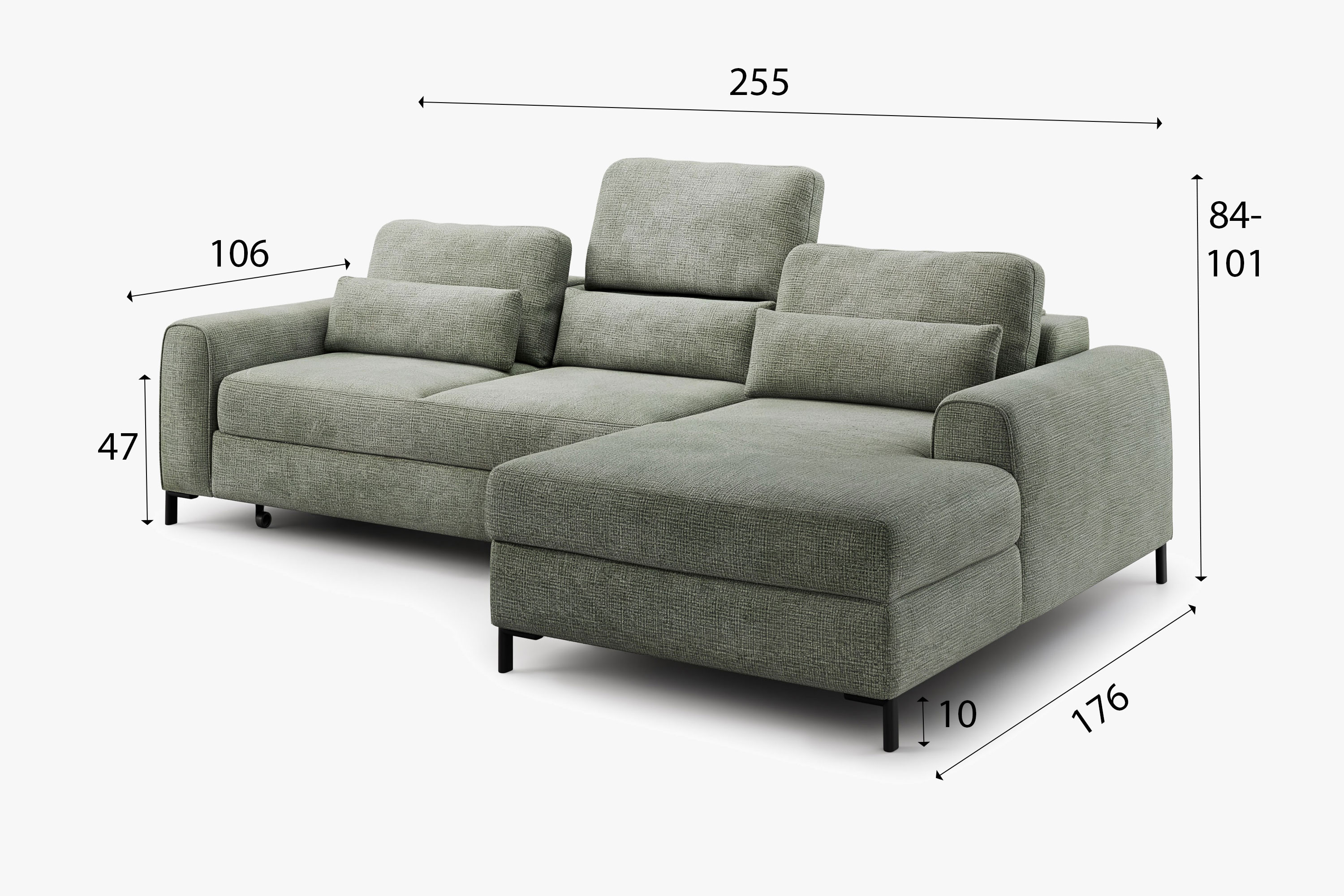 - Moderné kovové nohy – elegantné čierne nožičky dodávajú ľahkosť a súčasný vzhľad