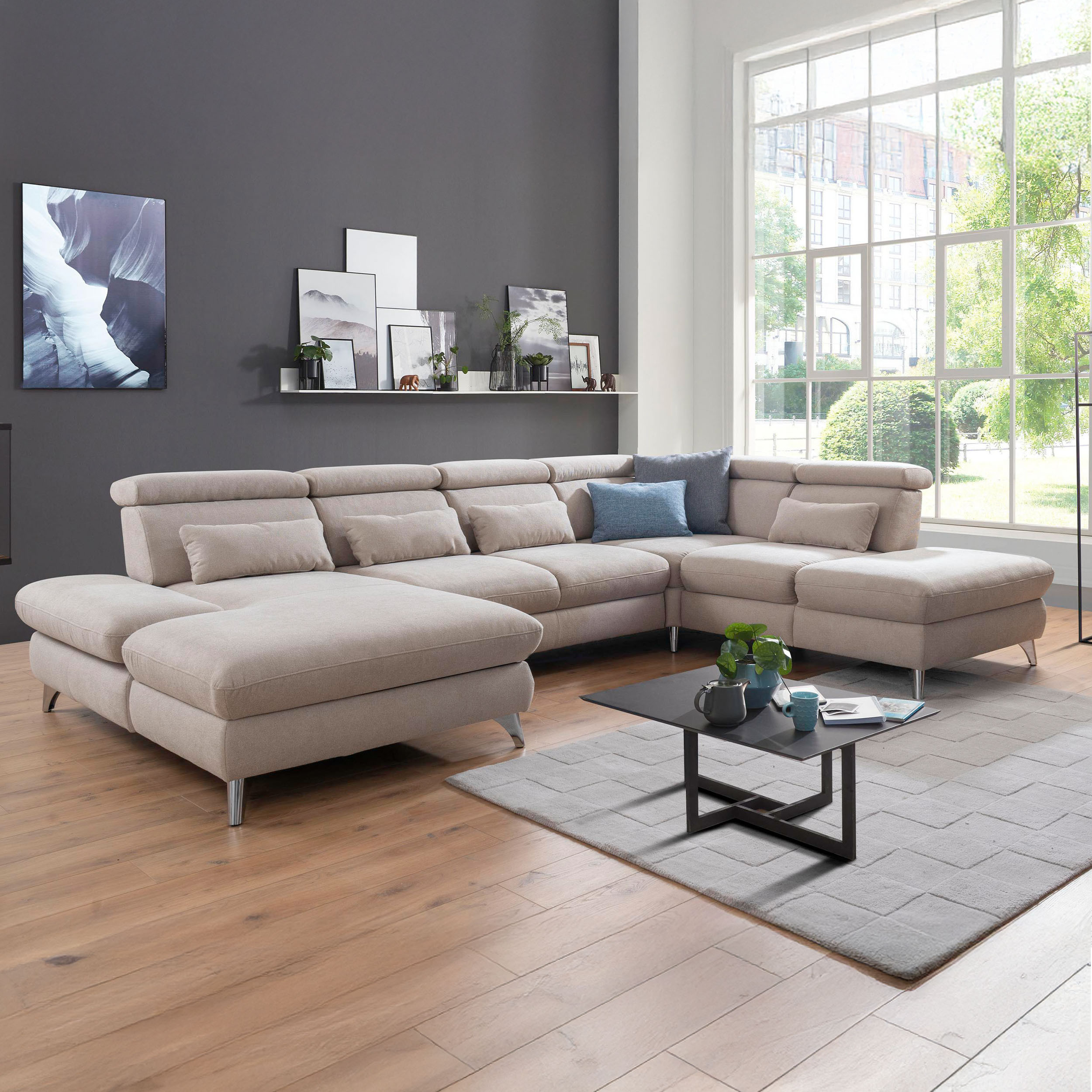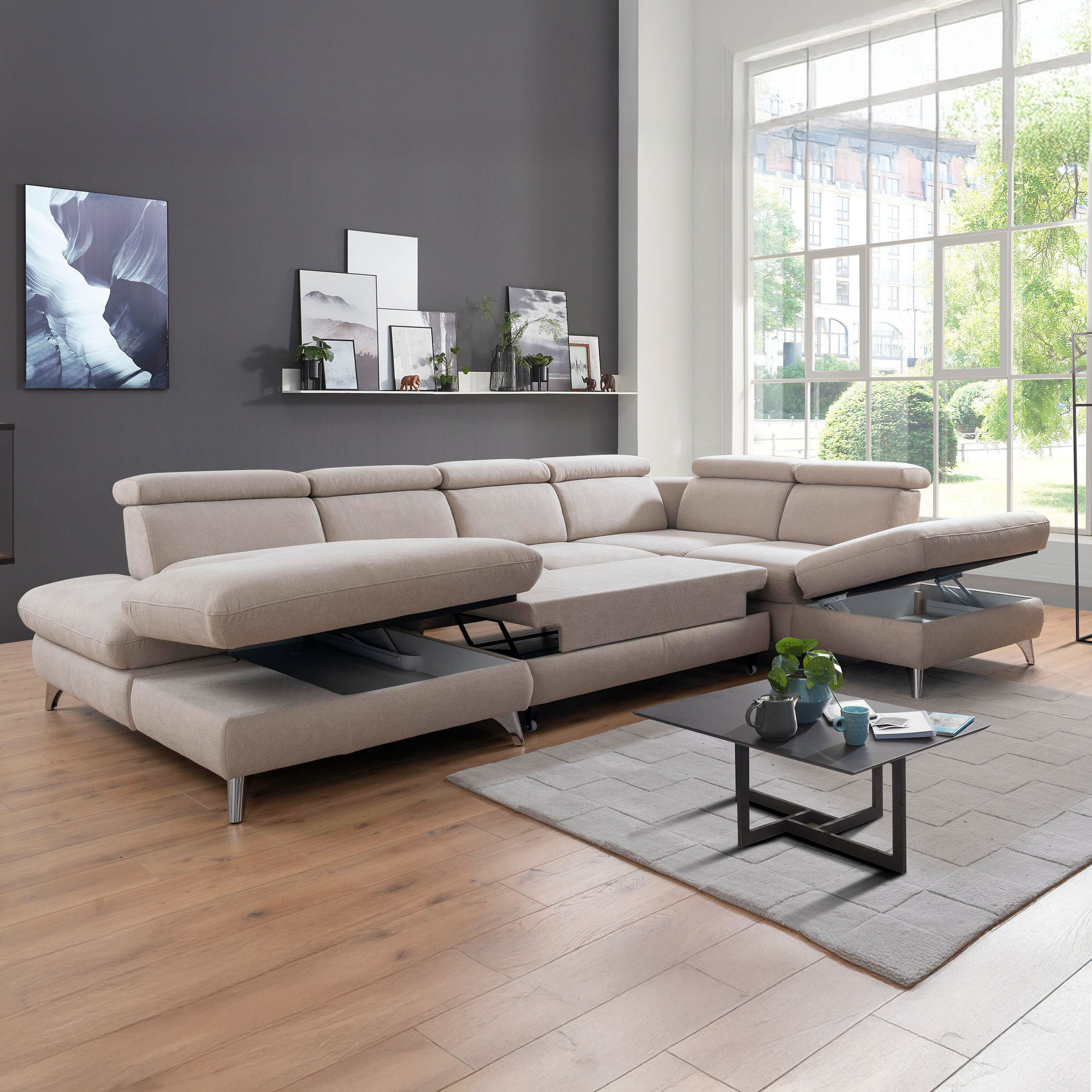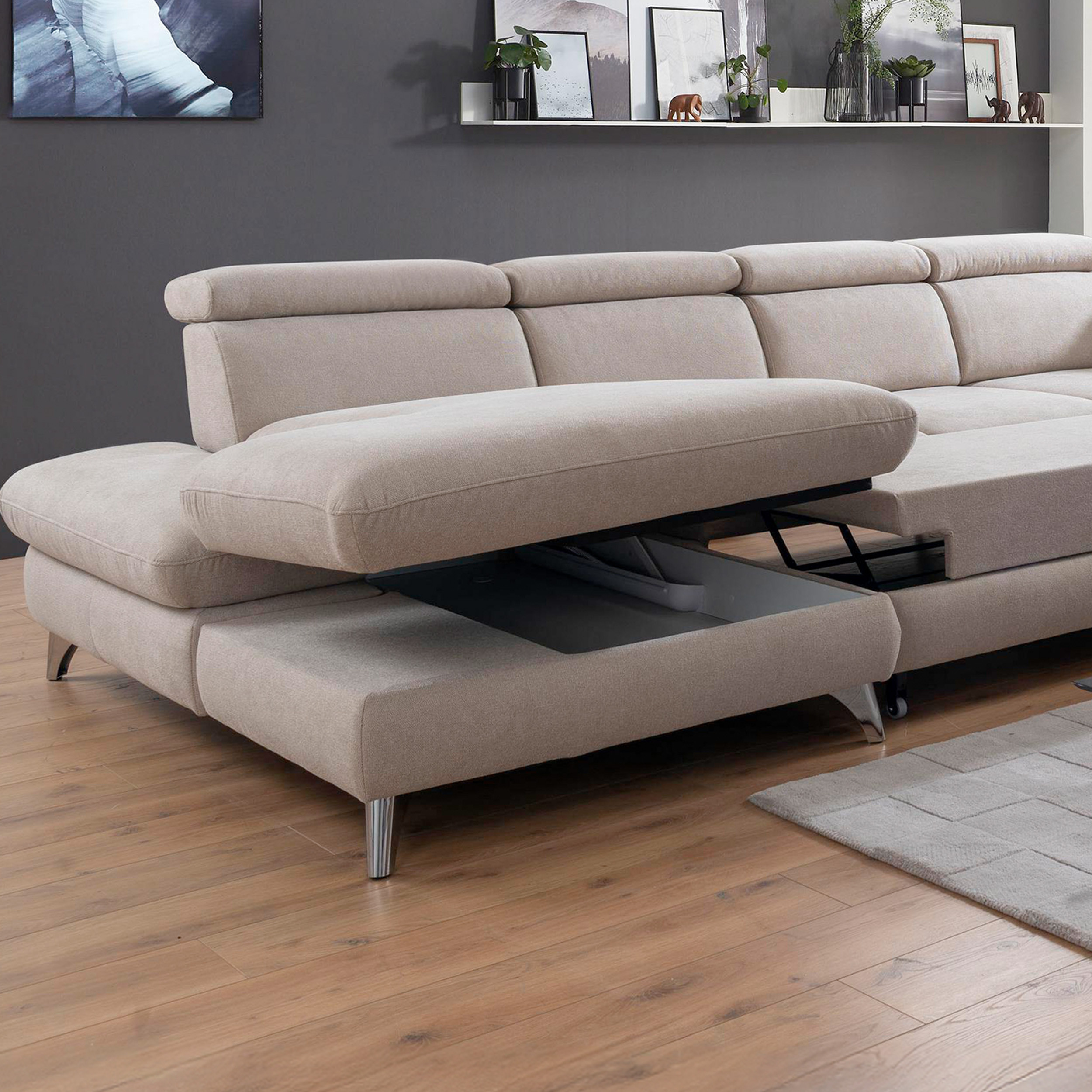 Sedací souprava ve tvaru písmene U s možností funkcí, béžová