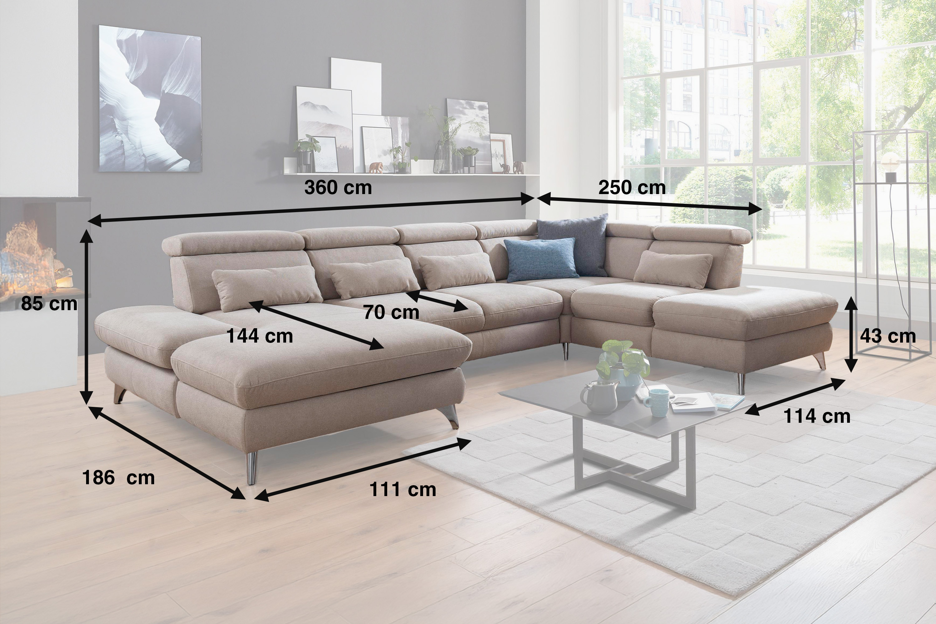 Plánovacia sedacia súprava do U s funkciami Carolina