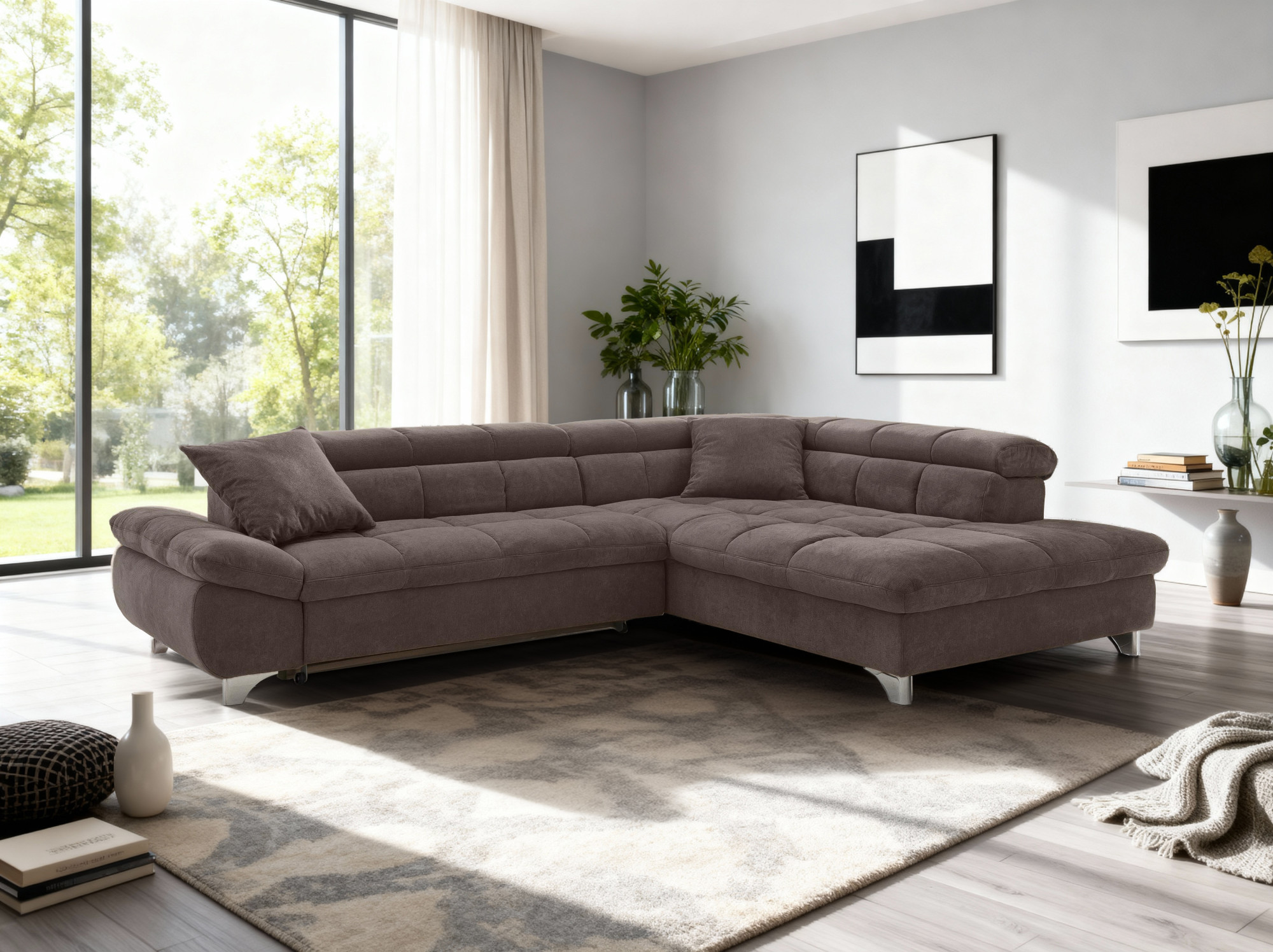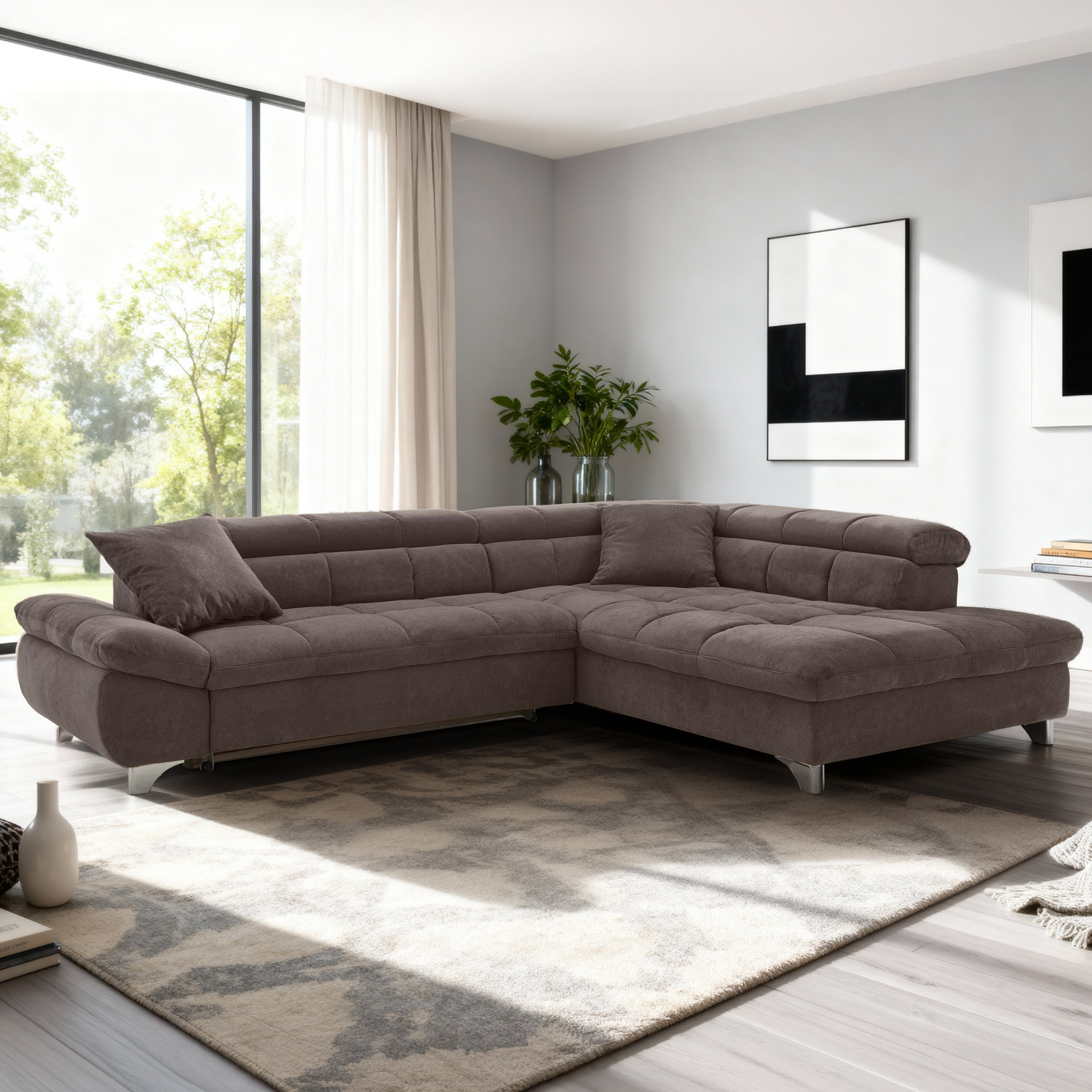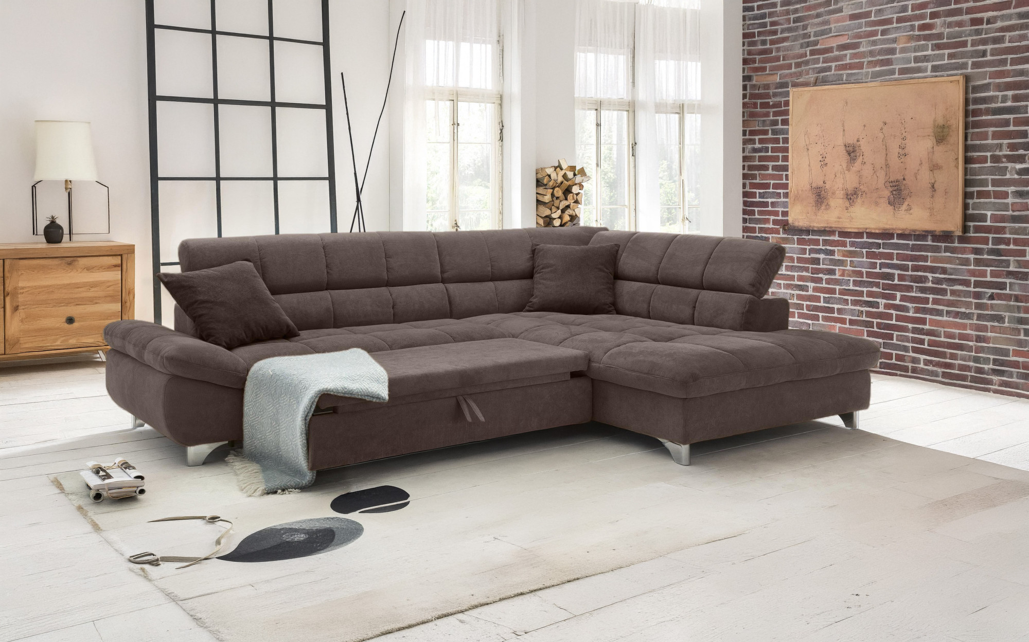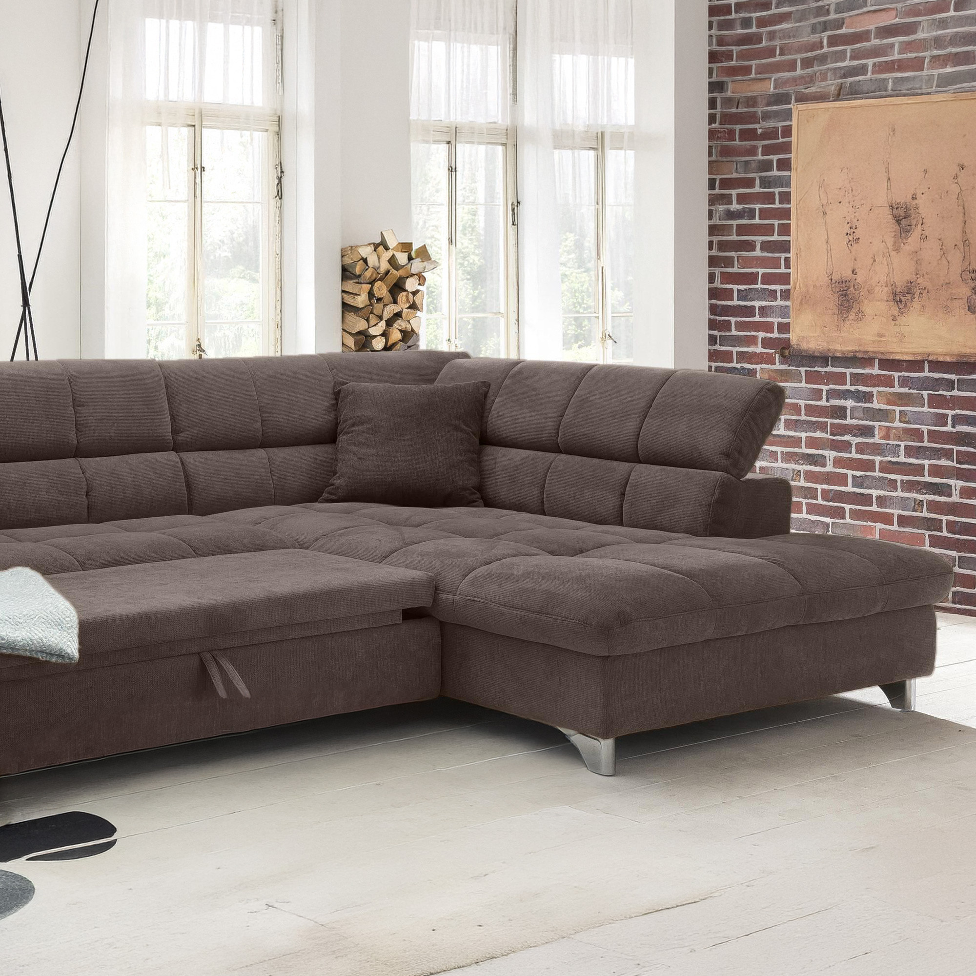 Rohová sedačka s funkciou spania farba hnedá , Roh vpravo