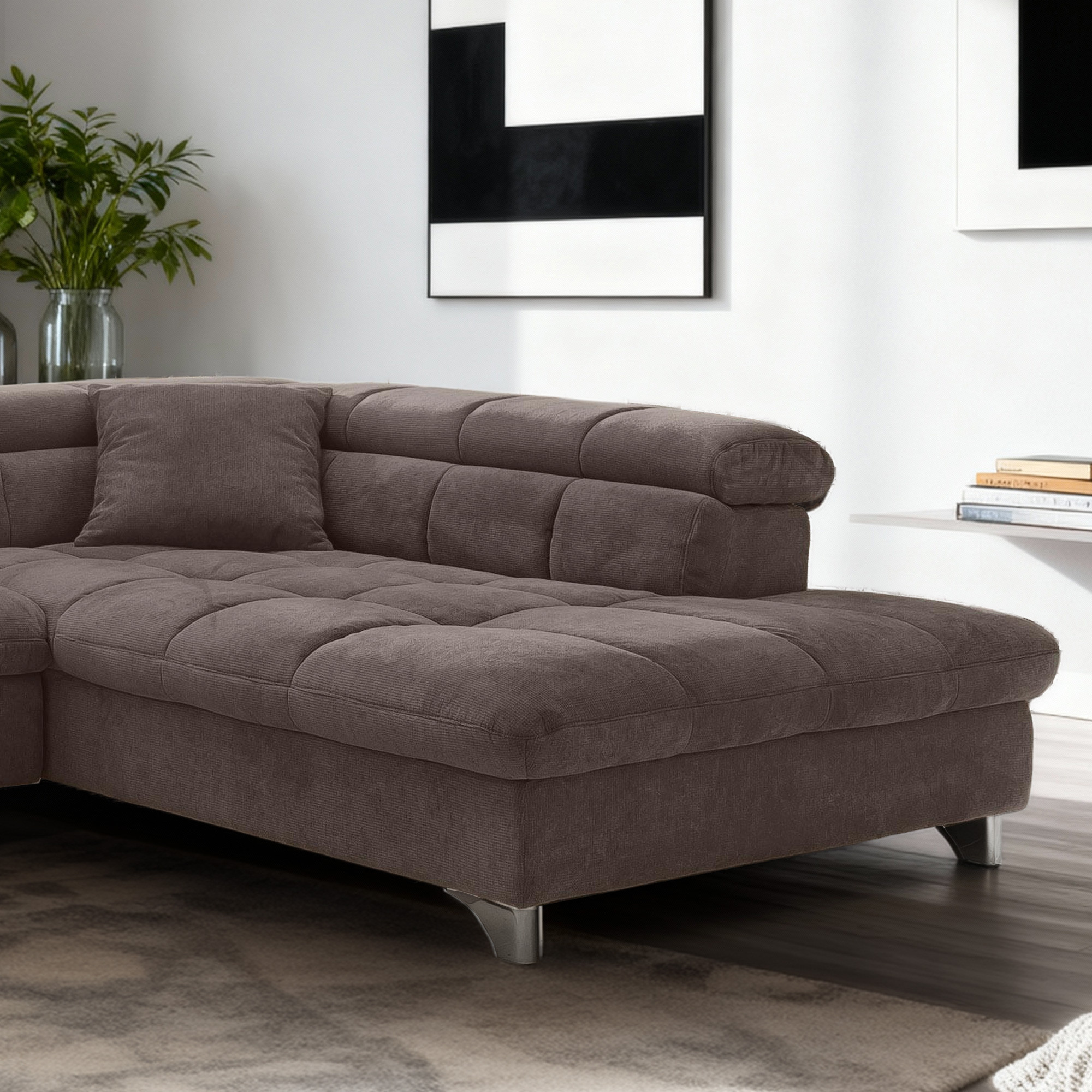 Predstavujeme vám luxusnú rohovú sedaciu súpravu, ktorá dokonale spája moderný dizajn, komfort a praktické funkcie. Táto elegantná pohovka je ideálnou voľbou pre každú obývačku, kde hľadáte kombináciu relaxácie a funkčnosti. Vďaka robustnej konštrukcii z tvrdého dreva a borovice v kombinácii s kvalitnými čalúnnickými materiálmi získavate nábytok, ktorý vydrží dlhé roky. Čalúnenie je vytvorené z molitanovej peny rôznych hustôt, ktorá poskytuje dokonalú rovnováhu medzi mäkkosťou a pevným oporným bodom pre vaše telo.