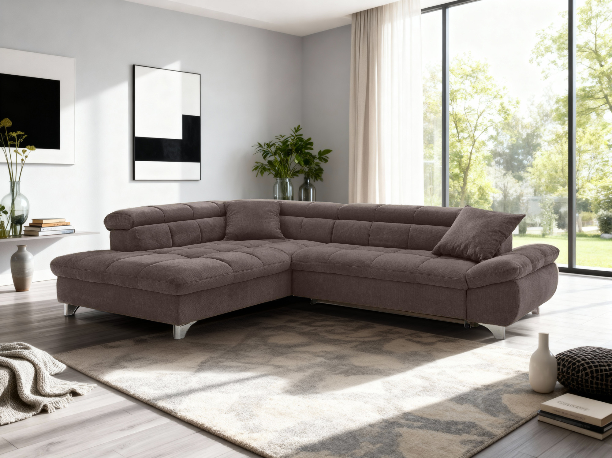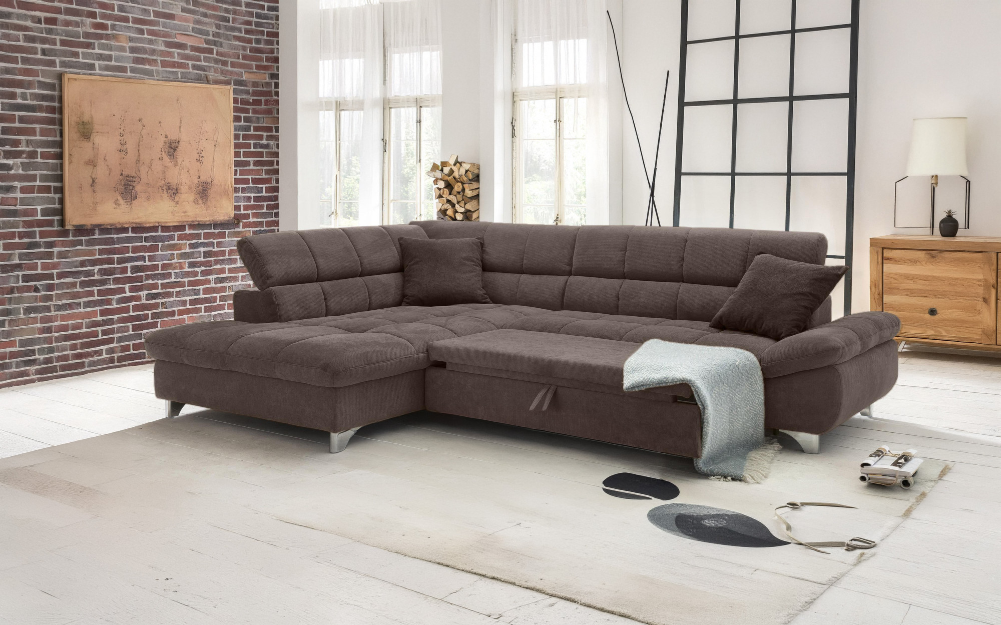 Rohová sedačka s funkciou spania farba hnedá, Roh vľavo