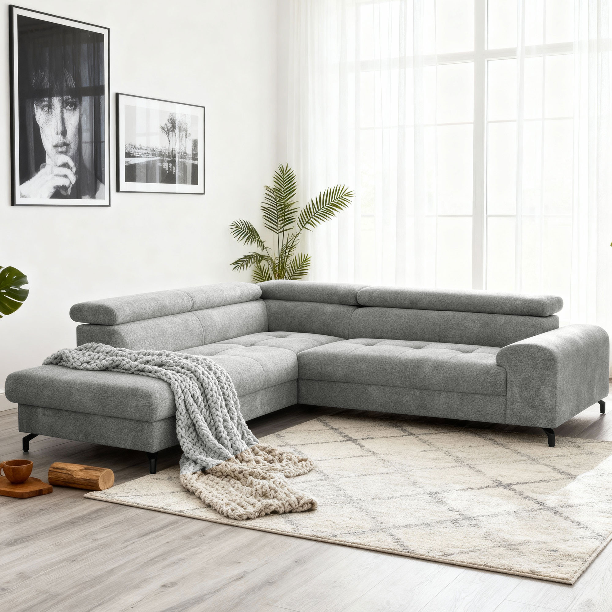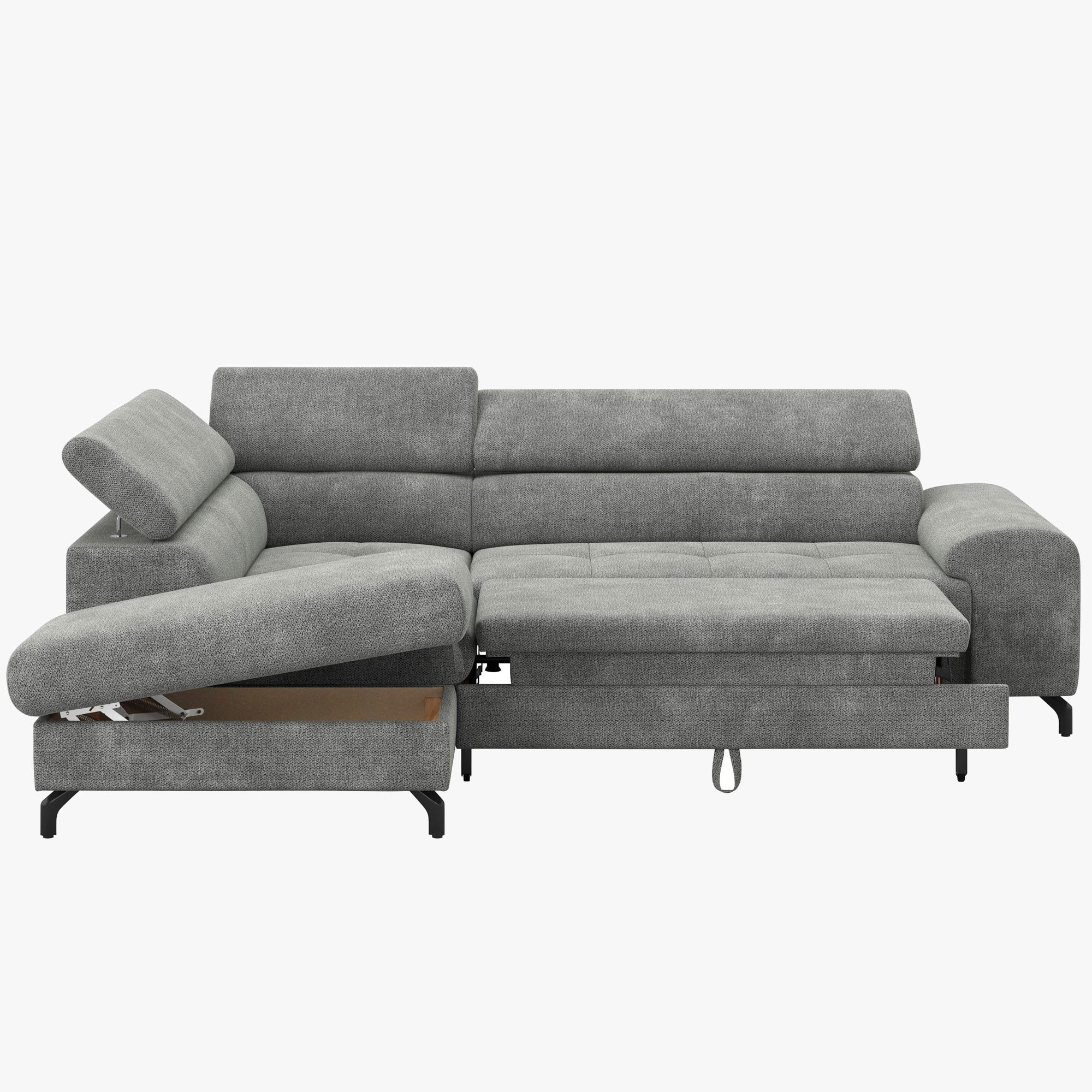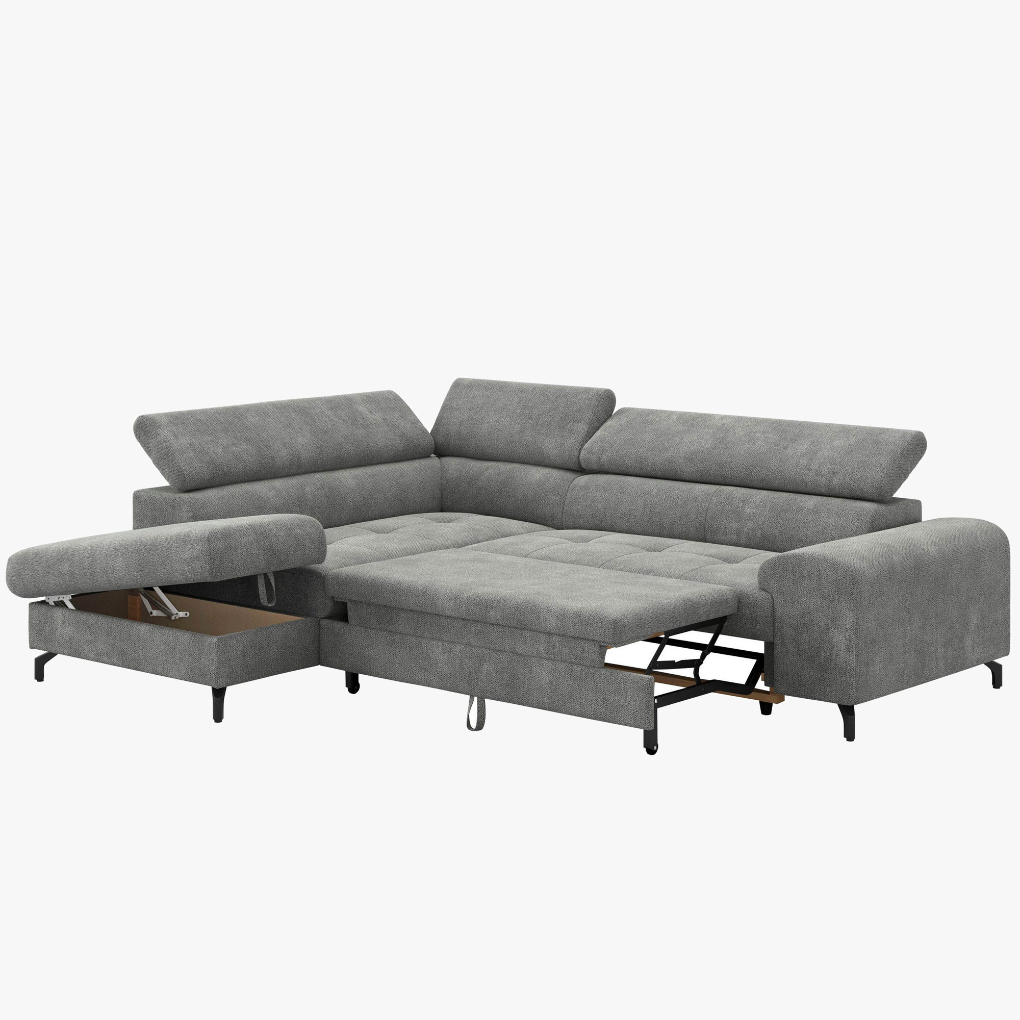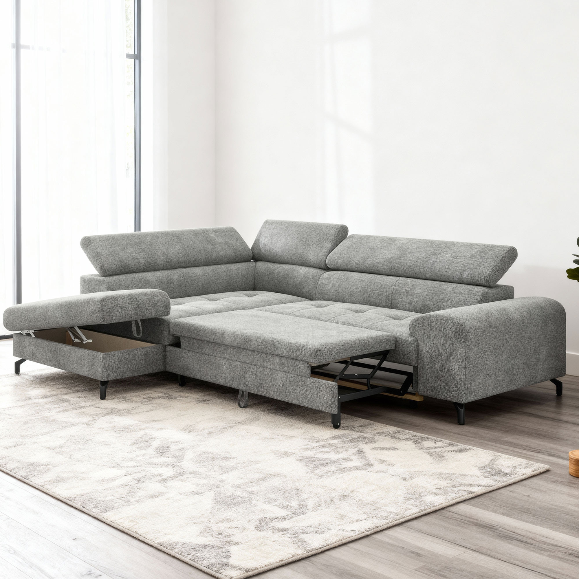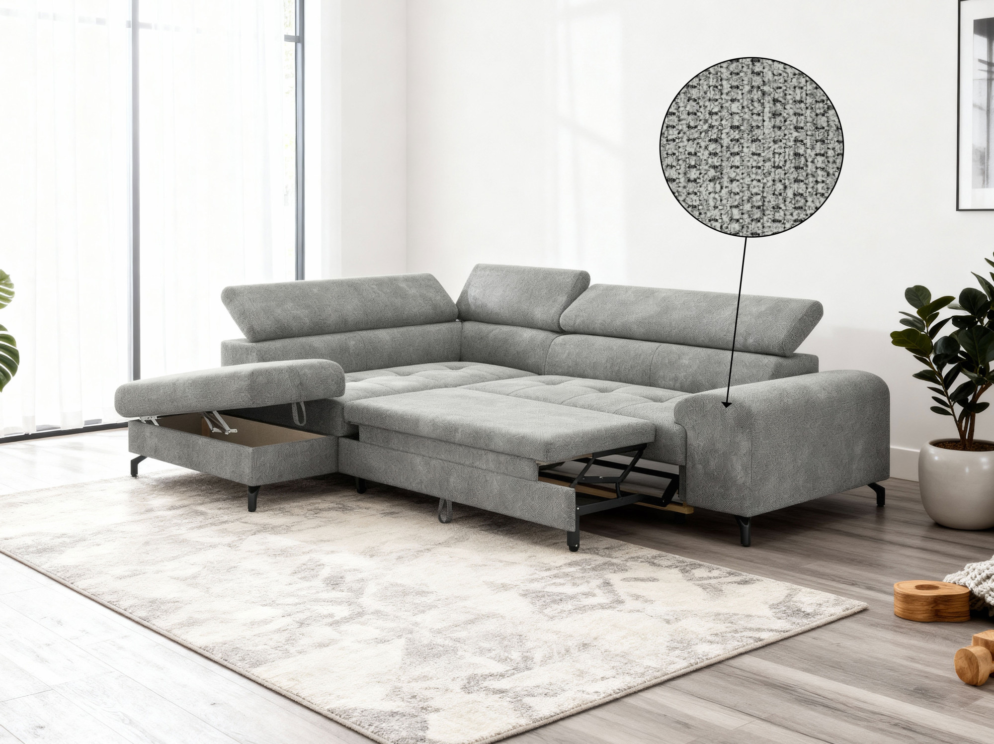 Rohová sedačka s funkciou spania a úložným priestorom - Ľavá, platinová farba