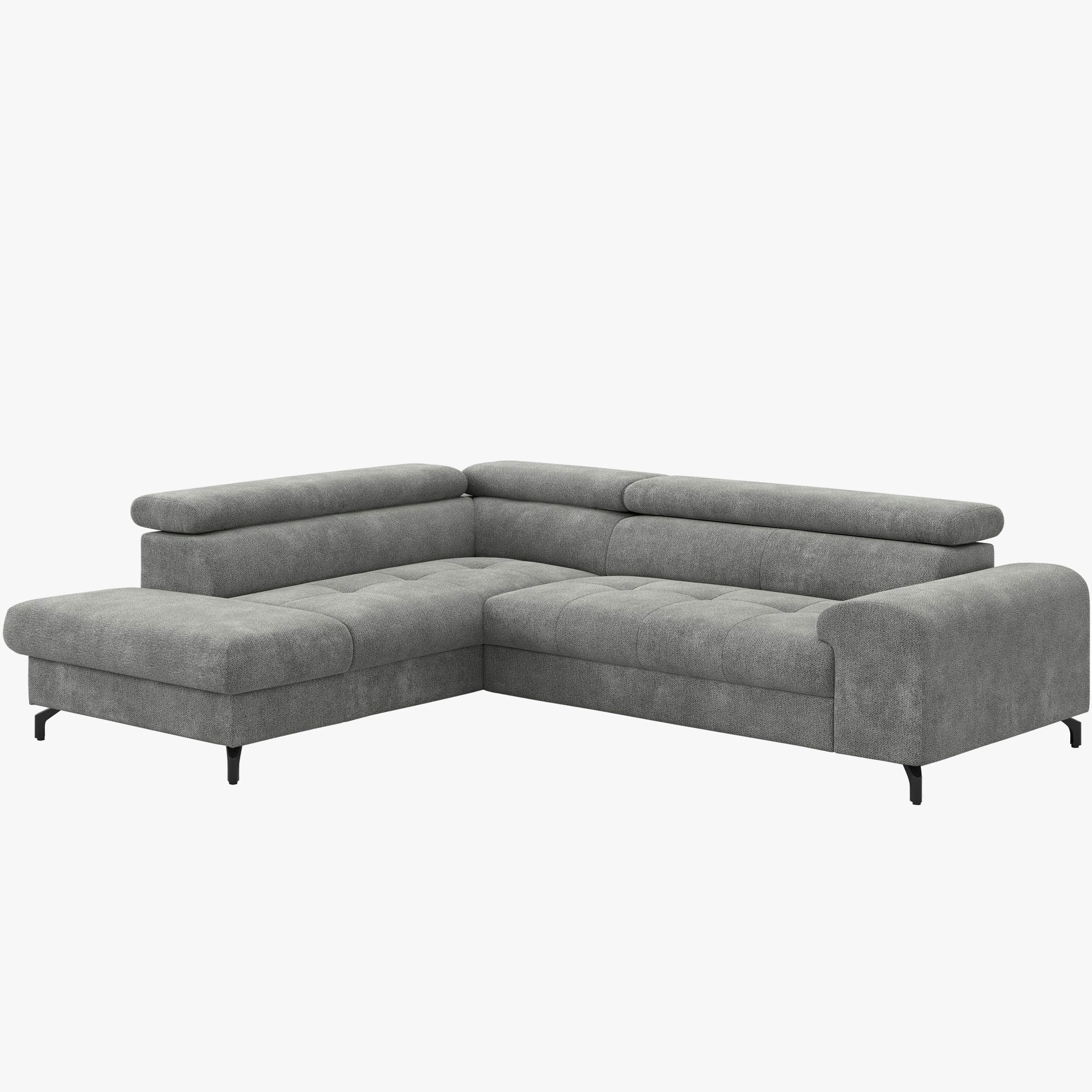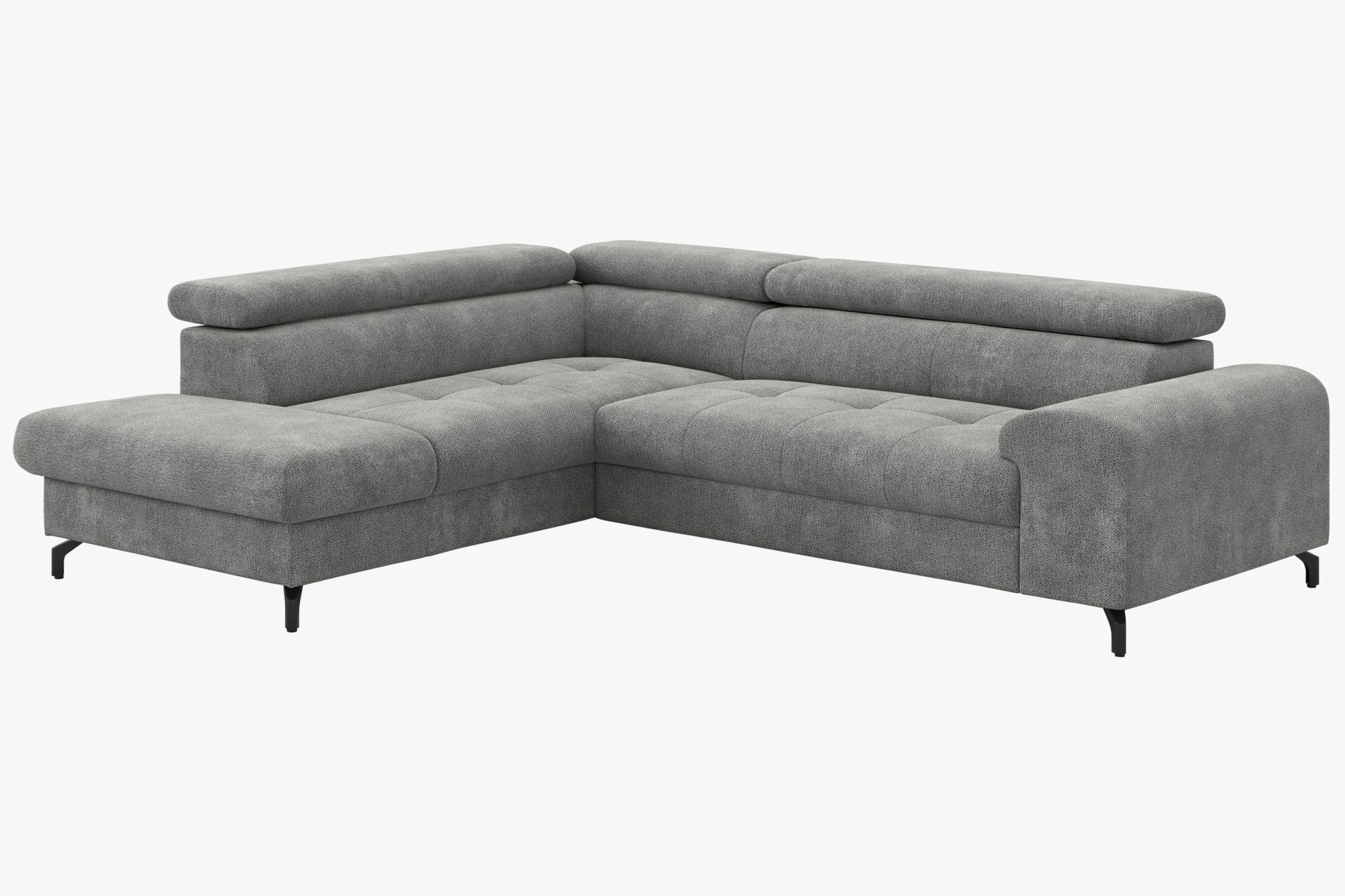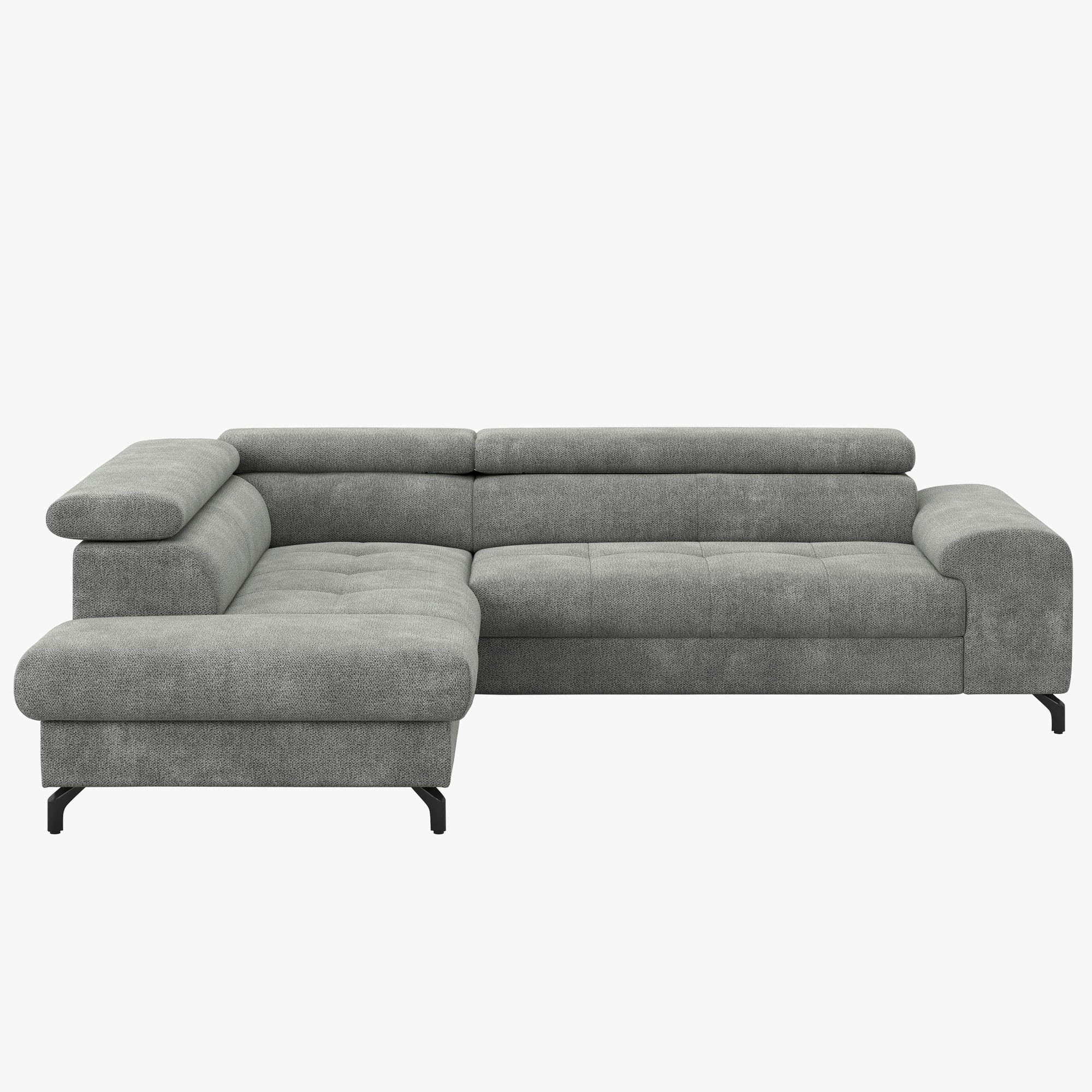 Táto rohová pohovka v tvare L má šírku 260 cm a je vybavená individuálne nastaviteľnými opierkami hlavy, ktoré poskytujú optimálnu oporu a maximálnu relaxáciu. Kovové nohy v industriálnom štýle z čierneho oceľového rámu dodávajú pohovke extravagantný vzhľad a zabezpečujú stabilitu. Sedačka je čalúnená kvalitným materiálom s jemnou a mäkkou štruktúrou, pričom maximálna nosnosť na jedno sedadlo je 120 kg. PUR penová výplň garantuje dlhú životnosť a pohodlné sedenie. Otoman je z pohľadu spredu orientovaný doprava. Každý kus je starostlivo ručná výroba, čo zaručuje vysokú kvalitu spracovania. S touto rohovou sedačkou už nikdy nebudete riešiť nedostatok miesta na sedenie!