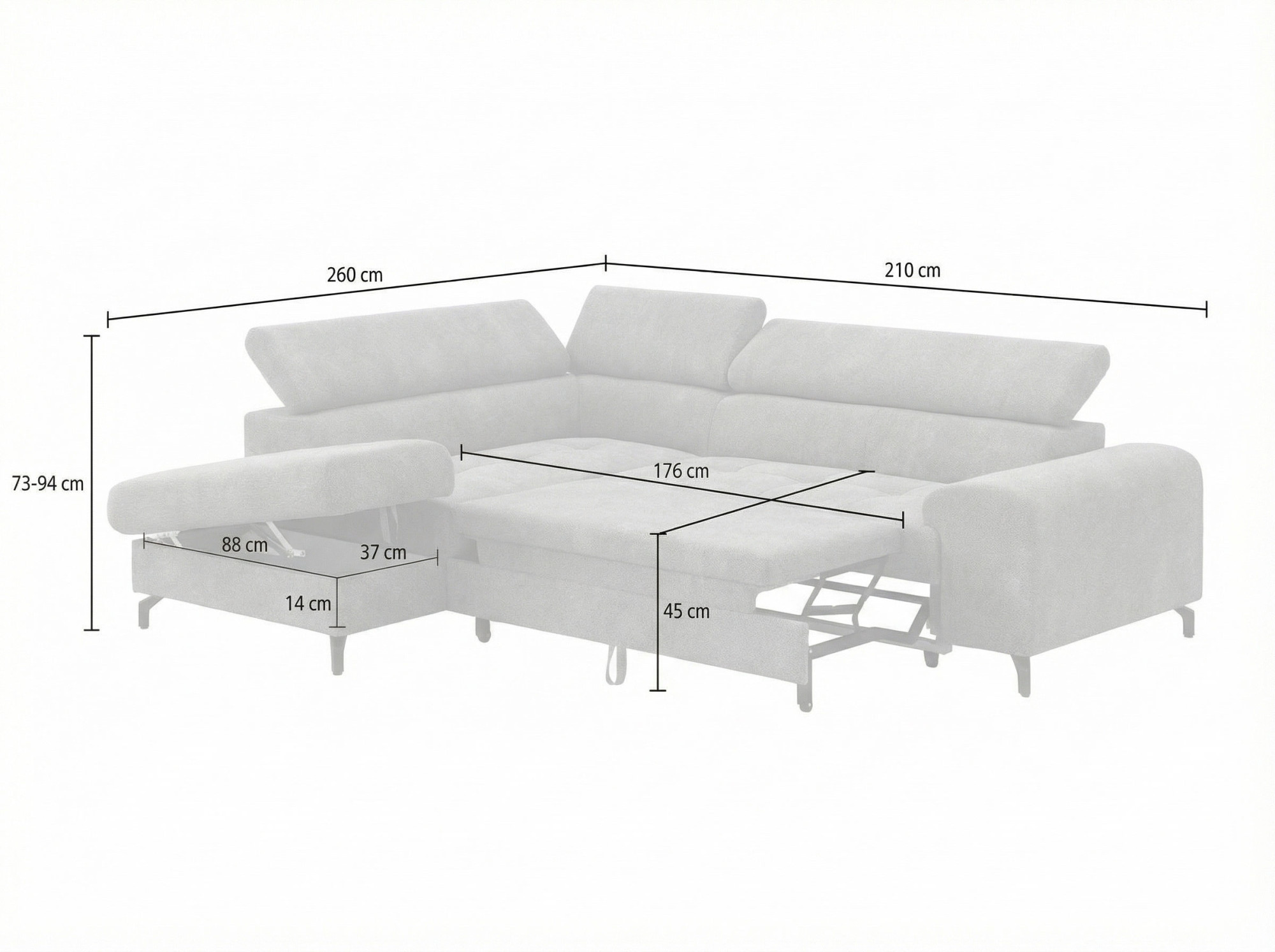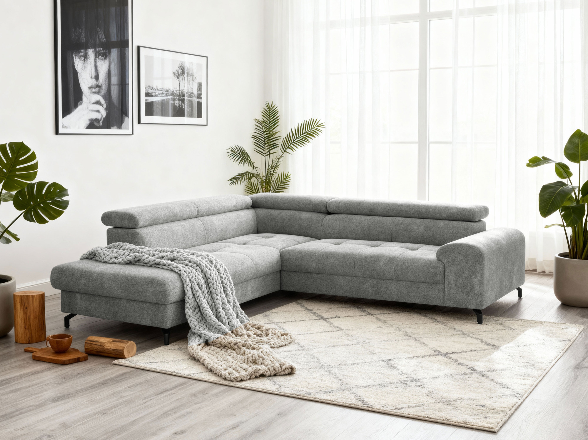 Hľadáte praktické a štýlové riešenie pre vašu obývaciu izbu? Táto rohová sedačka s funkciou spania je ideálnou voľbou pre tých, ktorí chcú skombinovať komfort, funkčnosť a moderný dizajn. Vďaka praktickému rozkladaciemu mechanizmu premeníte pohovku behom okamihu na pohodlné lôžko pre hostí alebo získate XXL sedaciu plochu na relax pri sledovaní filmov. Integrovaný úložný priestor pod sedákom ponúka dostatok miesta na uloženie prikrývok, vankúšov alebo ďalších potrebných vecí, čo je perfektné riešenie najmä pre menšie priestory. Sedačka je vyrobená s kvalitnou vlnkovou výstužou, ktorá zabezpečuje dlhodobú pružnosť a pohodlie pri sedení.
