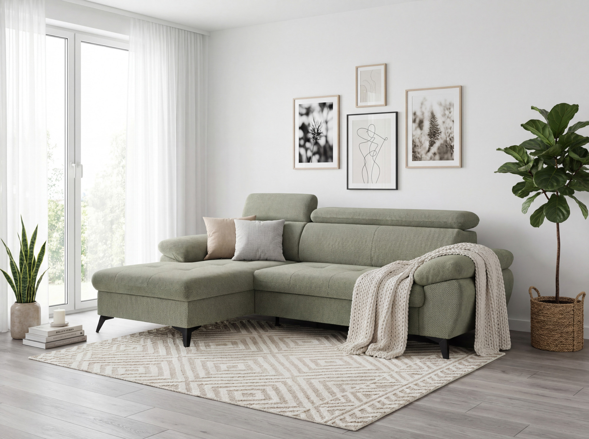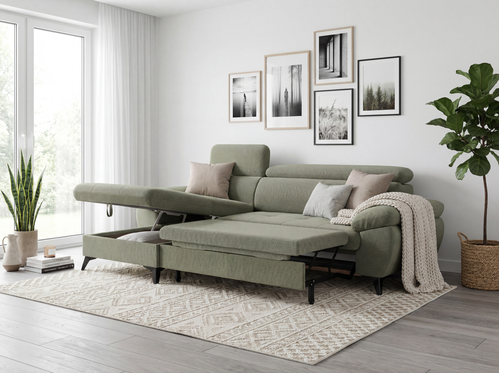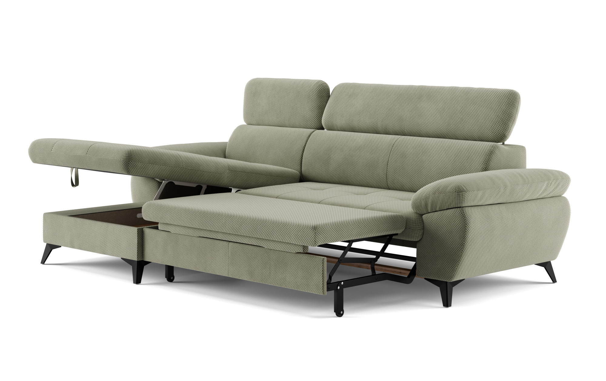 Rohová sedačka s funkciou spania zelená - turtle, Roh vľavo