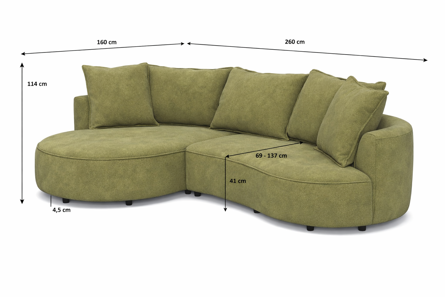 Zaoblená sedacia súprava SANA – ľavý roh