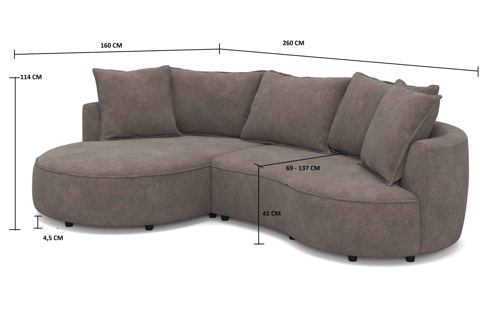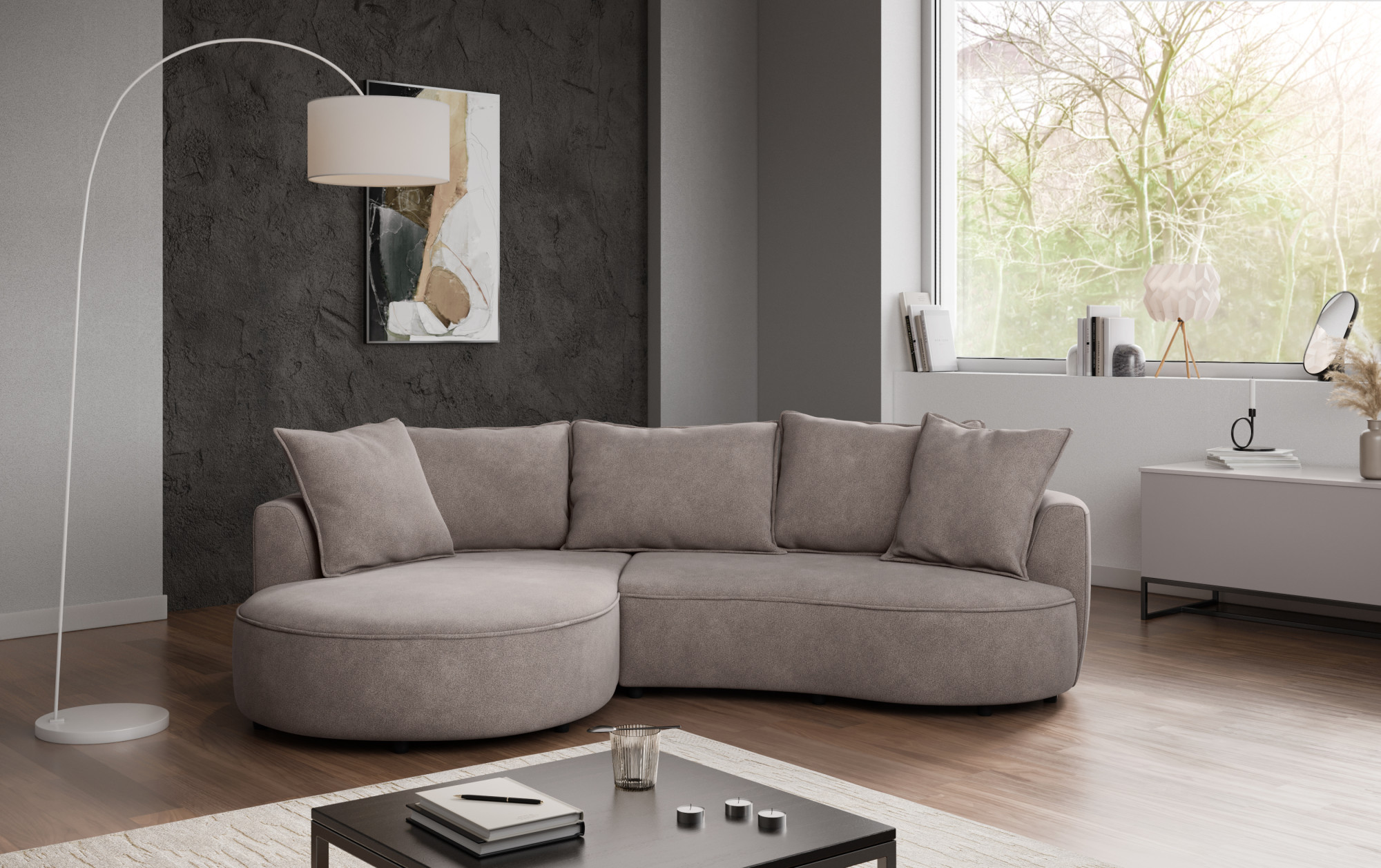 Základom pohovky je pevná konštrukcia z tvrdého dreva a borovice v kombinácii s drevoskrutkovou doskou bez formaldehydov. Sedáky sú osadené oceľovými vlnitými pružinami a vyplnené kvalitnou PUR penou bez freónov, ktorá zaručuje optimálnu oporu a pohodlie pri každodennom sedení. Opierky sú tvorené vysokogramážnou čalúnnickou lepenkou, ktorá zabezpečuje tvarovú stálosť oblých častí a statickými popruhmi, čo prispieva k ergonomickému držaniu tela. Veľkou výhodou je, že veľké aj malé vankúše sú súčasťou ceny. Pohovka neobsahuje žiadnu imitáciu kože a ponúka možnosť kombinácie materiálov pre sedák a korpus.