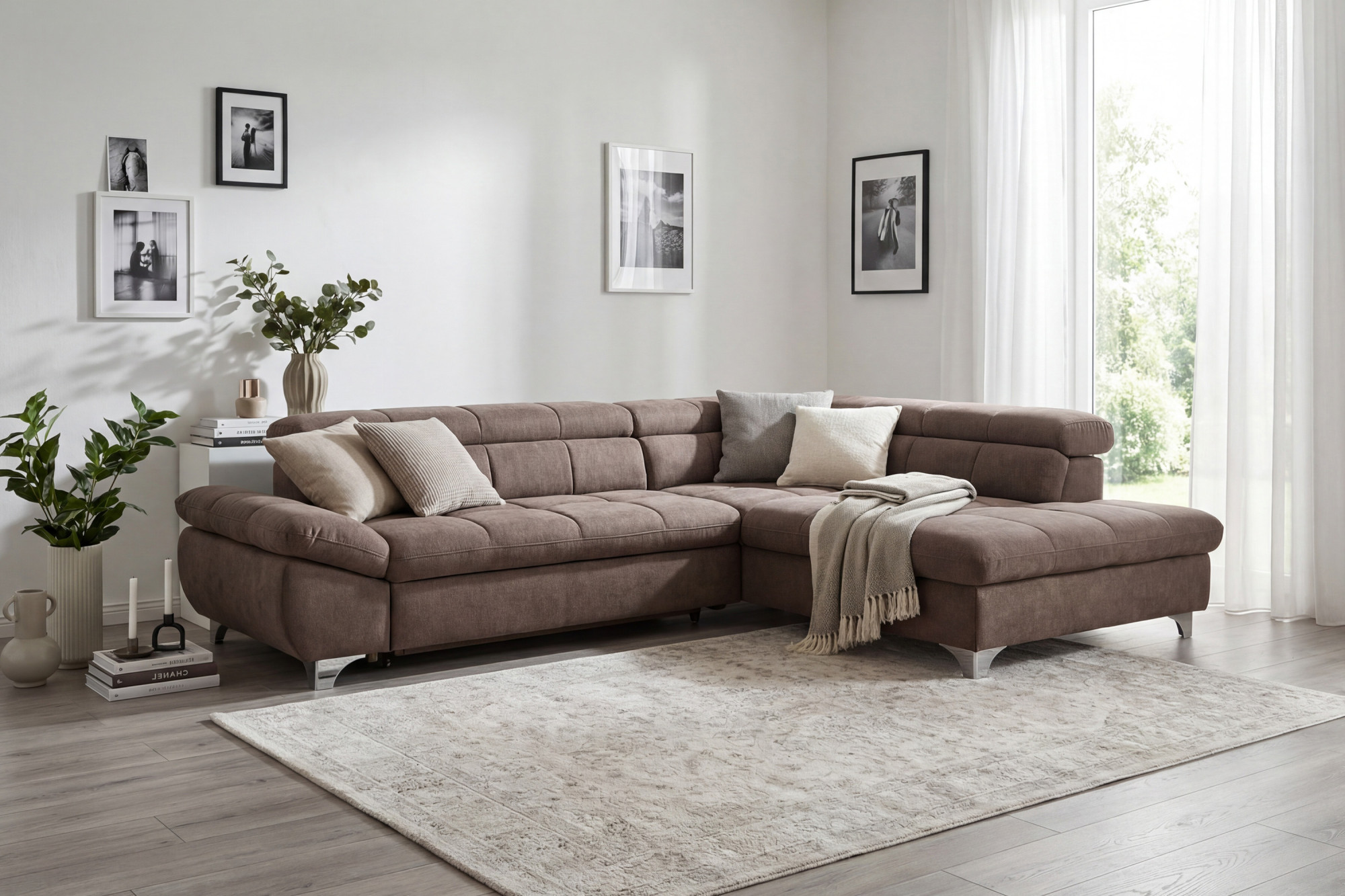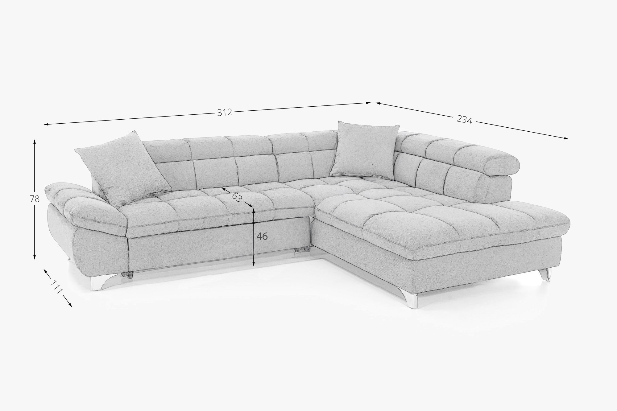 Sedacia súprava je navrhnutá s ohľadom na vaše potreby – ponúka praktickú funkciu rozkladacieho lôžka pre príležitostné prespávanie hostí a zabezpečuje maximálne pohodlie pri oddychu. Nastaviteľné opierky hlavy umožnia ešte väčšiu relaxáciu pri pozeraní televízie alebo čítaní. Rozmery sedačky sú šírka 312 cm a hĺbka 234 cm, k dispozícii je varianta s rohom vľavo alebo vpravo podľa usporiadania vášho priestoru. Kovové nohy vo výške 10 cm dodávajú súprave ľahký a vzdušný vzhľad a umožňujú jednoduchú údržbu podlahy pod sedačkou. Táto rohová sedacia súprava s funkciou spania v nadčasovej šedo-hnedej farbe je perfektnou voľbou pre rodiny aj milovníkov pohodlia, ktorí oceňujú kvalitné spracovanie a nadčasový dizajn.