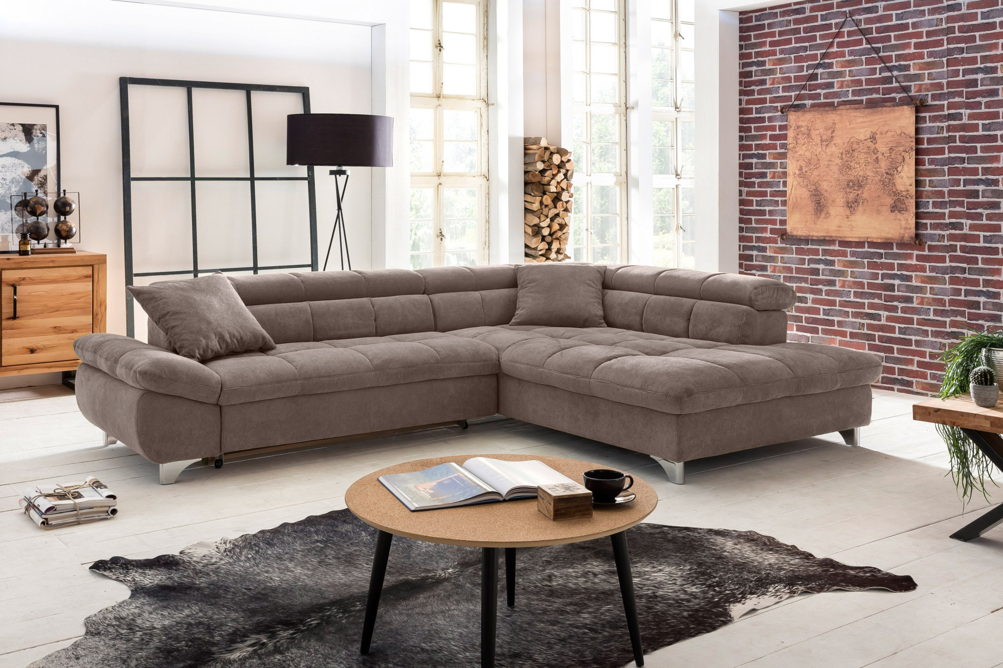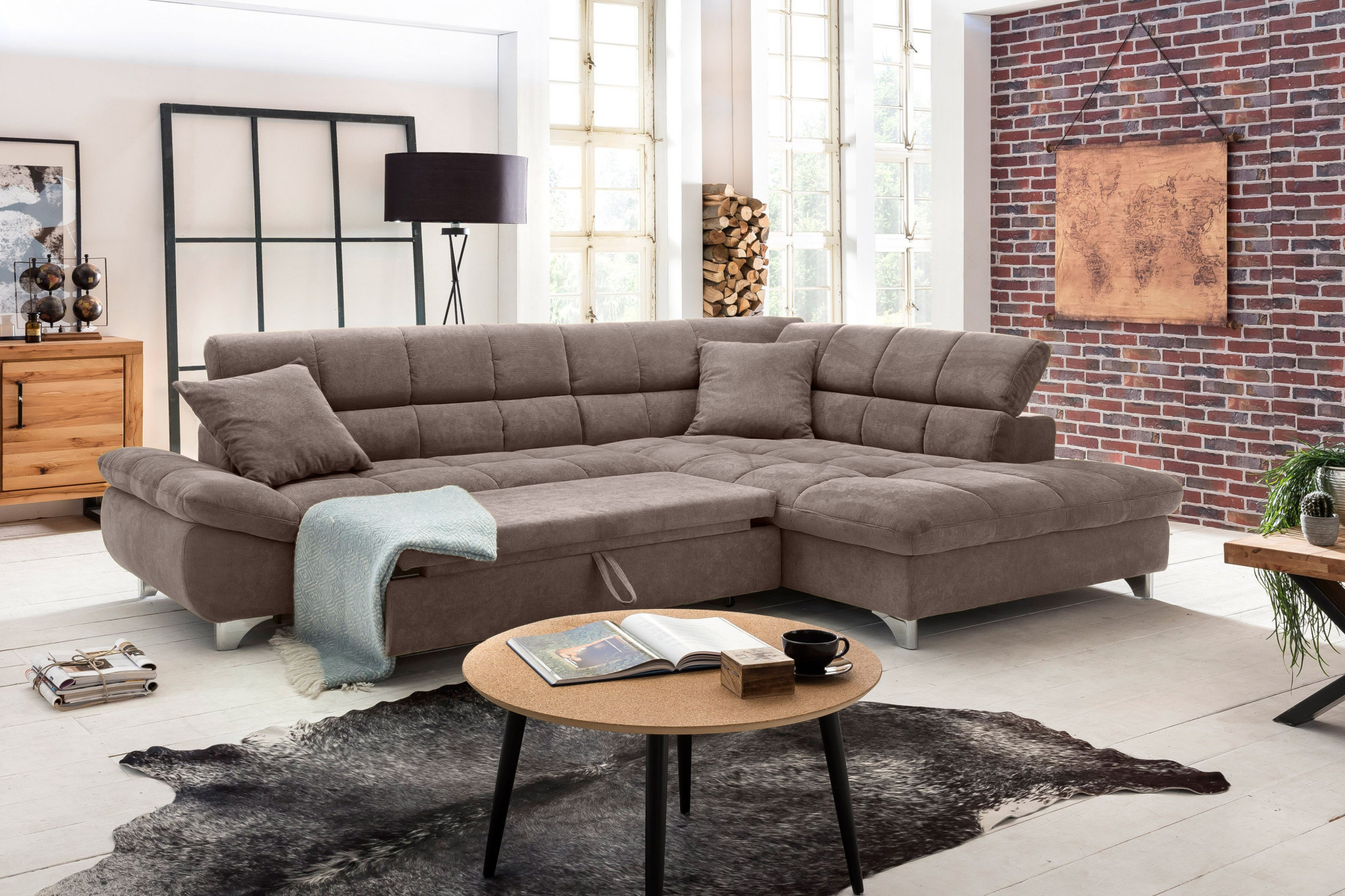 Rohová sedačka s funkciou spania farba hnedo sivá , Roh vpravo