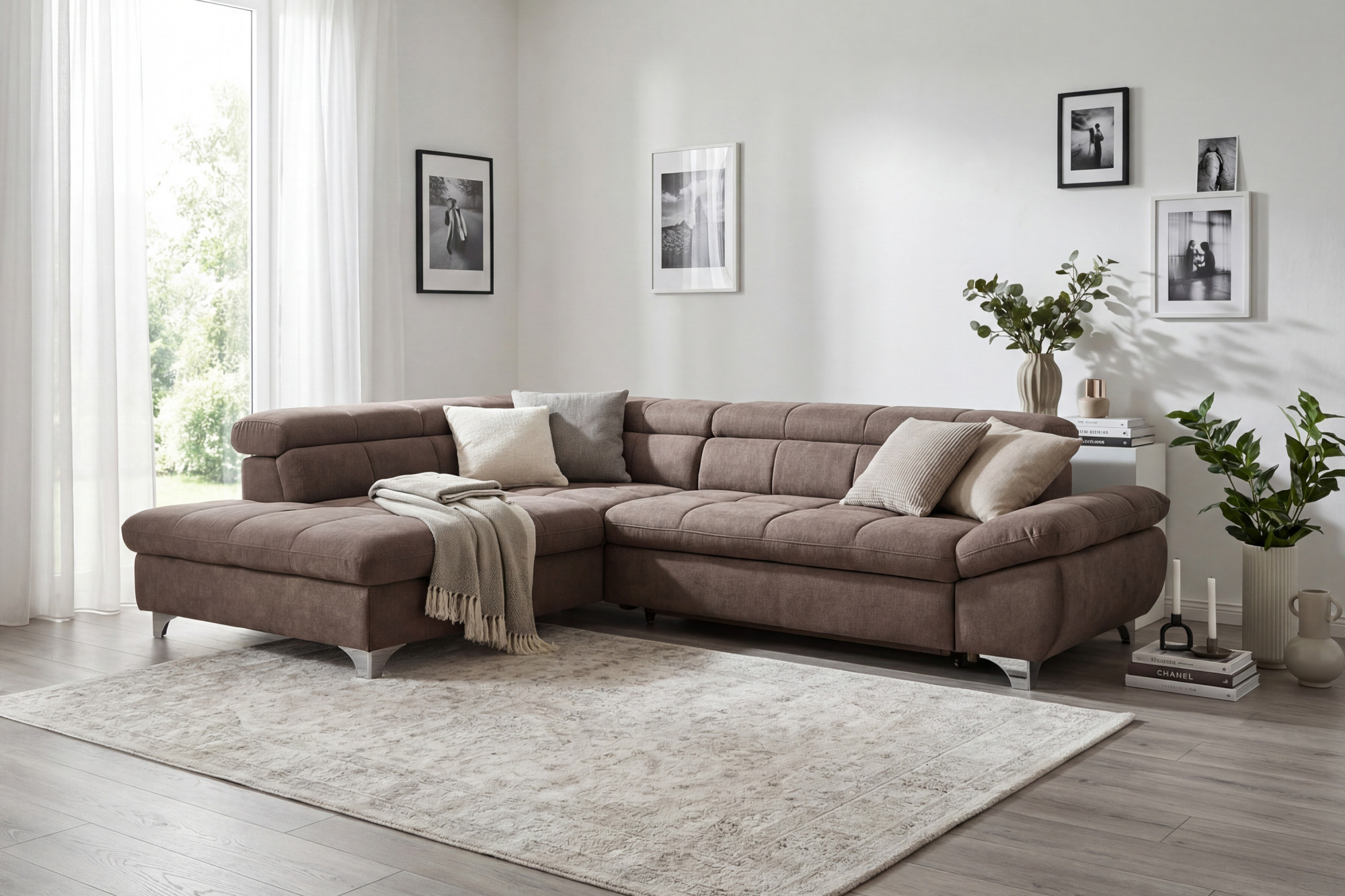 Sedacia súprava je navrhnutá s ohľadom na vaše potreby – ponúka praktickú funkciu rozkladacieho lôžka pre príležitostné prespanie hostí a zabezpečuje maximálne pohodlie pri odpočinku. Nastaviteľné opierky hlavy umožnia ešte väčší relax pri sledovaní televízie alebo čítaní. Rozmery sedačky sú šírka 312 cm a hĺbka 234 cm, k dispozícii je varianta s rohom vľavo alebo vpravo podľa usporiadania vášho priestoru. Kovové nohy vo výške 10 cm dodávajú súprave ľahký a vzdušný vzhľad a umožňujú jednoduchú údržbu podlahy pod sedačkou. Táto rohová sedacia súprava s funkciou spania je perfektnou voľbou pre rodiny aj milovníkov pohodlia, ktorí oceňujú kvalitné spracovanie a nadčasový dizajn.