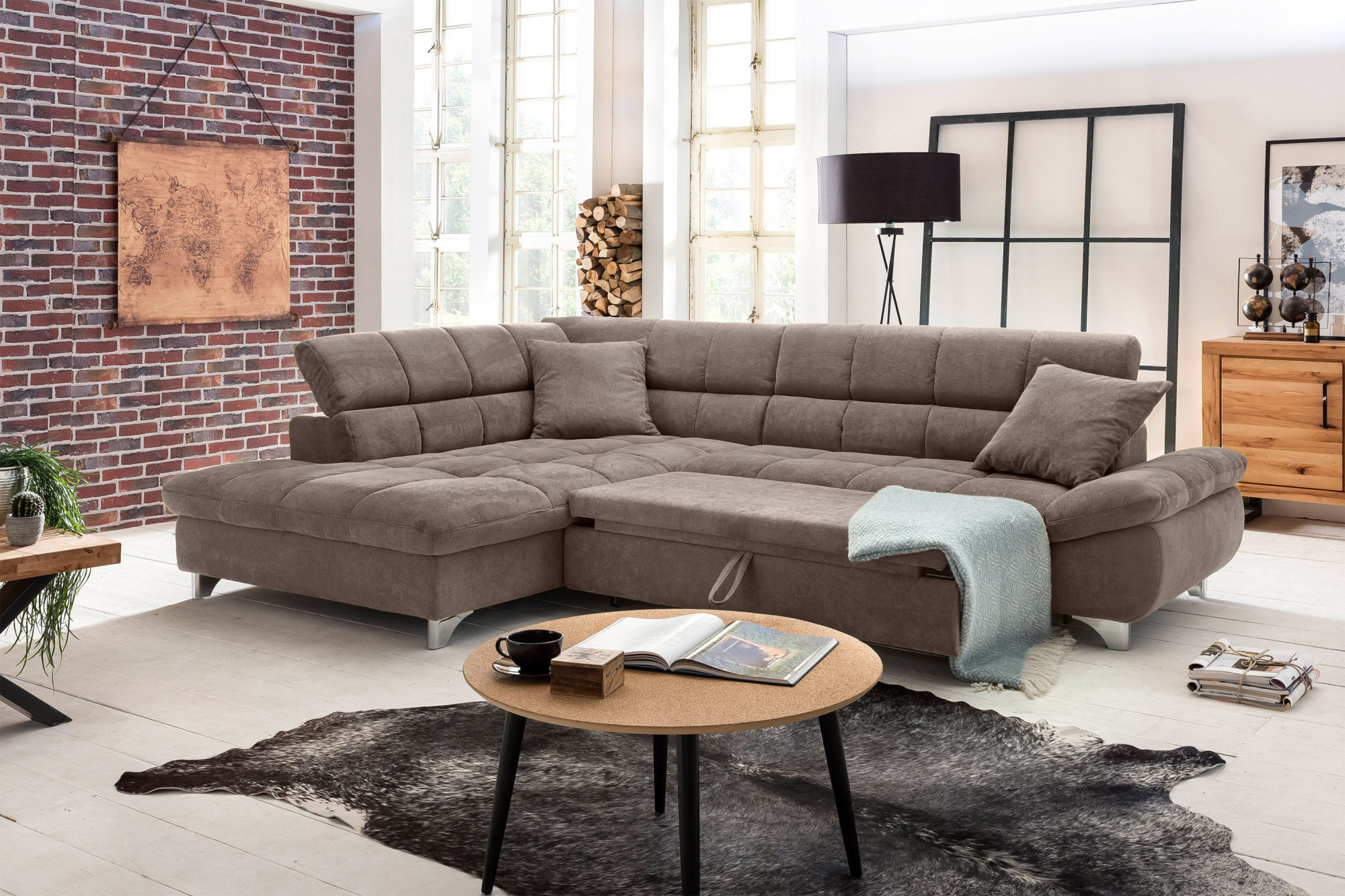 Rohová sedačka s funkciou spania farba hnedo šedá , Roh vľavo