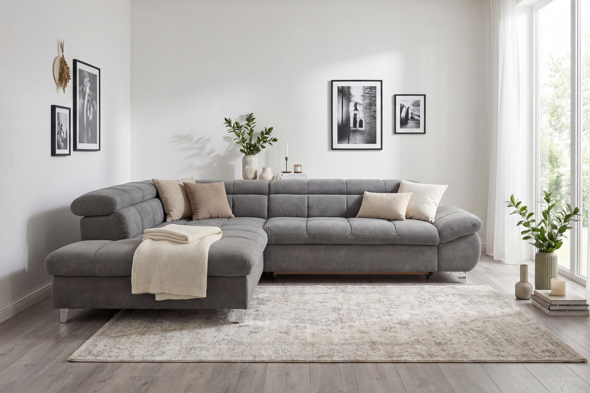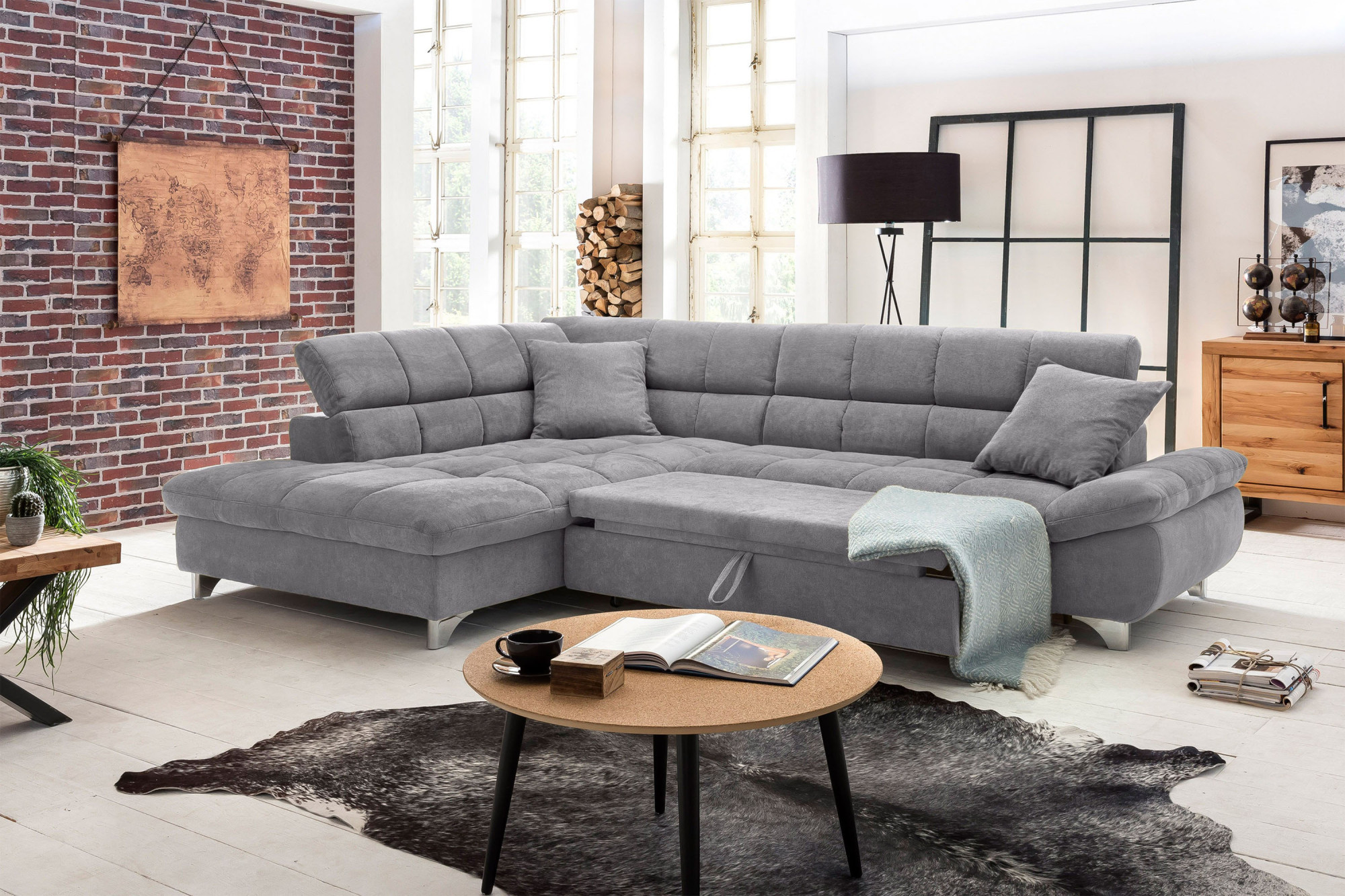 Rohová sedačka s funkciou spania farba sivá , Roh vľavo