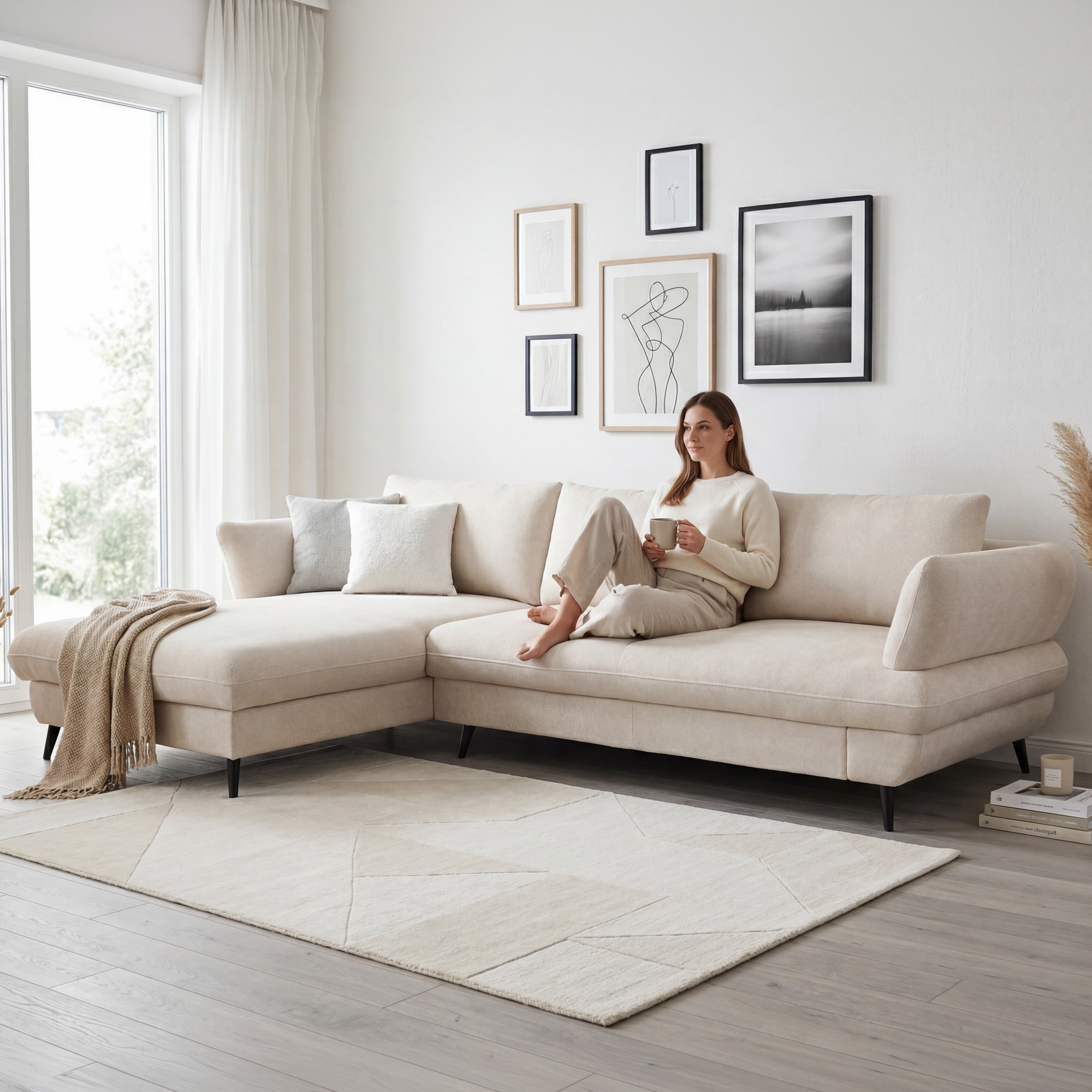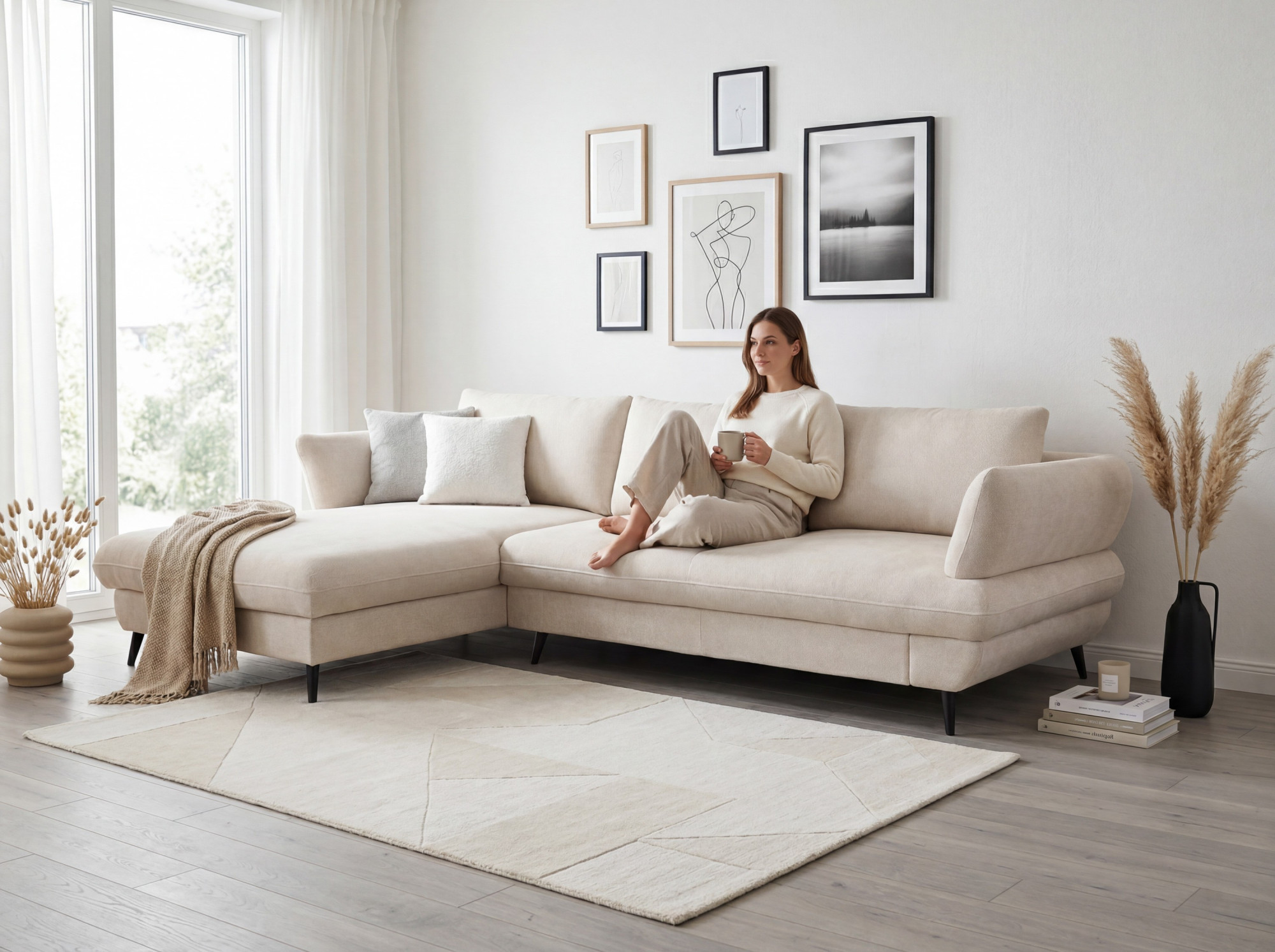 Sedačka BALOU 2.5F-REC/BK zaujme na prvý pohľad svojimi modernými oblými líniami a nadčasovým vzhľadom, ktorý skvele zapadne do súčasného interiéru. Mäkké, komfortné sedenie oceníte pri každodennom oddychu i pri dlhšom posedení s rodinou. Na fotografii je prevedenie v látke New York Beige; vďaka premyslenej konštrukcii pôsobí sedačka elegantne a zároveň stabilne. Ak hľadáte rohovú sedačku do obývačky, ktorá vyzerá ľahko, ale zvládne bežný chod domácnosti, BALOU je výborná voľba.