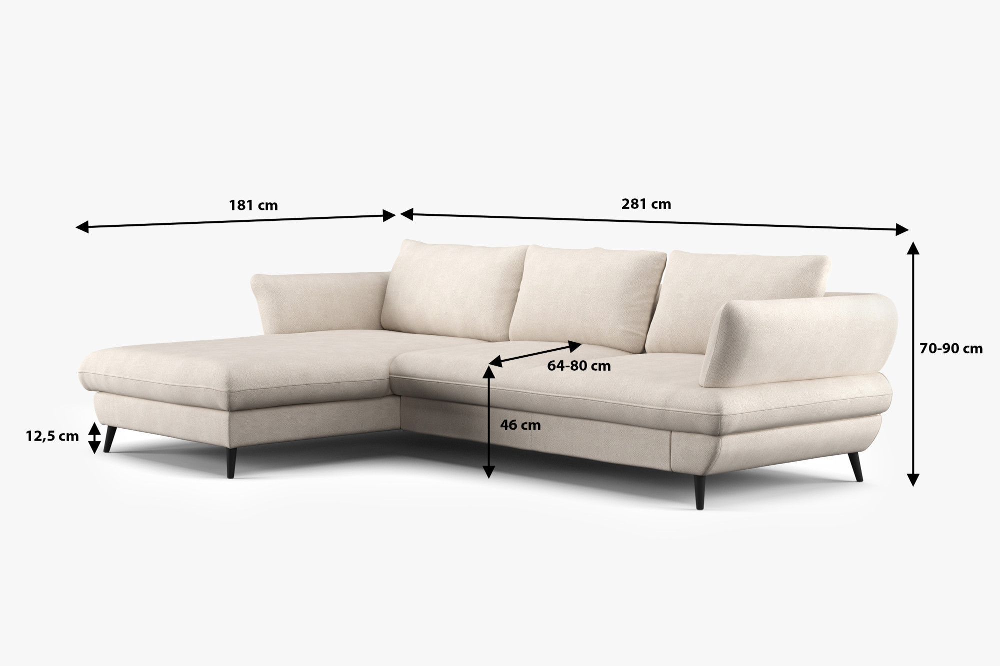 - Rozmery: 281 × 181 × 70 cm (Š × H × V)