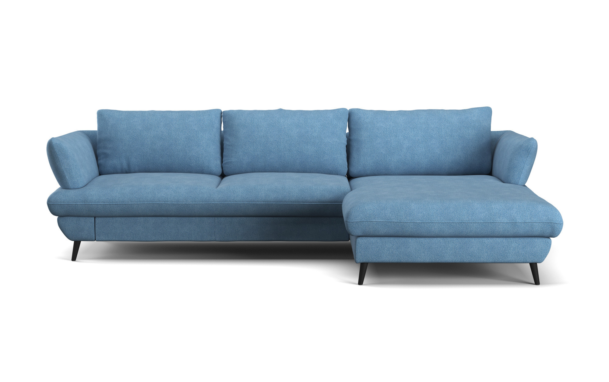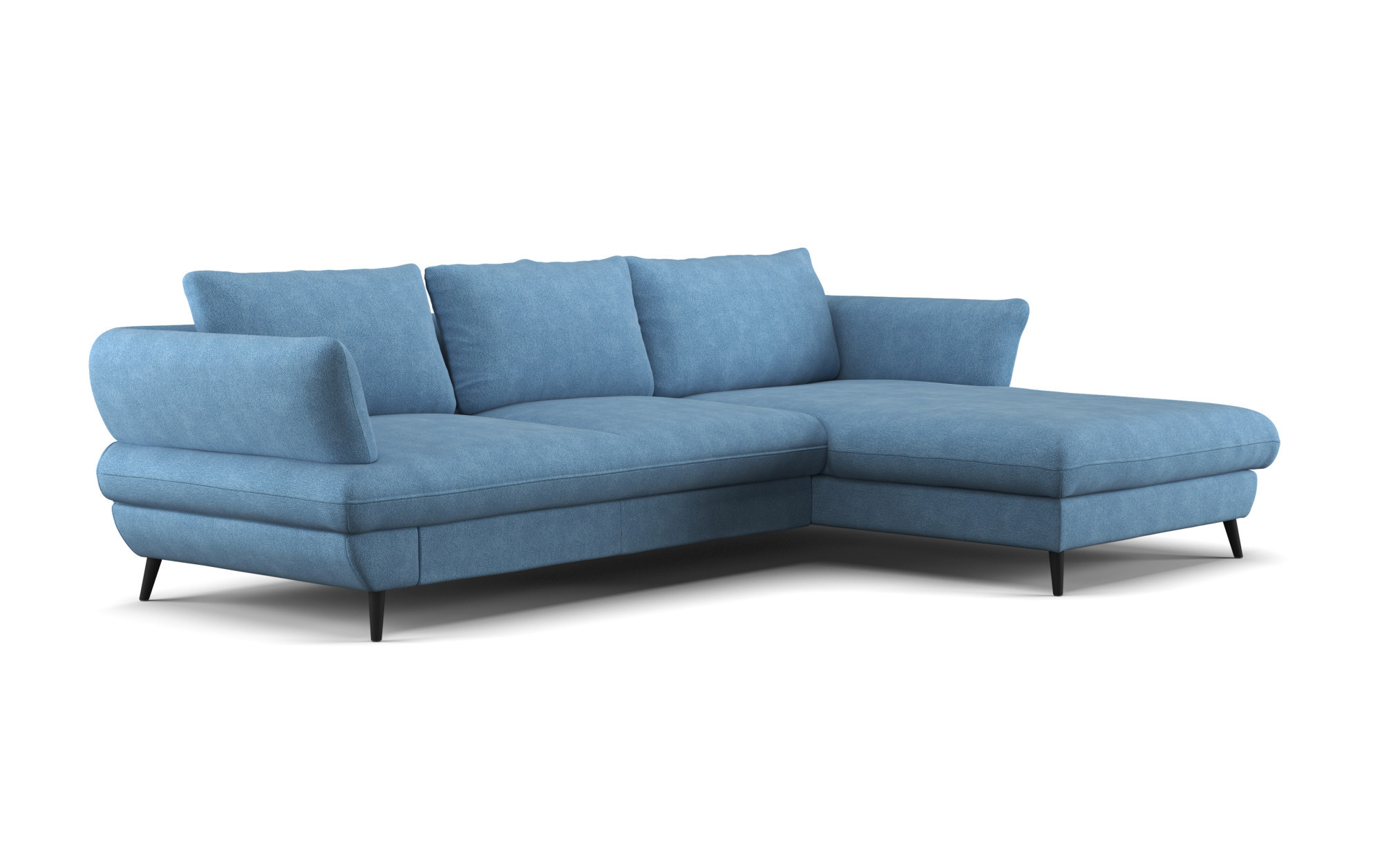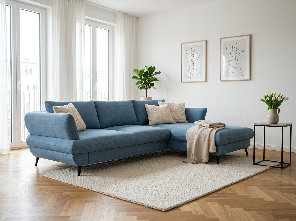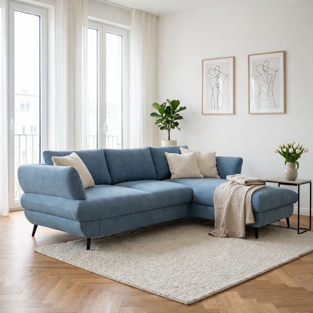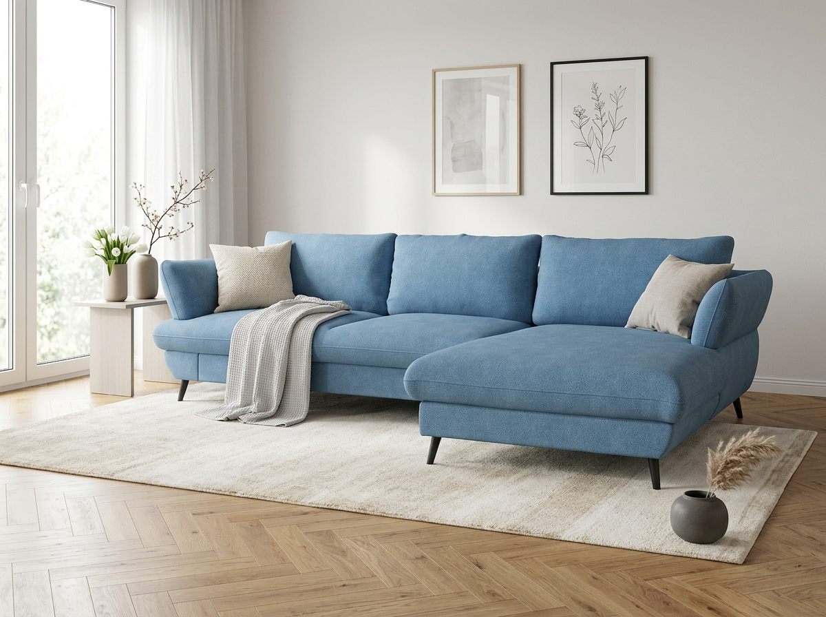 Sedačka BALOU 2.5F-REC/BK zaujme na prvý pohľad svojimi modernými oblými líniami a nadčasovým vzhľadom, ktorý skvele zapadne do súčasného interiéru. Mäkké, komfortné sedenie oceníte pri každodennom oddychu i pri dlhšom posedávaní s rodinou. Na fotografii je prevedenie v látke New York Azure; vďaka premyslenej konštrukcii pôsobí sedačka elegantne a zároveň stabilne. Ak hľadáte rohovú sedačku do obývačky, ktorá vyzerá ľahko, no zvládne bežný domáci režim, BALOU je výborná voľba.
