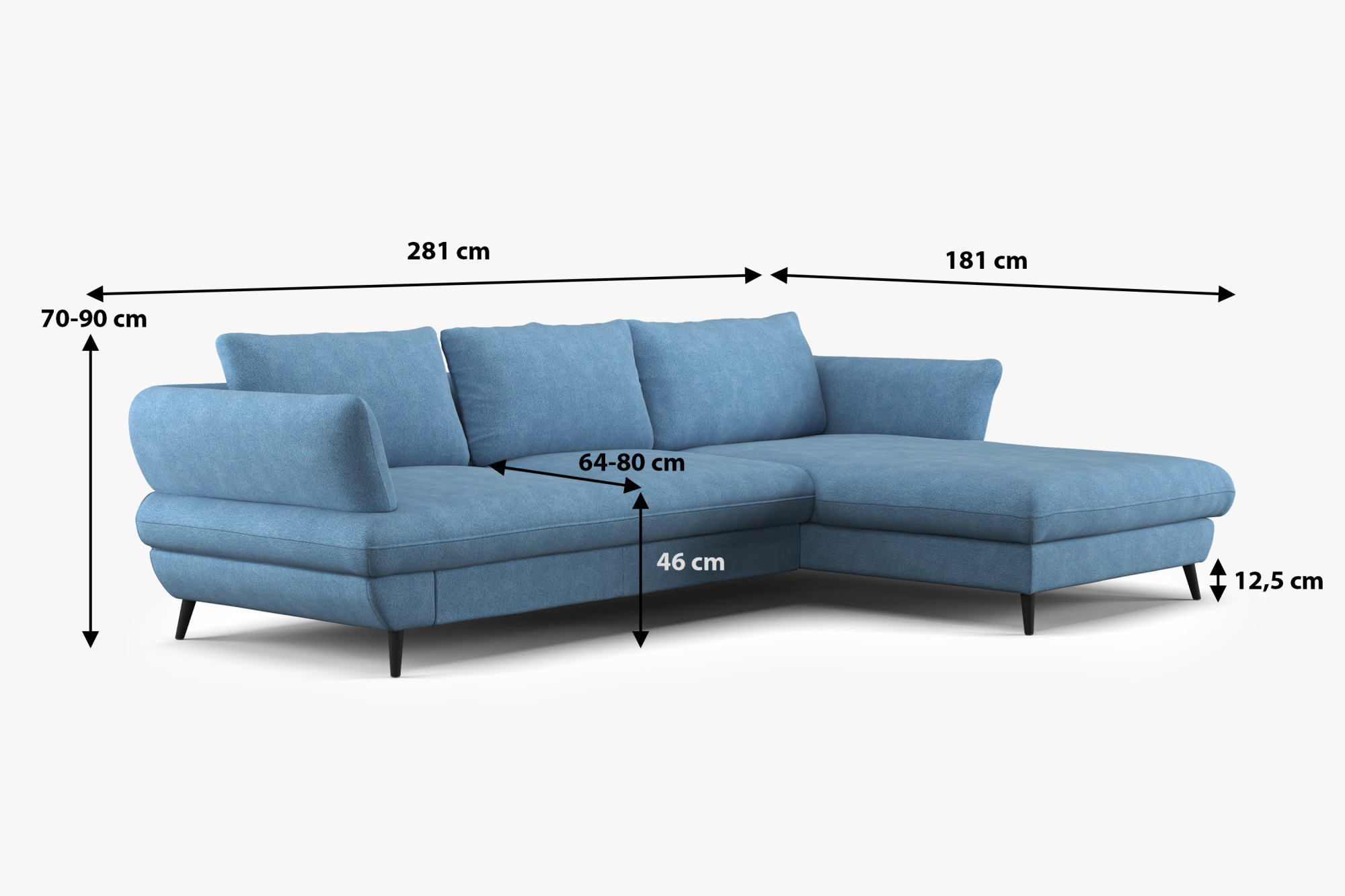 - Rozmery: 281 × 181 × 70 cm (Š × H × V)