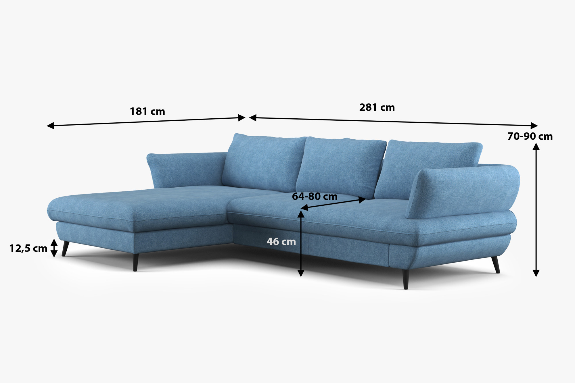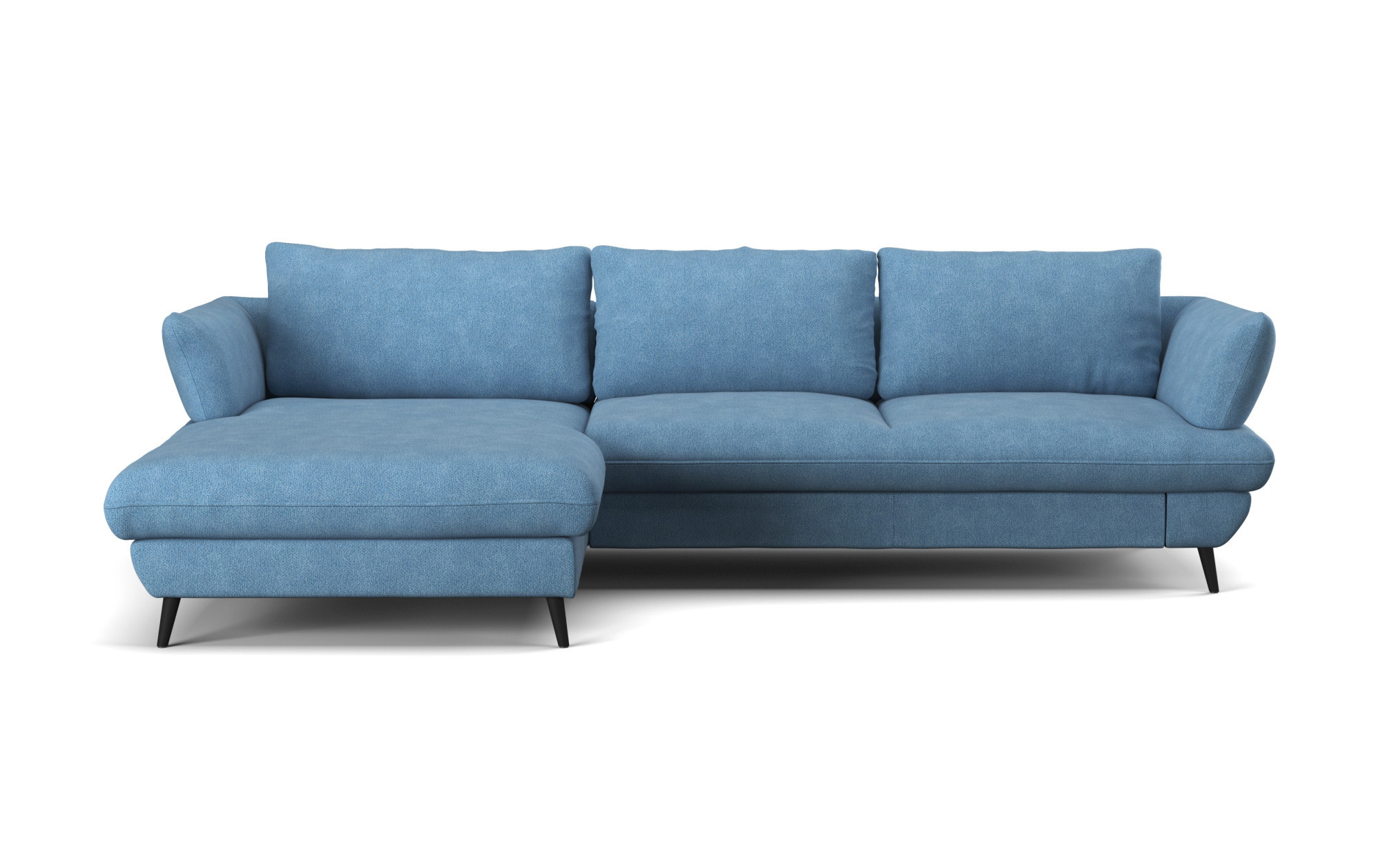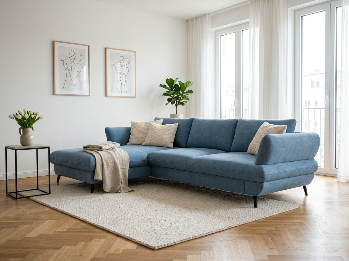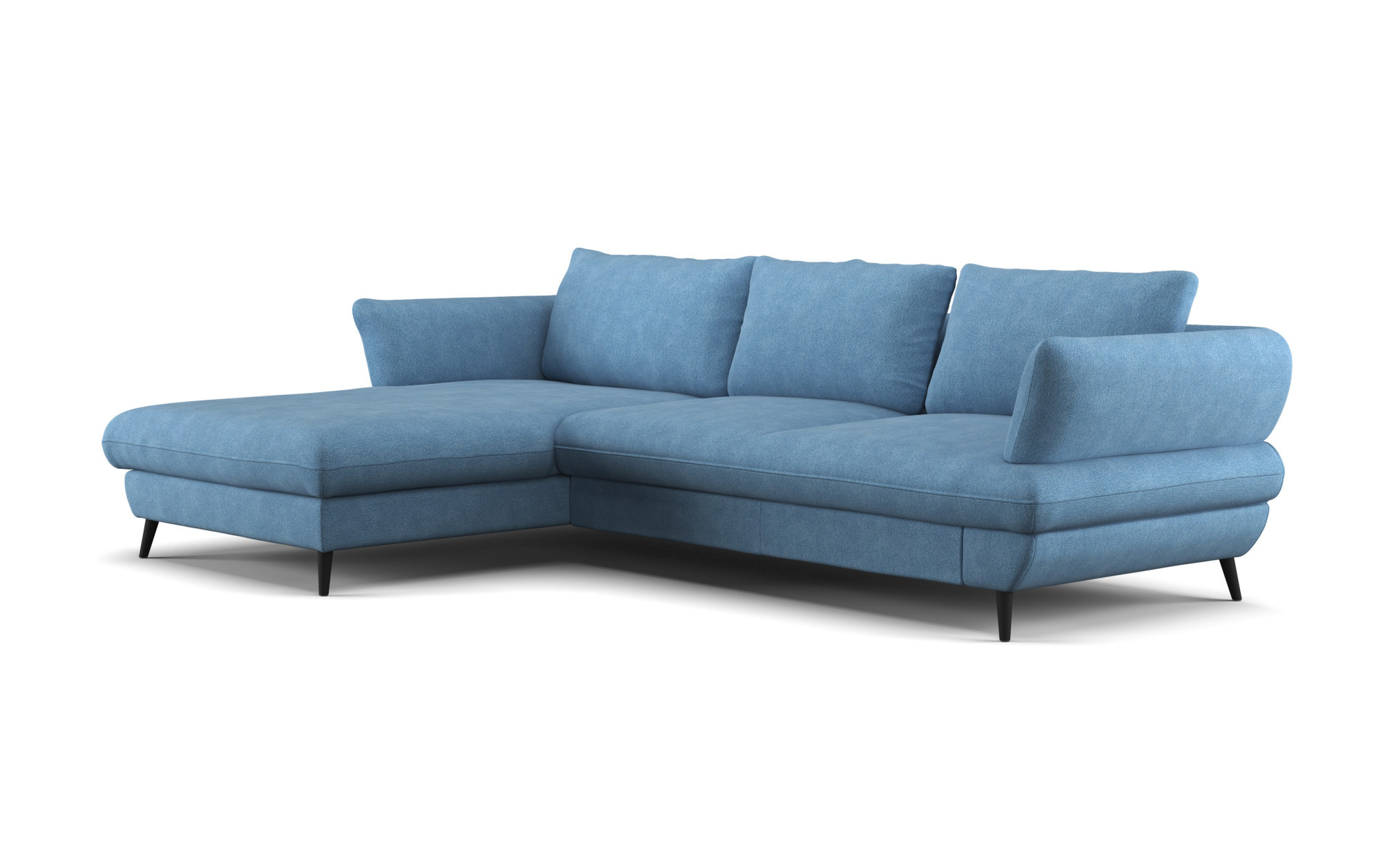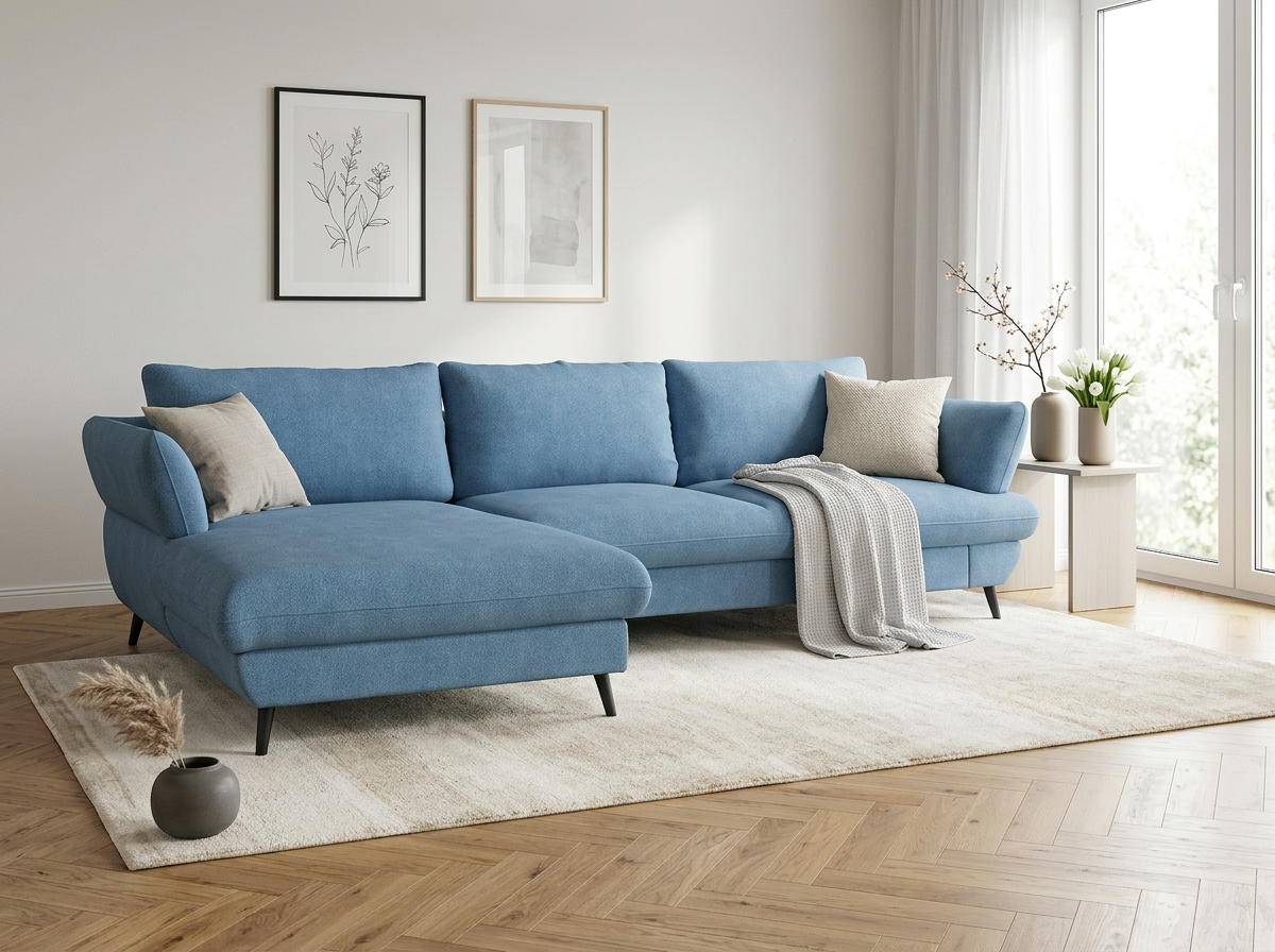 Sedačka BALOU zaujme na prvý pohľad svojimi modernými oblými líniami a nadčasovým vzhľadom, ktorý skvele zapadne do súčasného interiéru. Mäkké, komfortné sedenie oceníte pri každodennom oddychu aj pri dlhšom posedení s rodinou. Na fotografii je prevedenie v látke New York Azure; vďaka premyslenej konštrukcii pôsobí sedačka elegantne a zároveň stabilne. Ak hľadáte rohovú sedačku do obývačky, ktorá vyzerá ľahko, ale zvládne bežný režim domácnosti, BALOU je výborná voľba.