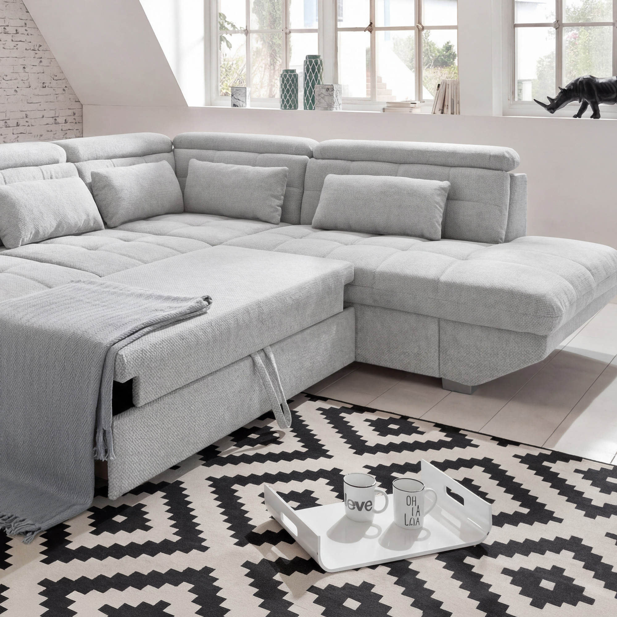 Rohová sedacia súprava Eternity striebristo sivá – roh vpravo s funkciou spania a úložným priestorom