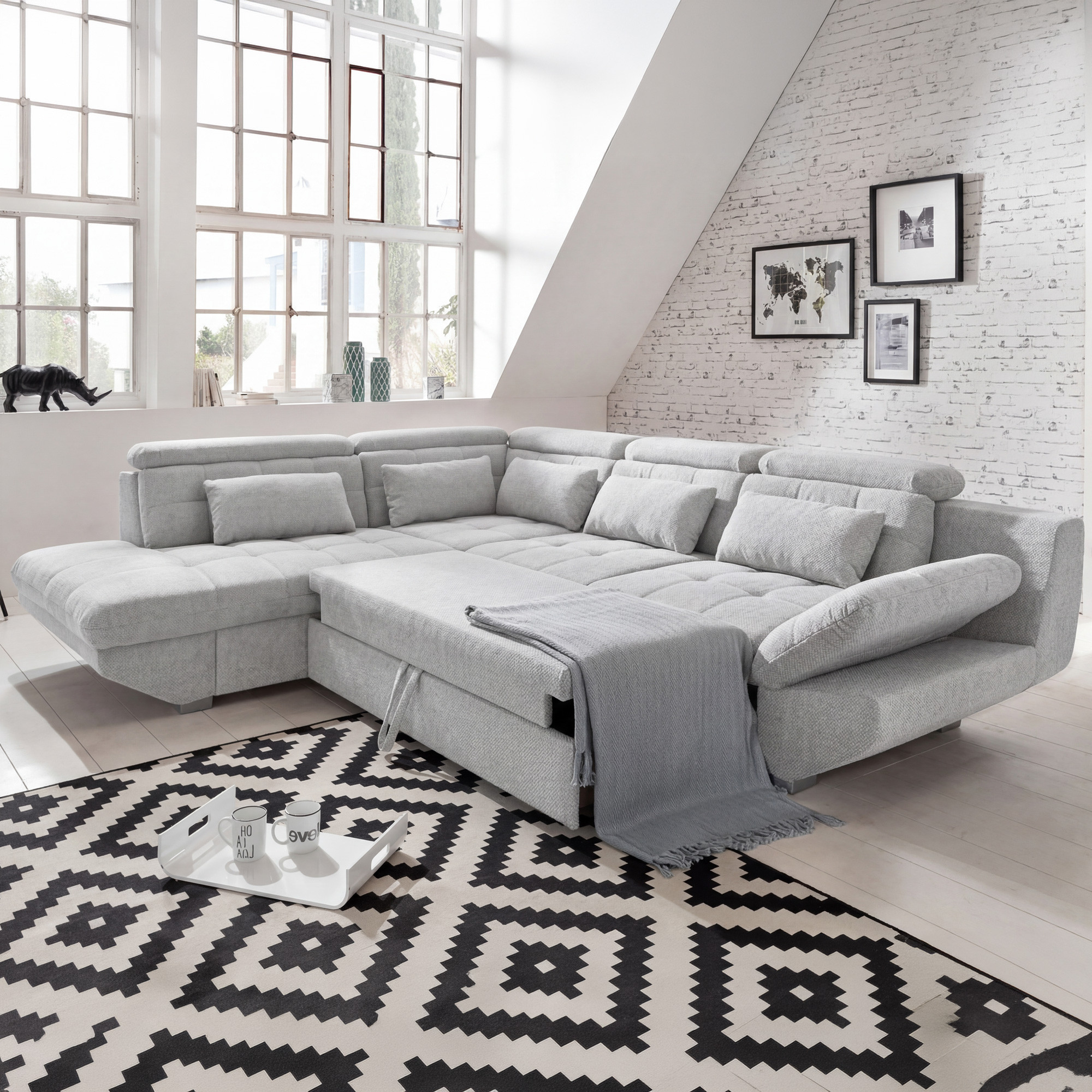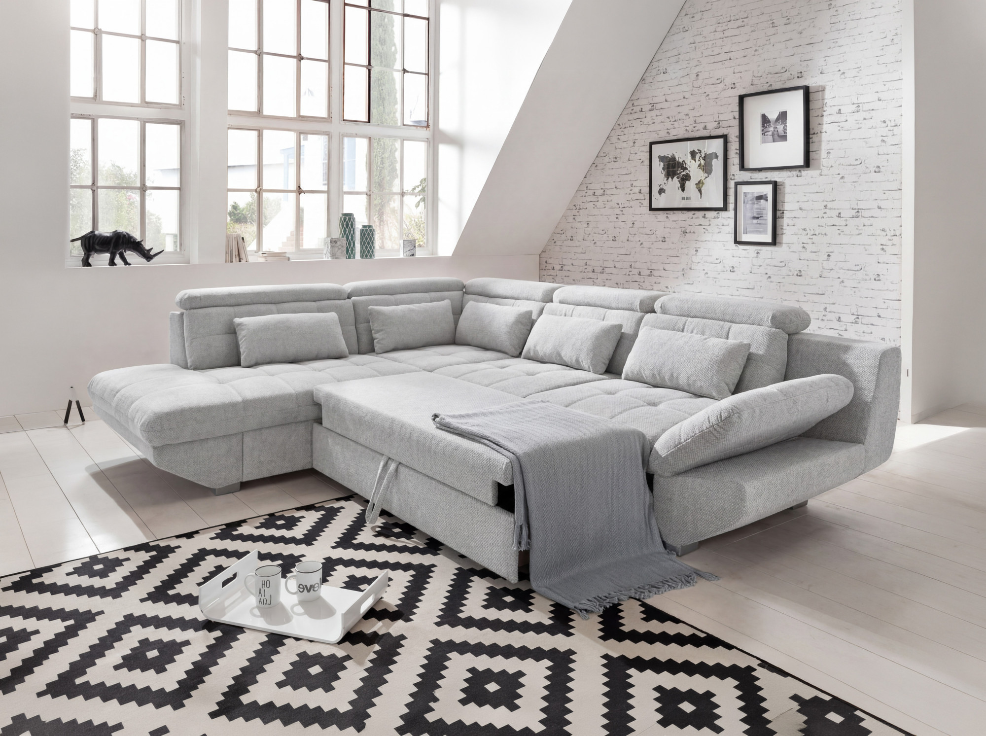 Rohová sedacia súprava Eternity striebristo sivá – roh vpravo s funkciou spania a úložným priestorom