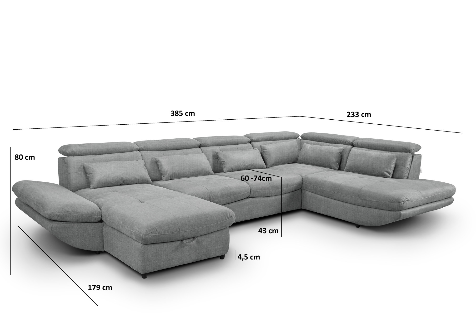 - Rozmery pohodlia: hĺbka sedu 60 cm, výška sedu 43 cm