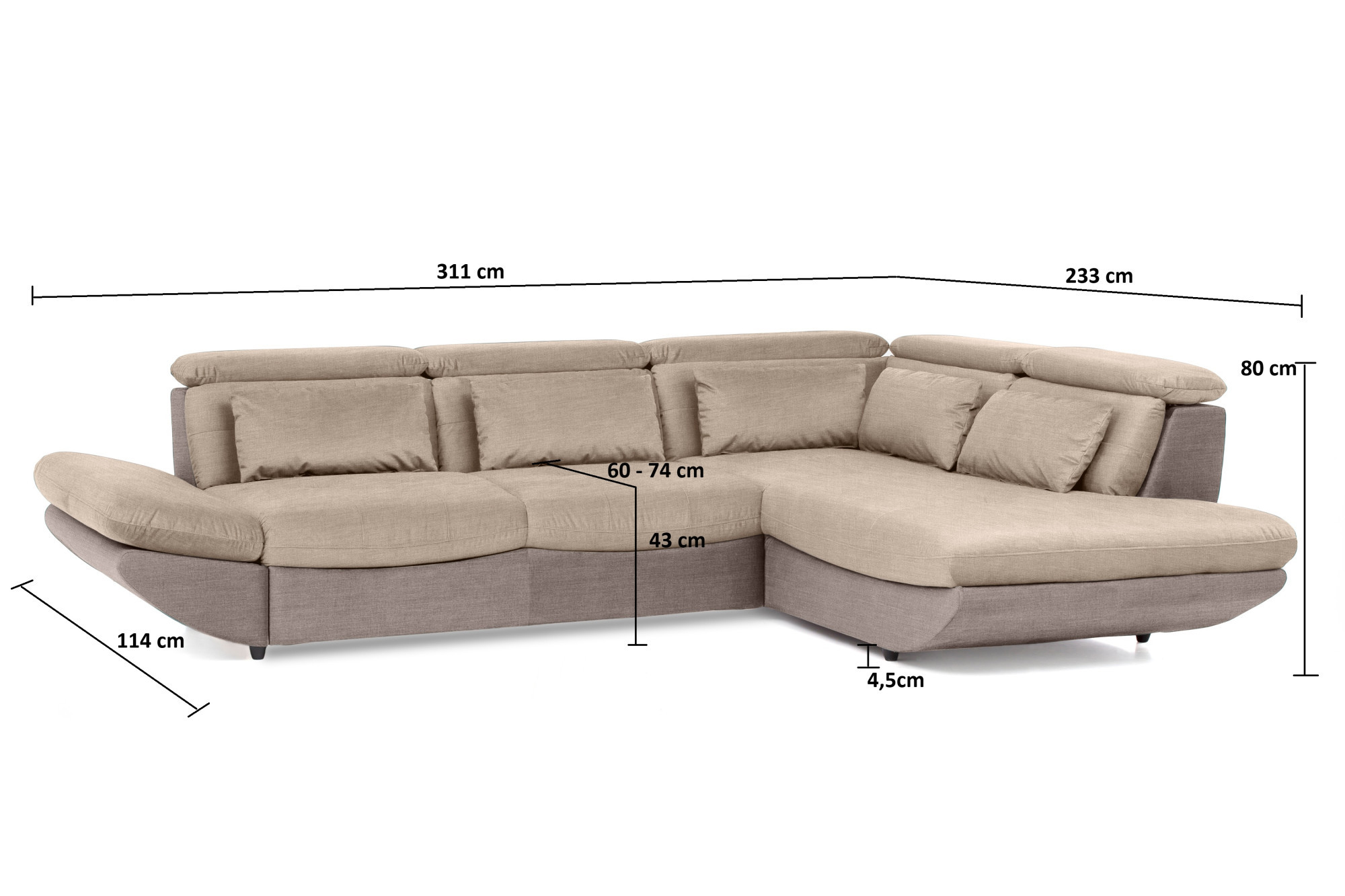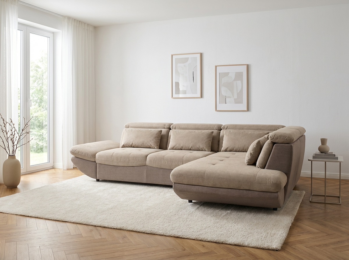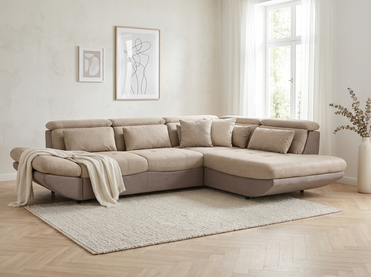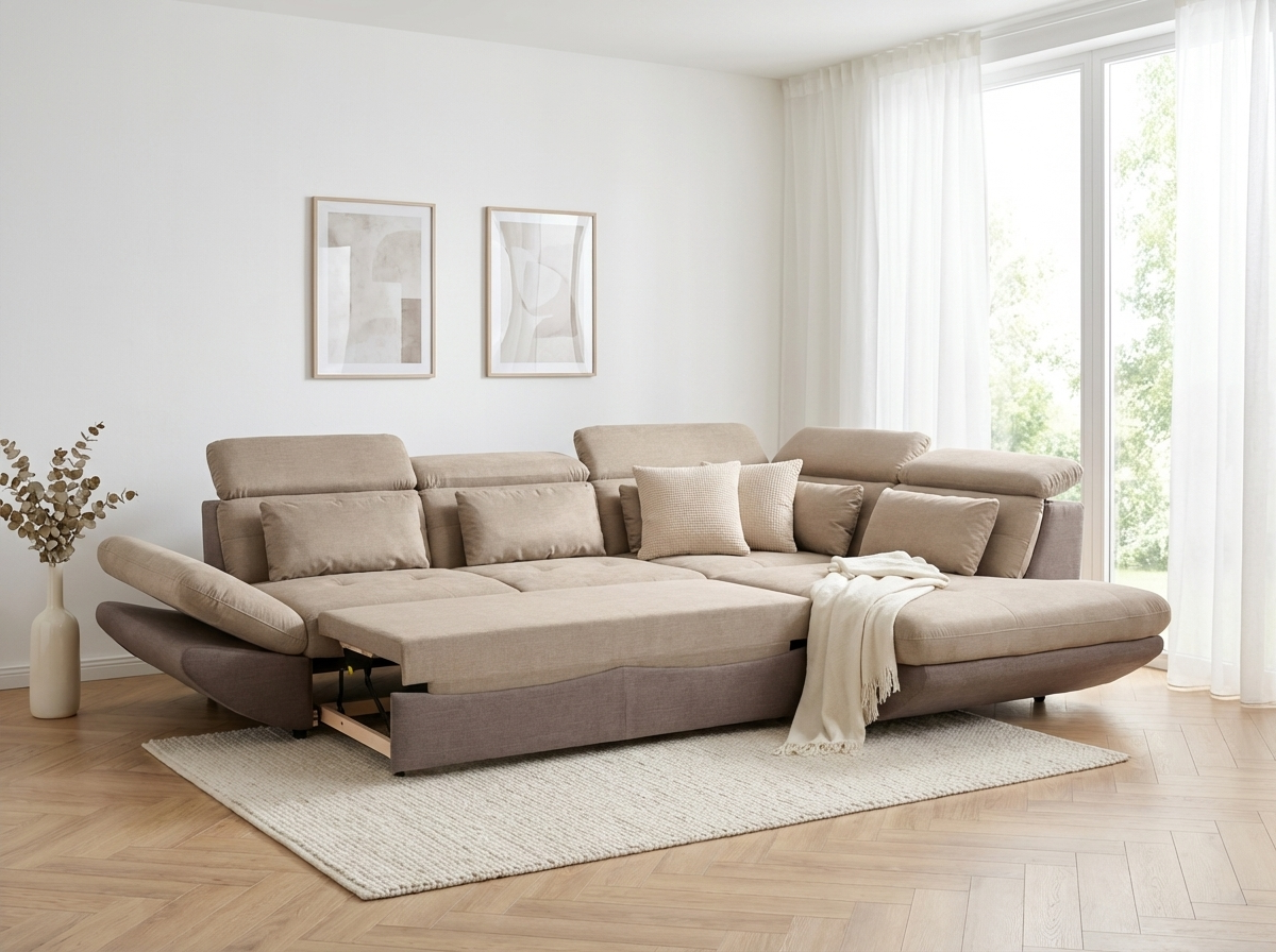 Moderná rohová sedacia súprava Park predstavuje ideálne riešenie pre všetkých, ktorí hľadajú priestrannú sedaciu súpravu s praktickými funkciami a atraktívnym dizajnom. Táto rozkladacia sedacia súprava ponúka už v základnej cene funkciu spania, úložný priestor i polohovateľné opierky hlavy, čo z nej robí perfektnú voľbu do každého moderného obývacieho priestoru. Vďaka veľkorysým rozmerom 311 × 233 cm poskytuje dostatok miesta pre každodenný relax celej rodiny. Komfort zabezpečujú nielen bedrové vankúše, ale aj kvalitná výplň z PU peny bez freónov a vlnité pružiny v sedáku, ktoré zaručujú dlhú životnosť a pohodlie.