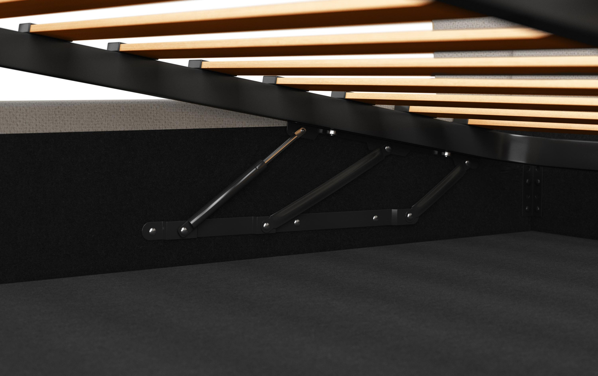 - Rošt: Extra stabilný kovový rám s 13-násobne ohýbanými pružinovými lamelami z tvrdého dreva. Nastaviteľná tuhosť v strednej časti rámu pomocou plynových piestov