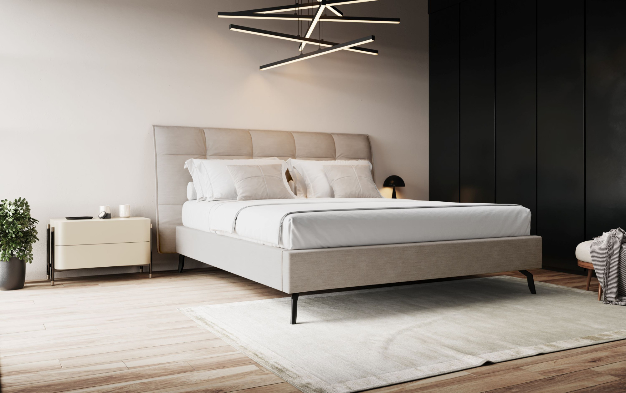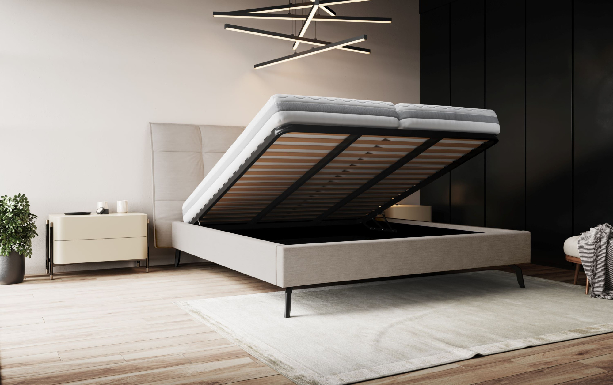 Táto Látková posteľ s úložným priestorom predstavuje ideálnu kombináciu štýlu, pohodlia a praktického dizajnu. Čalúnenie v príjemnom svetlom odtieni “natural” skvelo ladí s rôznymi interiérmi a zároveň sa ľahko udržiava. Hlavnou výhodou je využitie prírodných materiálov, konkrétne masívneho dubového dreva s certifikáciou FSC, ktorá zaručuje zodpovednú ťažbu. Vďaka robustnej konštrukcii poskytuje posteľ vysokú stabilitu aj pri každodennom zaťažení. Čierne kovové nohy dodávajú moderný vzhľad a uľahčujú upratovanie, pretože pod posteľou prejde bežný vysávač. V našej ponuke nechýba ani varianta so šírkou 160 x 200 cm, takže si vyberiete rozmer presne podľa svojich potrieb.