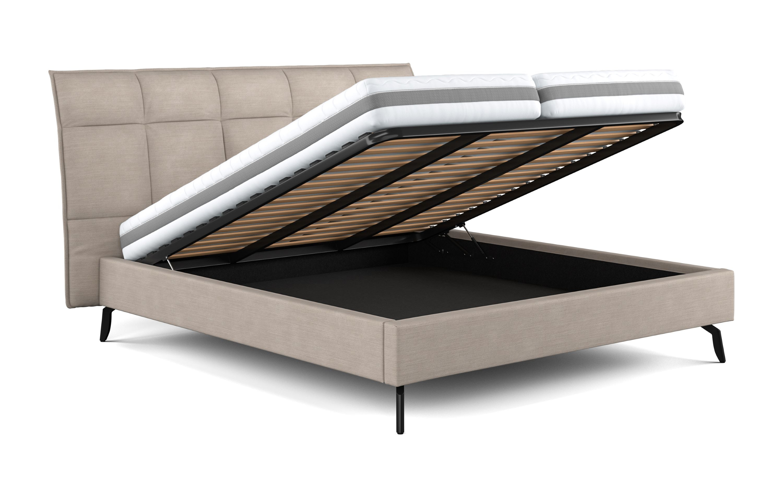 Látková posteľ s úložným priestorom 180 x 200 cm s čiernymi kovovými nohami