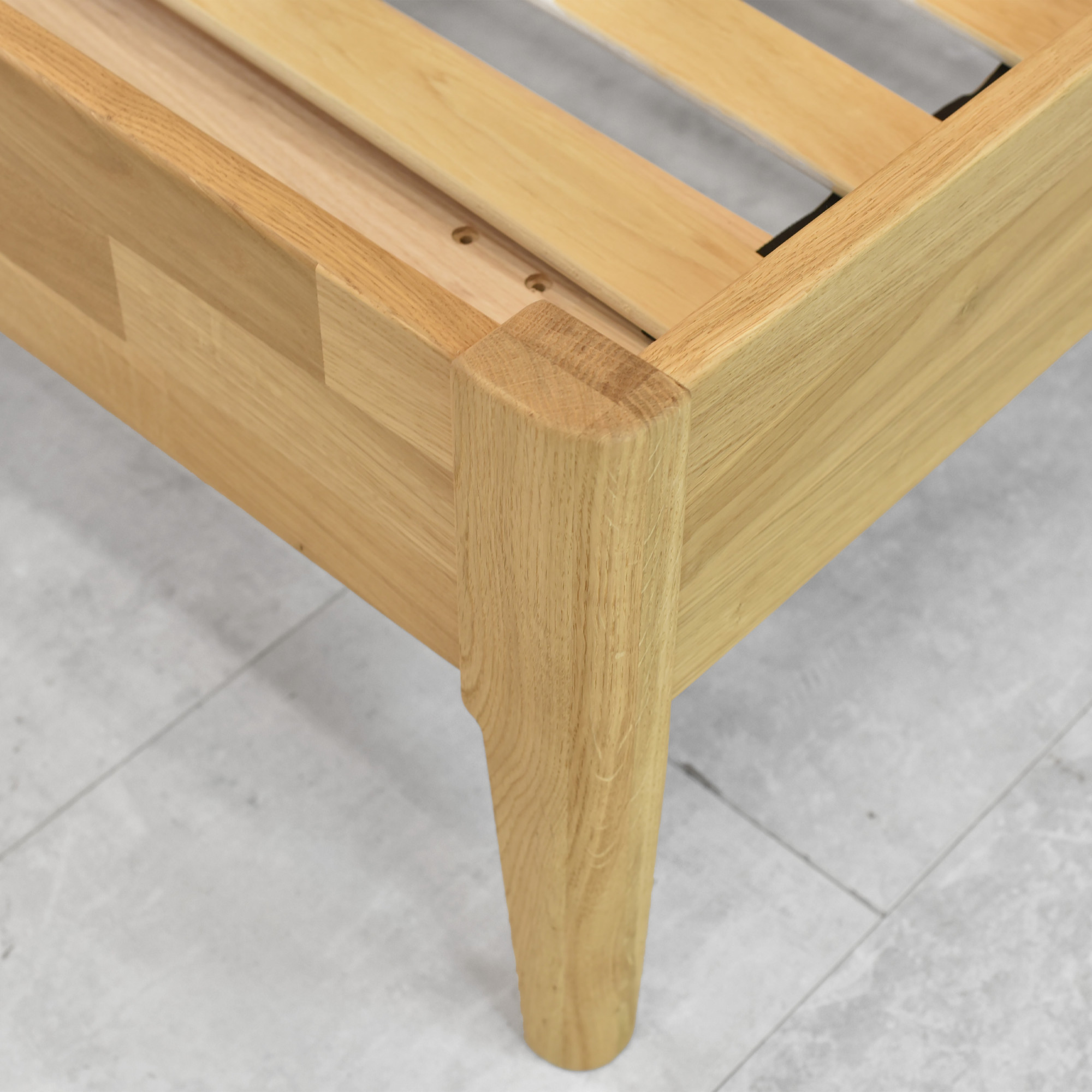 Dubové drevo je odolný prírodný materiál s FSC certifikáciou, čo zaručuje šetrný prístup k životnému prostrediu. Posteľ môžete ľahko kombinovať s ďalším nábytkom z duba, čím dosiahnete harmonický vzhľad celej spálne. Odporúčaná nosnosť postele je 230 kg, pričom maximálna nosnosť jednej osoby je 120 kg. Ako výrobca vám navyše pridáme pevný drevený rošt zadarmo, takže k dokonalému spánku už budete potrebovať len matrac.