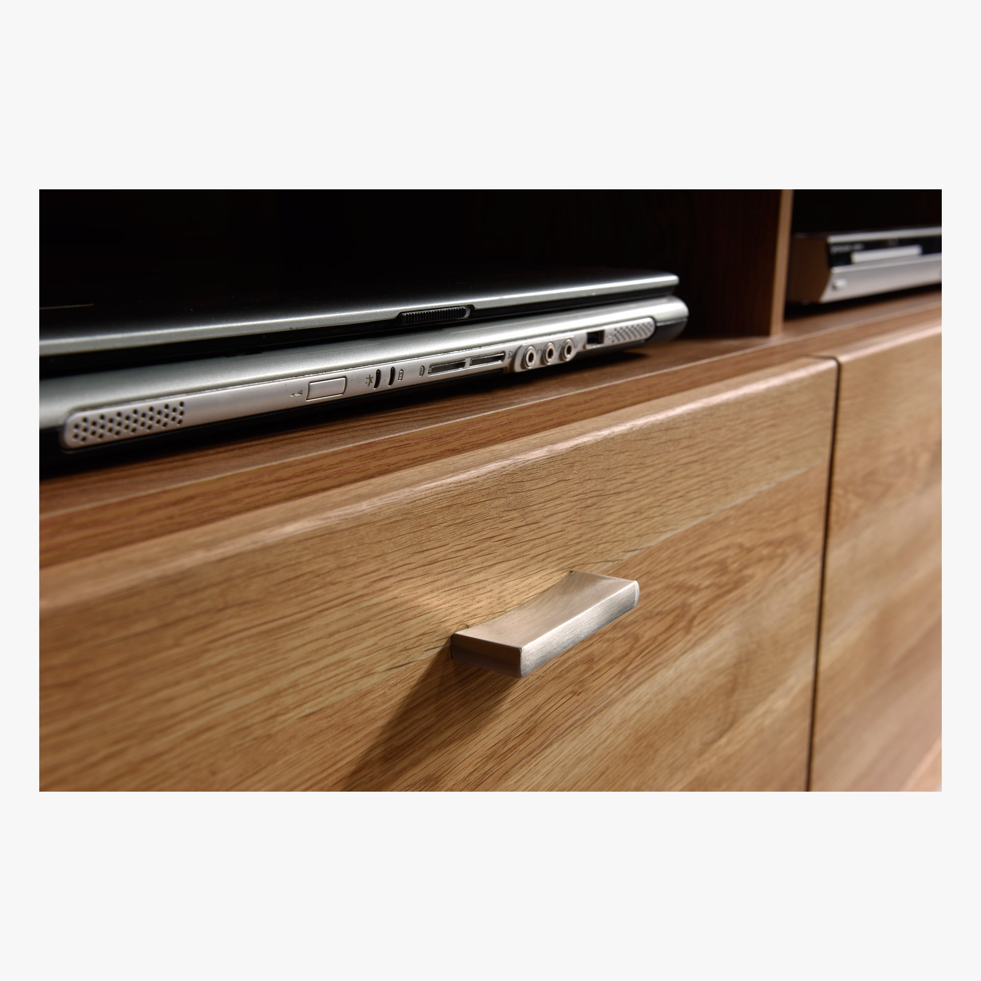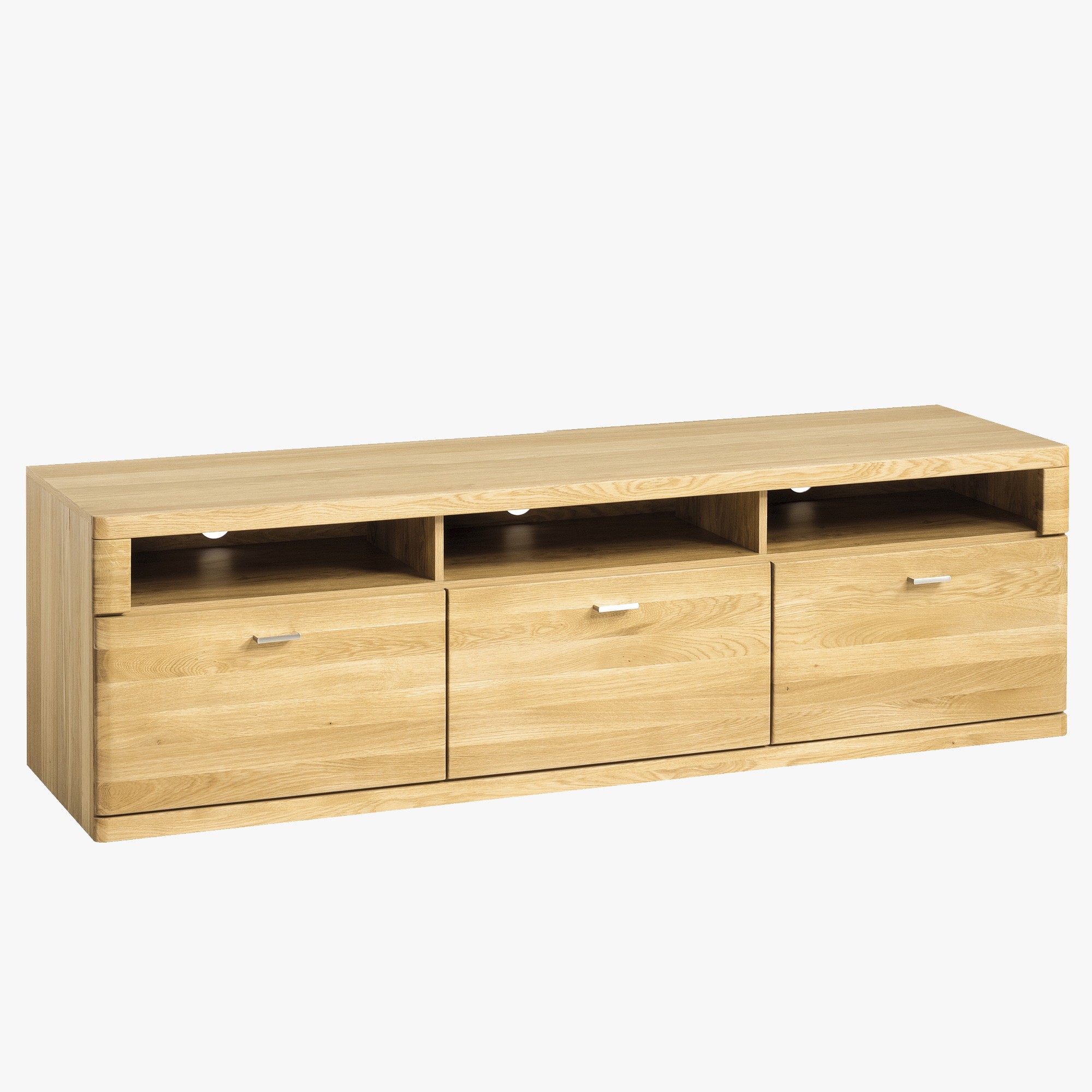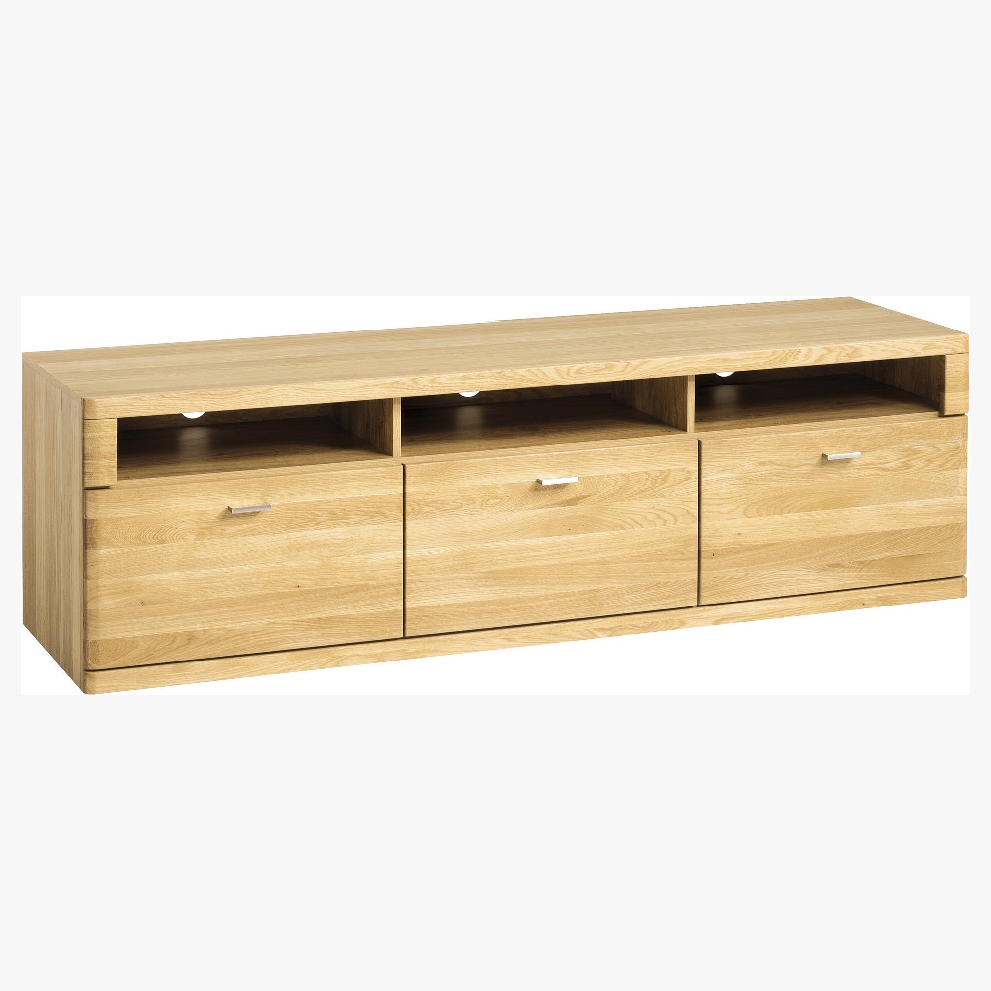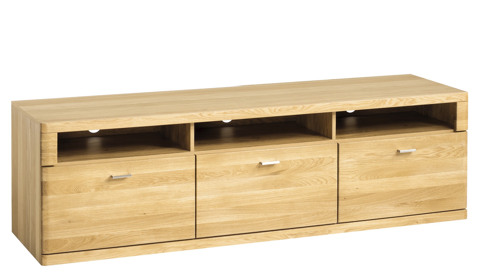 Televízna komoda je vyrobená v kombinácii z prírodného dubového dreva a prírodnej dubovej dyhy, Stolík pod televízor sa dodáva už zmontovaný a je ošetrený kvalitným prírodným olejom. Tv Komoda Boston typ 25 má 3 zásuvky s dojazdom soft-close.
