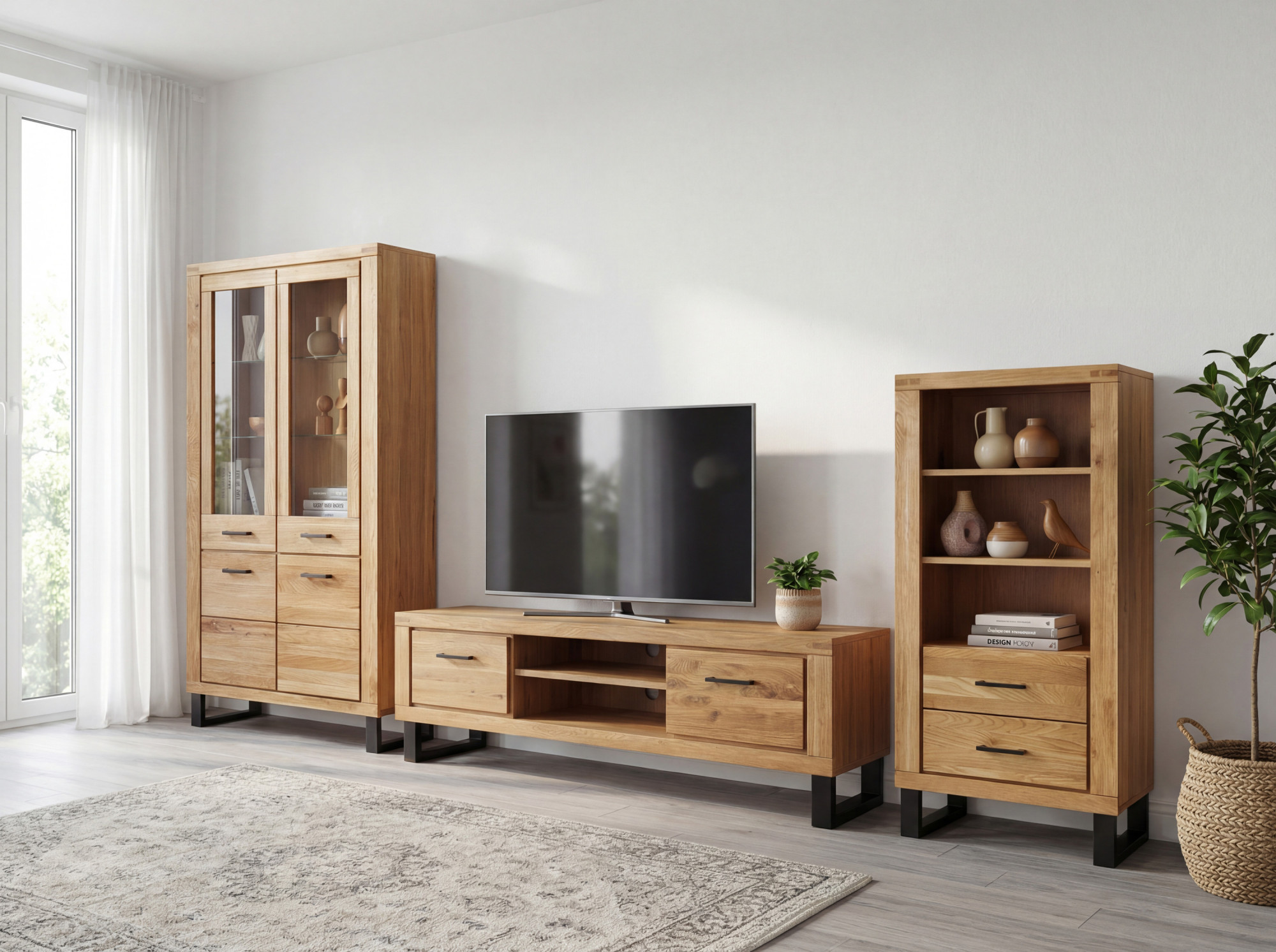 Korpus komody tvorí dýhovaná dubová doska a vnútorné police sú z laminovanej dosky v dekore dub, čo zabezpečuje optimálny pomer kvality a ceny. Komoda stojí na elegantných kovových nožičkách, ktoré dodávajú nábytku vzdušný a moderný vzhľad a zároveň uľahčujú upratovanie podlahy. S rozmermi 168,5 × 45 × 52 cm je táto dlhá TV komoda ideálna pod väčšie televízory a hodí sa ako do rodinného domu, tak do priestranného bytu. Nábytok je dodávaný už zmontovaný, takže ho môžete okamžite po doručení začať používať.