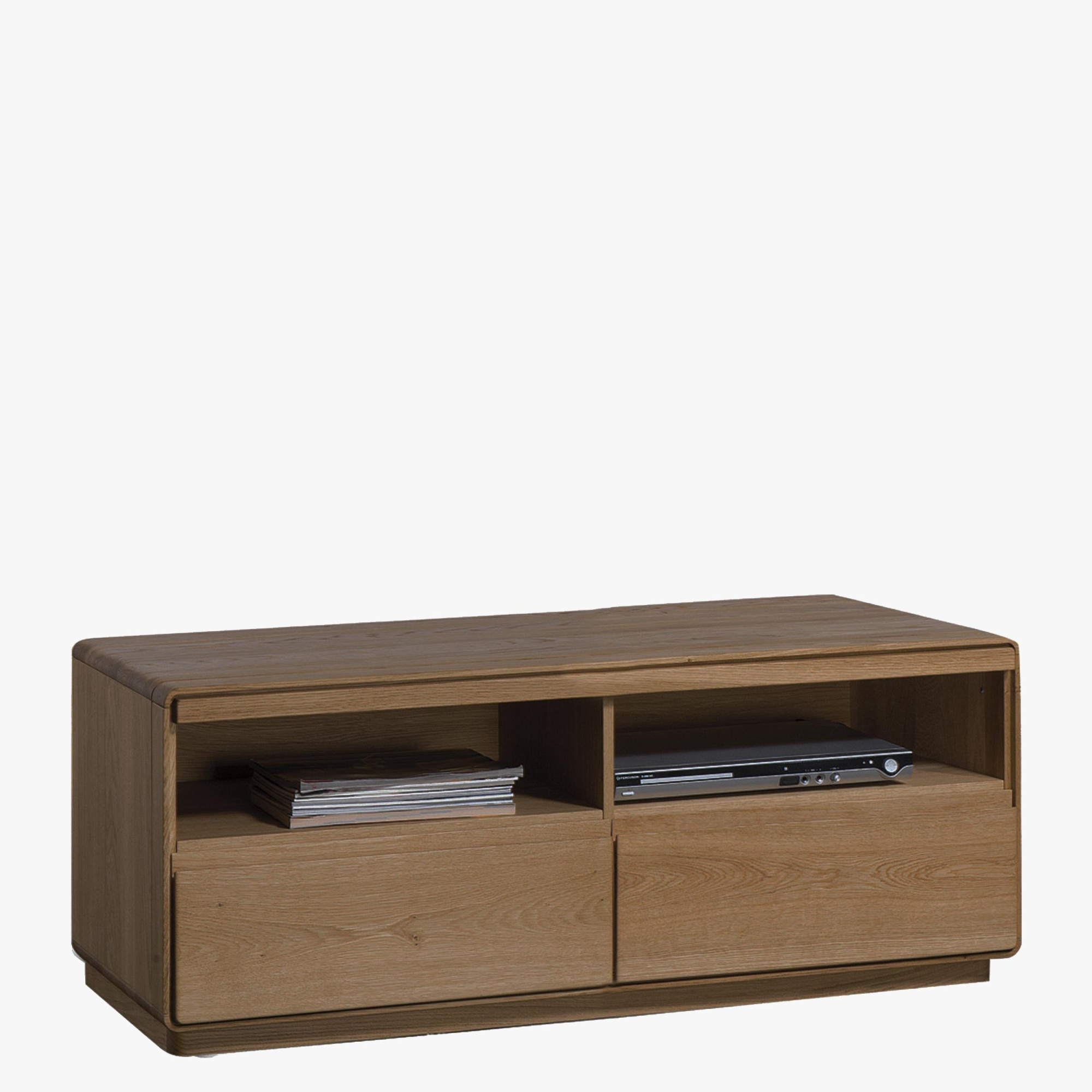Televízna komoda vďaka svojej výške zabezpečí optimálny pozorovací uhol. Komodu charakterizujú čisté rovné línie so zaoblenými rohmi. Zásuvky majú bezúchytkové otváranie pomocou profilovanej vrchnej hrany. Tento spôsob pekne korešponduje s minimalistickým dizajnom nábytku.