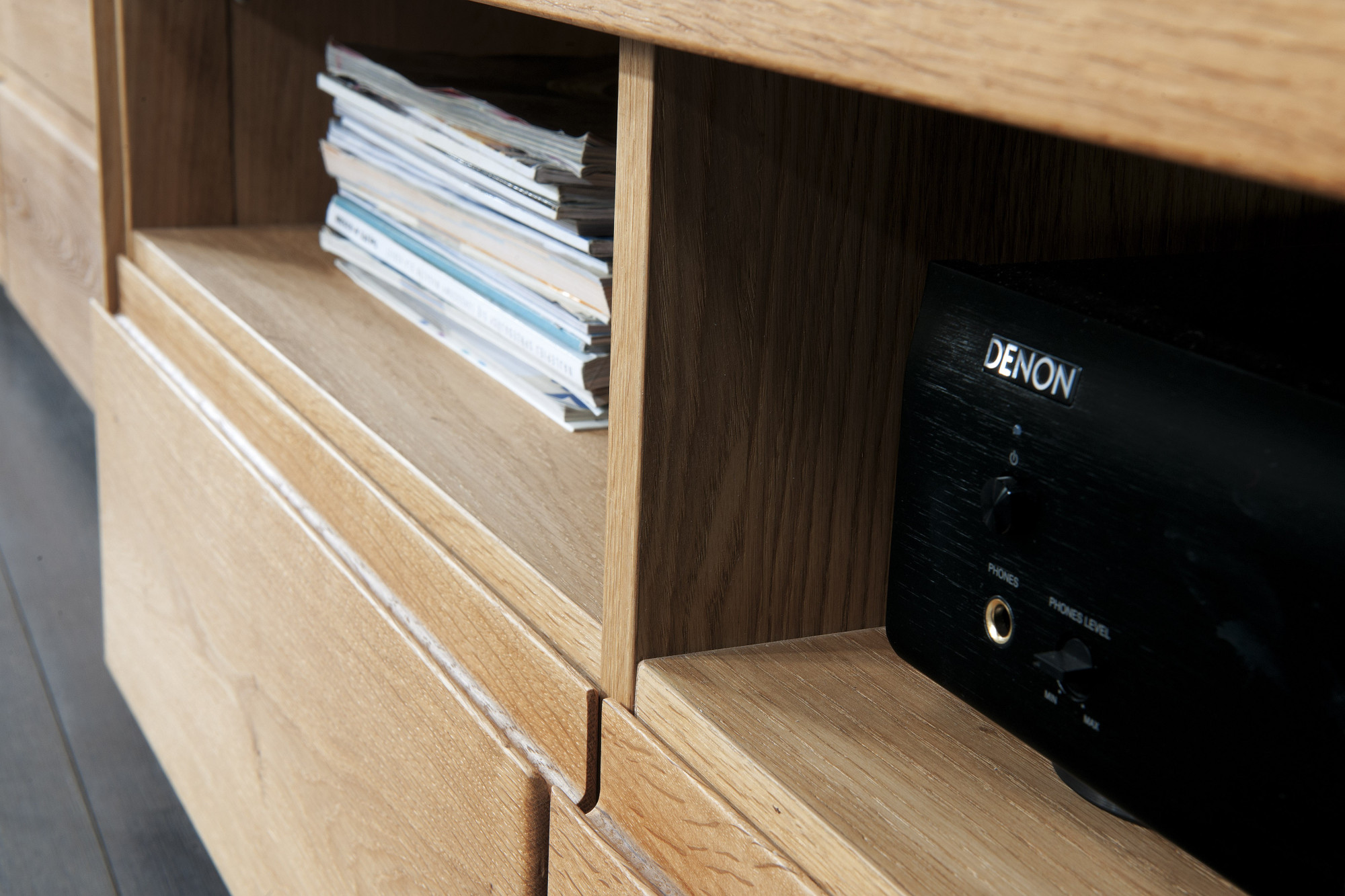 Zámerne sme pre výrobu masívnej TV komody využili tie najkvalitnejšie materiály, aké sa v súčasnom nábytkárstve používajú. Jedná sa o masívne dubové drevo, ktoré bolo použité na výrobu vrchnej dosky a zásuviek. Boky a korpus televíznej komody sú z prírodnej drevenej dubovej dyhy. Zadnú stenu tvorí drevená preglejka.